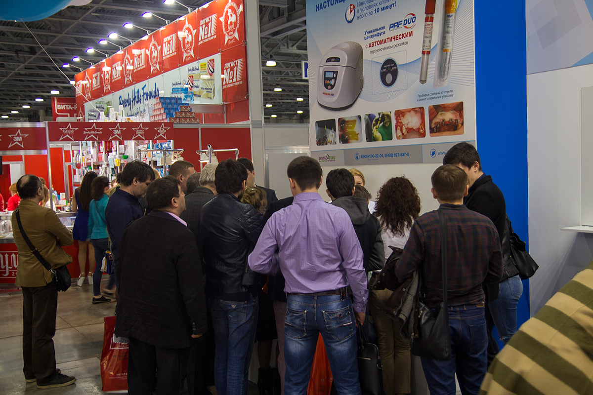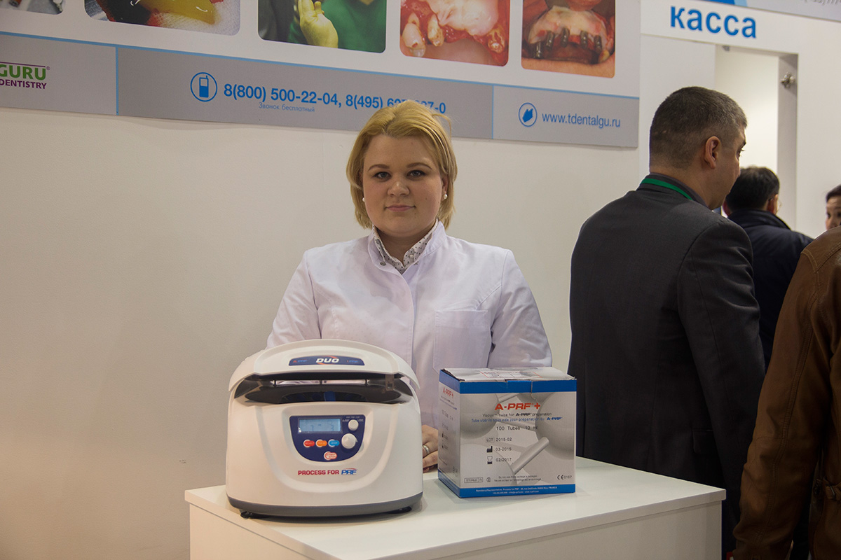 Живой интерес у посетителей вызывали зоны стенда, где проводились демонстрации и мастер-классы. Всем желающим явно не хватало места чтобы узнать о технологии APRF. Ведущие Хирурги учебного центра Дентал Гуру Седов Юрий Георгиевич и Киселева Ирина Владимировна проводили демонстрацию забора крови, центрифугирования, получения мембран A-PRF и фибриновых сгустков.