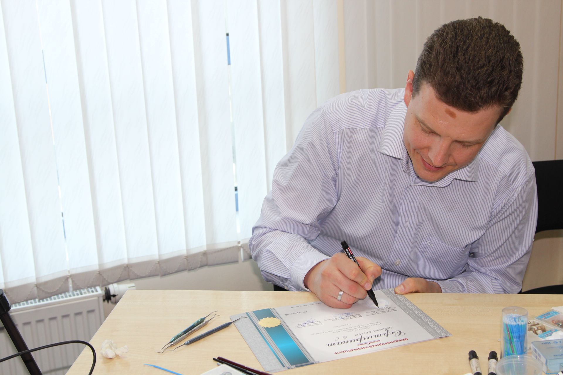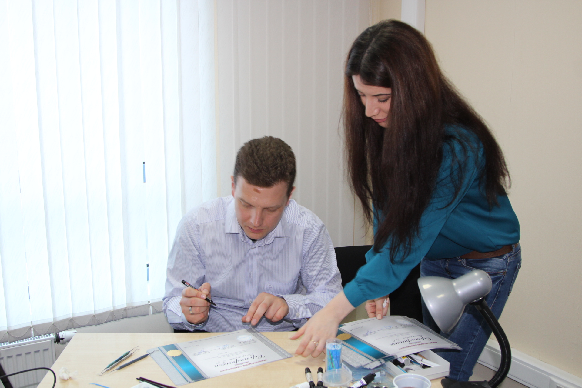Практические занятия закрепили навыки изготовления силиконового ключа, реставрации полости 4 класса. При этом использовались материалы Capo и Schutz. В завершении, подпись и получение заветного сертификата непосредственно от автора курса.