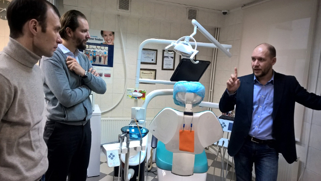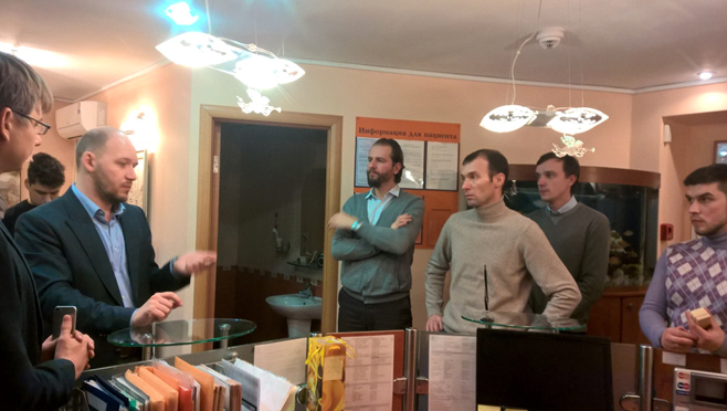 Участникам встречи организовали экскурсию по учебному центру и стоматологической клинике Дентал Гуру.