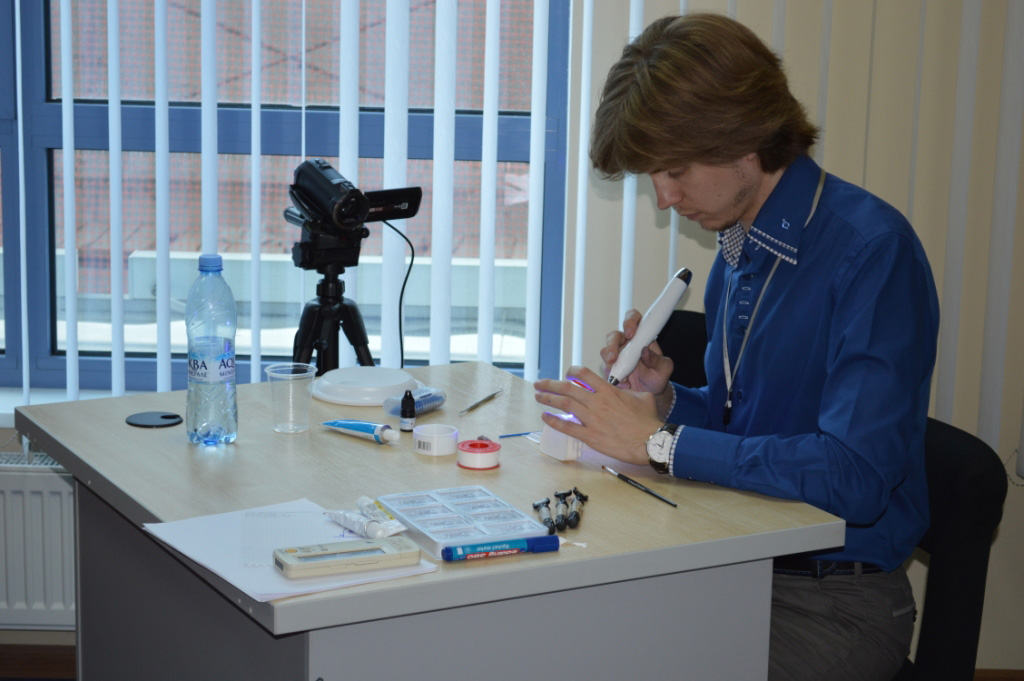Практические знания были насыщенными. Дмитрий Петрович наблюдал за работой каждого учащегося. При необходимости подсказывал либо личным примером демонстрировал технику наложения слоев композитов. Затем в торжественной атмосфере вручил сертификаты об окончании курсов