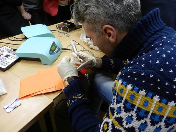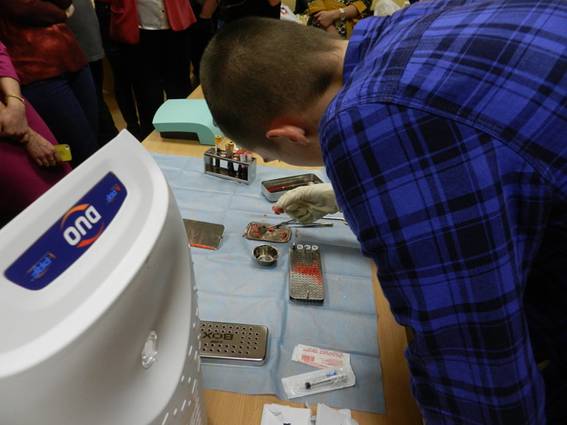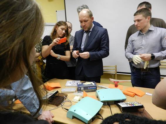 Для закрепления пройденного материала были установленыучебные имплантаты на говяжьих рёбрах, на фантоме нижней челюсти и отработаны мануальные навыки на специальных моделях.
