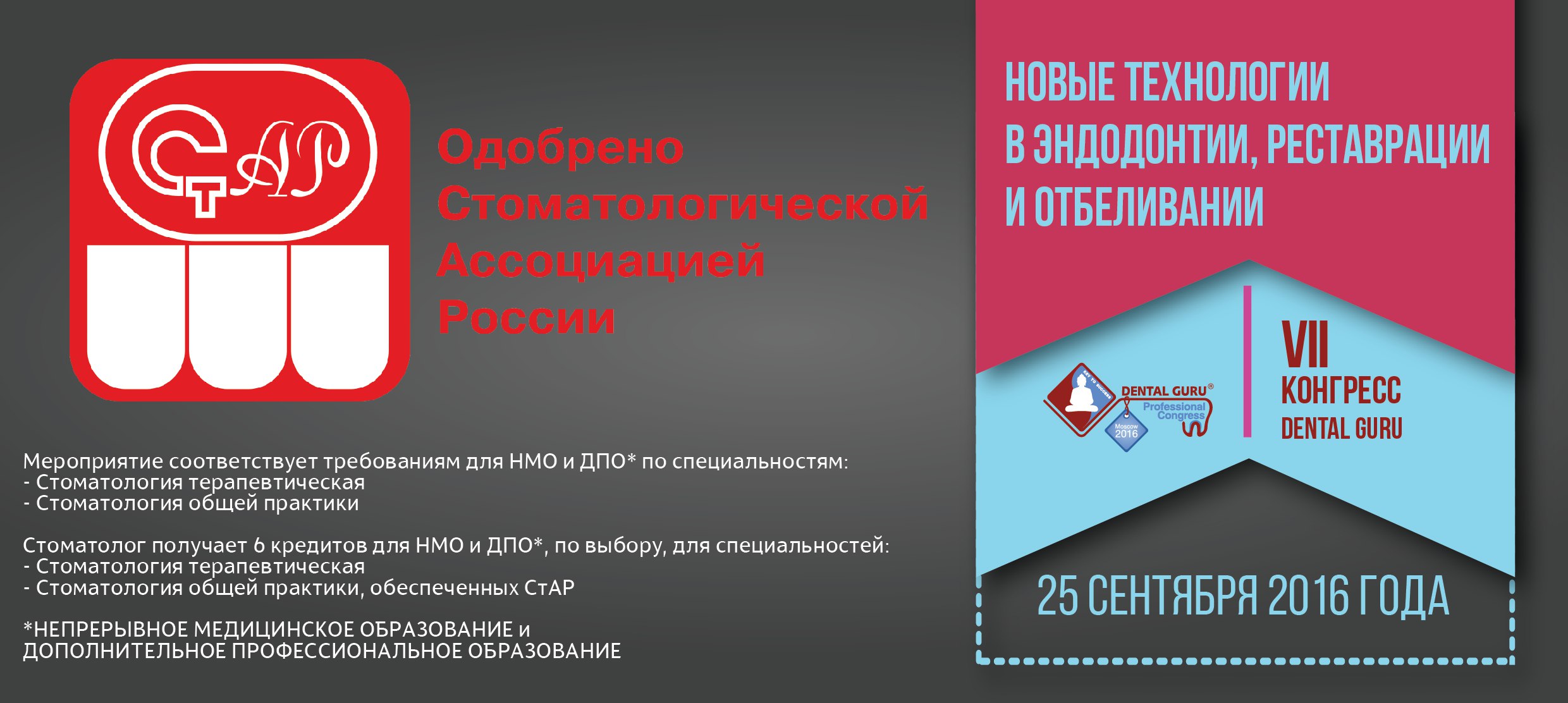 Конгресс "Дентал Гуру" получил аккредитацию СТАР, а это значит, что: Мероприятие соответствует требованиям для НМО и ДПО* по специальностям: - Стоматология терапевтическая - Стоматология общей практики.