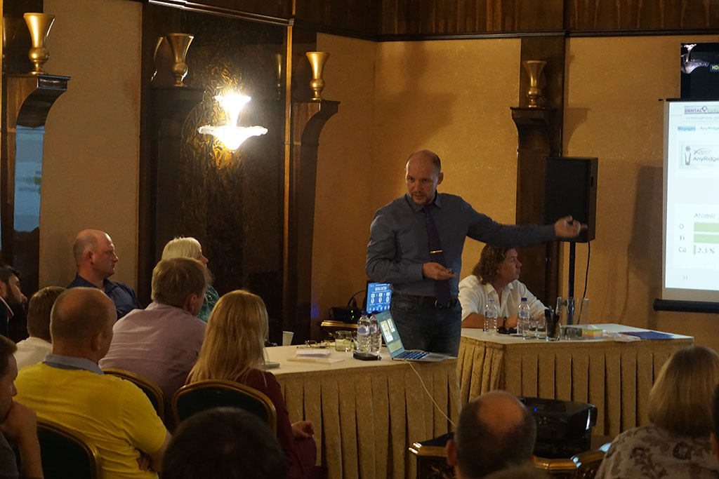 Тема выступления: «Имплантат, позволяющий обойтись без костной пластики и значительно расширить показания к одномоментной имплантации и немедленной нагрузке. Скоро мы все будем работать с AnyRidge. -