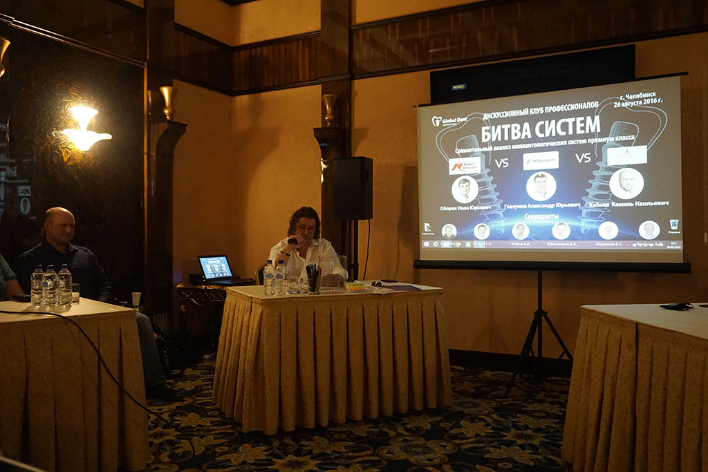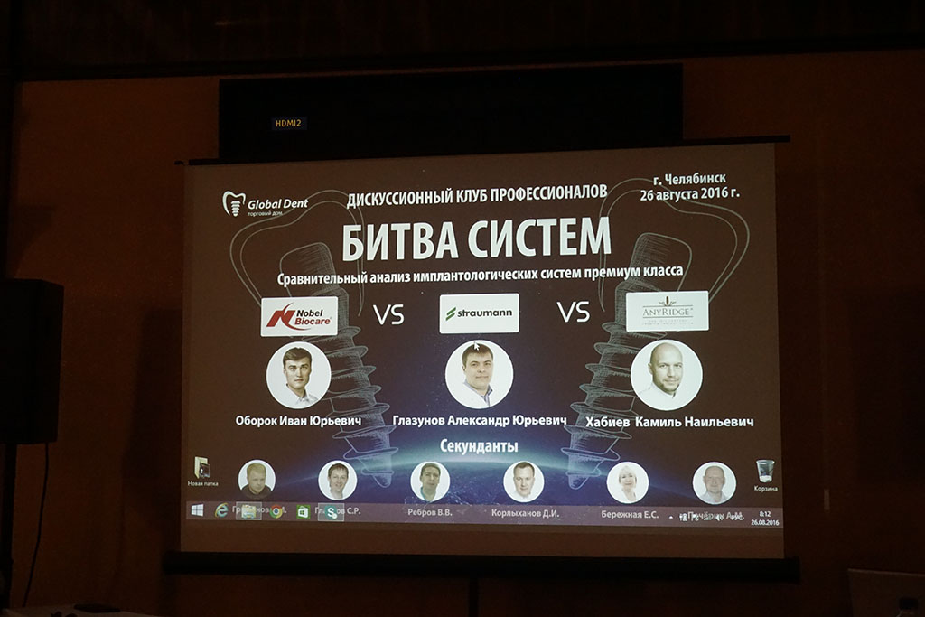 Слушателям был представлен сравнительный анализ имплантационных систем премиум-класса Straumann, AnyRidge и Nobel Biocare. В «схватке» сошлись известные дуэлянты – практикующие доктора, признанные эксперты в области имплантологии: