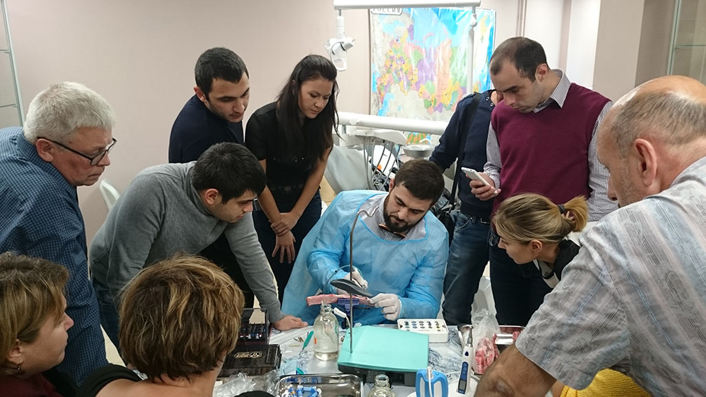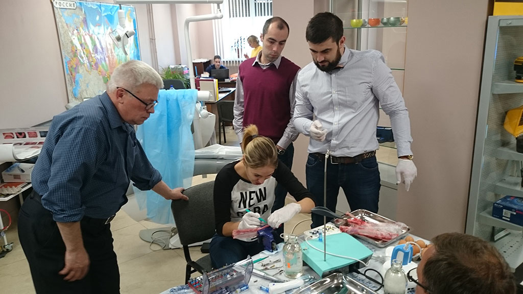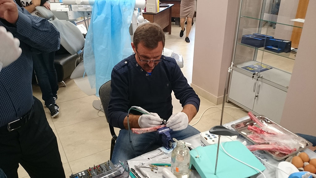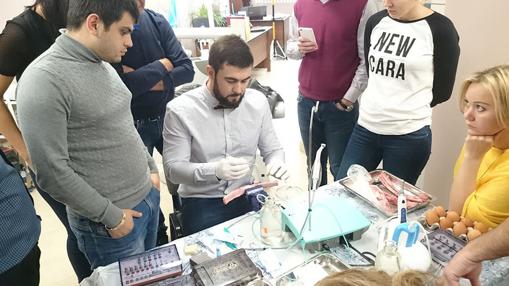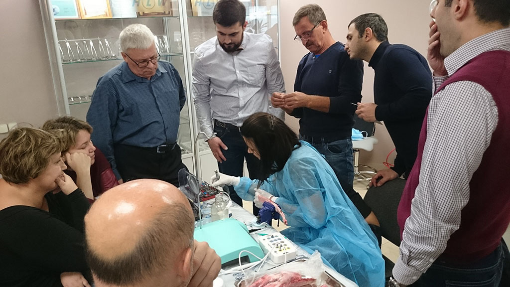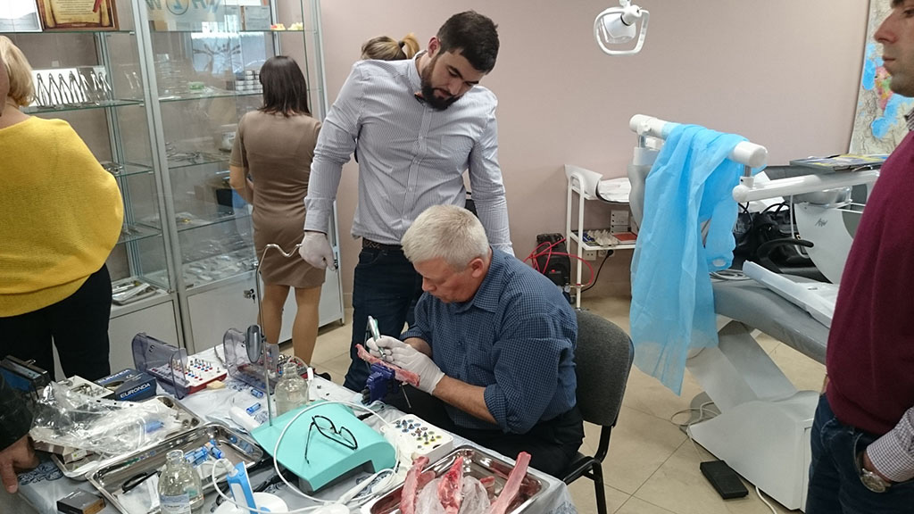 Курс состоял из лекционной и теоретической части. Программа была разработана таким образом, чтобы каждый участник смог не только получить новые знания, но также и «закрепить» их – чтобы в дальнейшем успешно применить в работе. В практическом блоке слушатели курса устанавливали учебный имплант, отрабатывали проведение разреза, формирование лоскута и наложение швов, наблюдали за демонстрационной операцией.