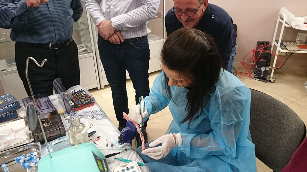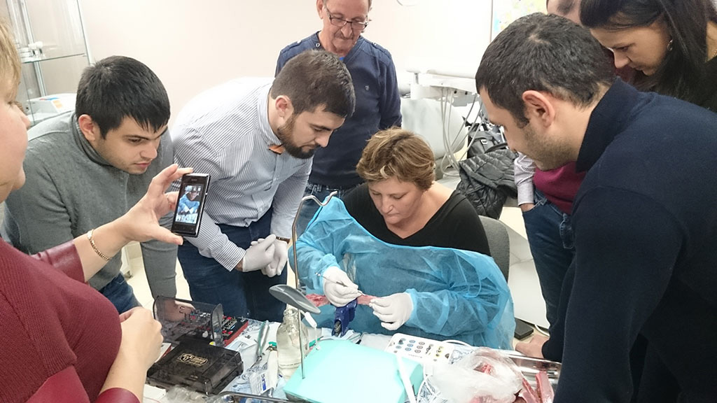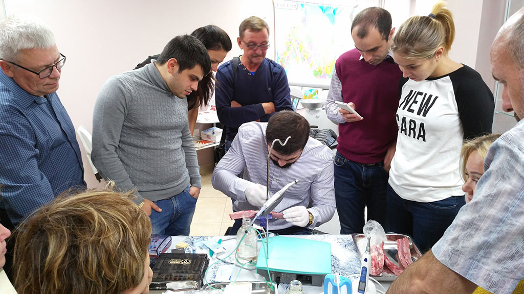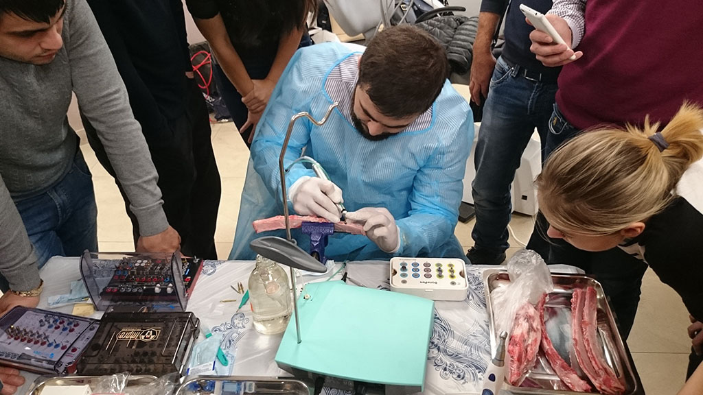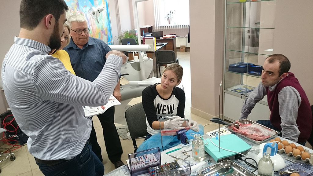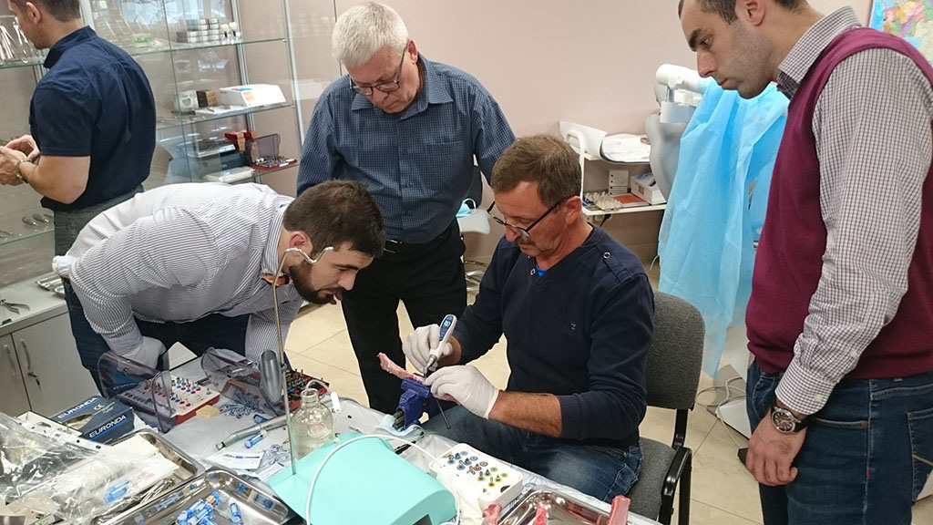 Курс состоял из лекционной и теоретической части. Программа была разработана таким образом, чтобы каждый участник смог не только получить новые знания, но также и «закрепить» их – чтобы в дальнейшем успешно применить в работе. В практическом блоке слушатели курса устанавливали учебный имплант, отрабатывали проведение разреза, формирование лоскута и наложение швов, наблюдали за демонстрационной операцией.