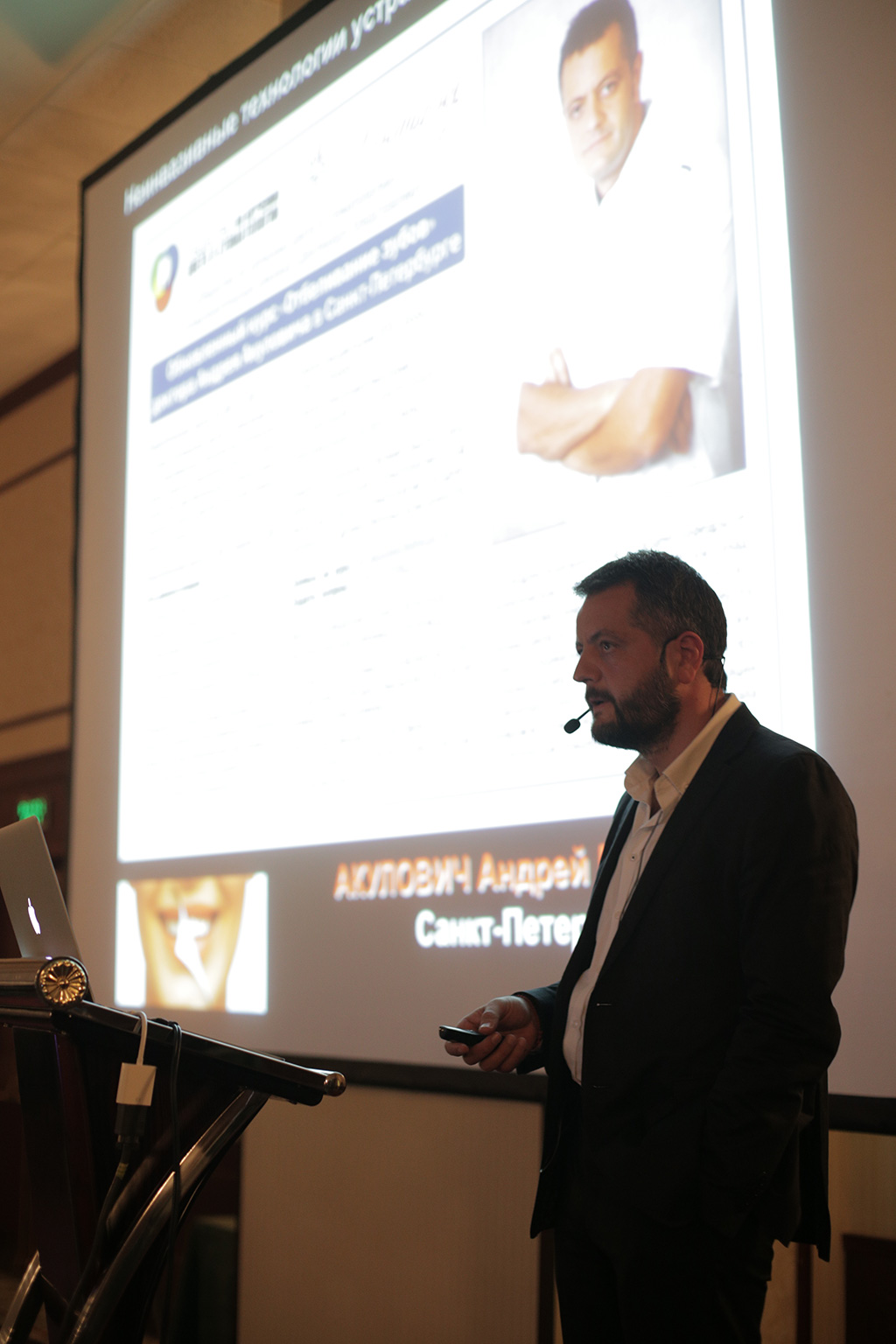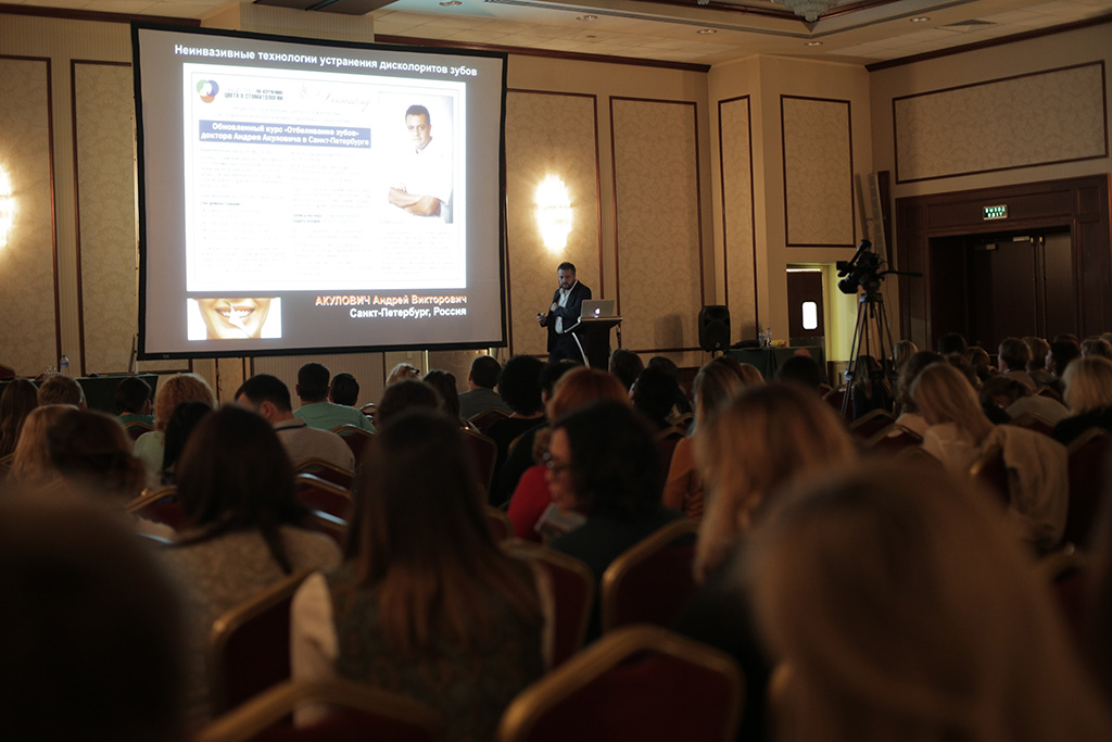 «Современные методики неинвазивного устранения дисколоритов зубов» - такой была тема выступления Андрея Акуловича, доцента кафедры, терапевтической стоматологии ПСП6ГМУ имени академика И.П. Павлова, главного врача стоматологической клиники "Дентикюр".