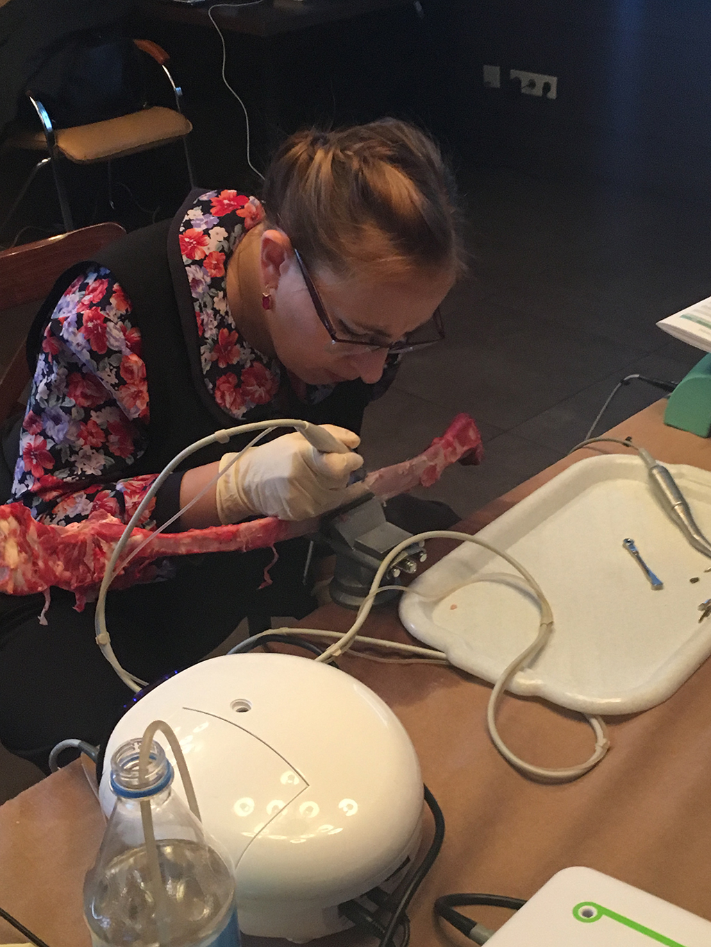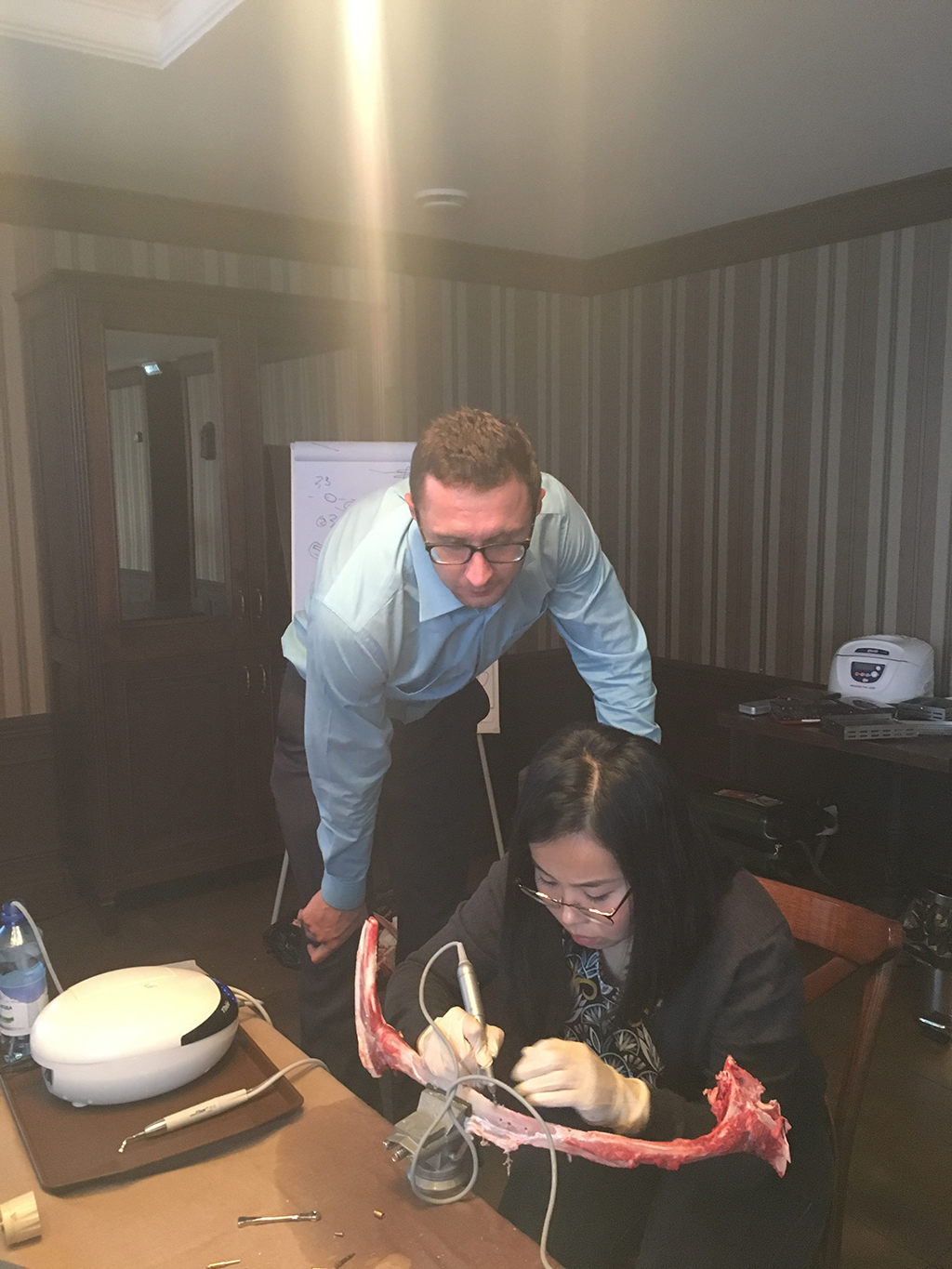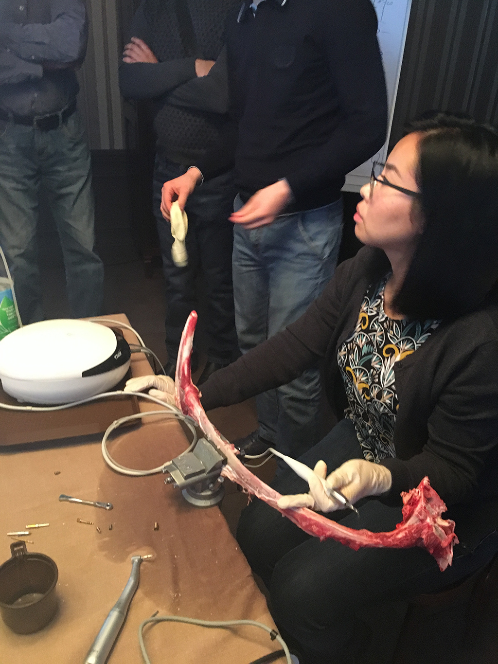 1-й день был посвящен костной пластике. Лекционная программа включала информацию о показаниях и противопоказаниях к проведению костной пластики, диагностике и планированию лечения, вопросы компьютерной томографии. Также рассмотрены важные теоретические аспекты проведения операции, которые были закреплены практическими занятиями.