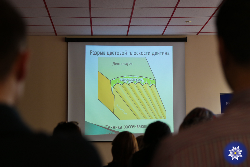 Выяснялось, что нижний слой должен быть светлого тона и, что опаковые оттенки должны иметь высокую насыщенность. Были затронуты вопросы адгезии к дентину, подготовки эмали и техники заполнения полостей.