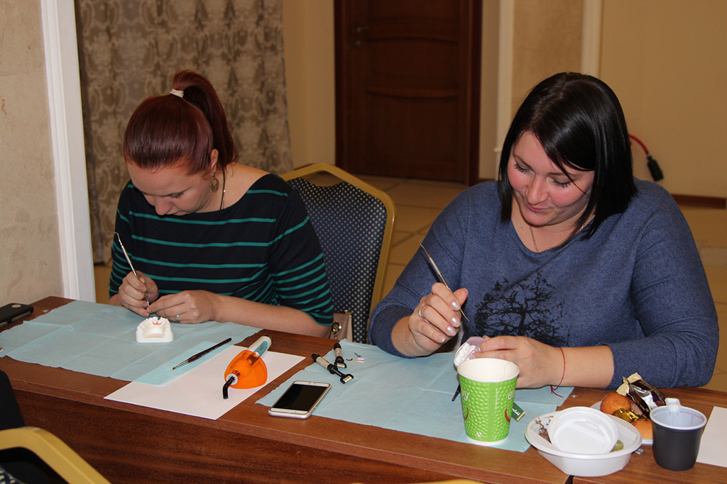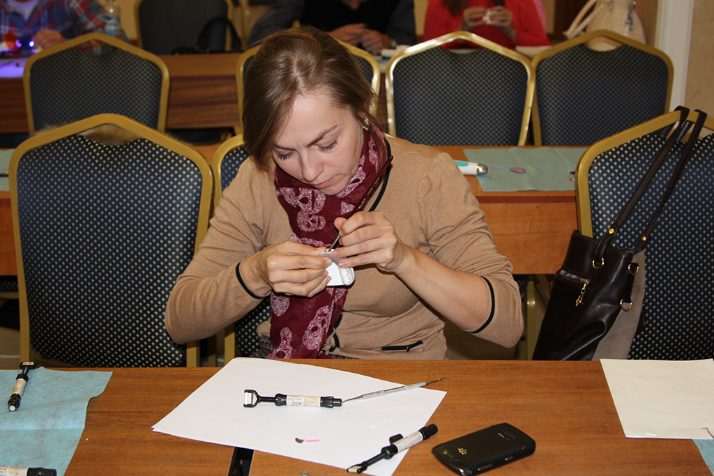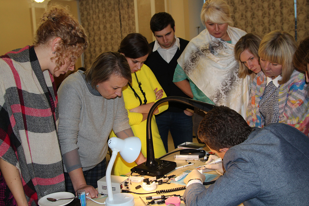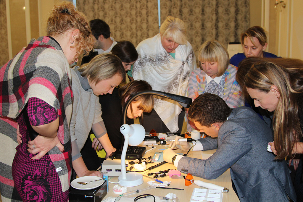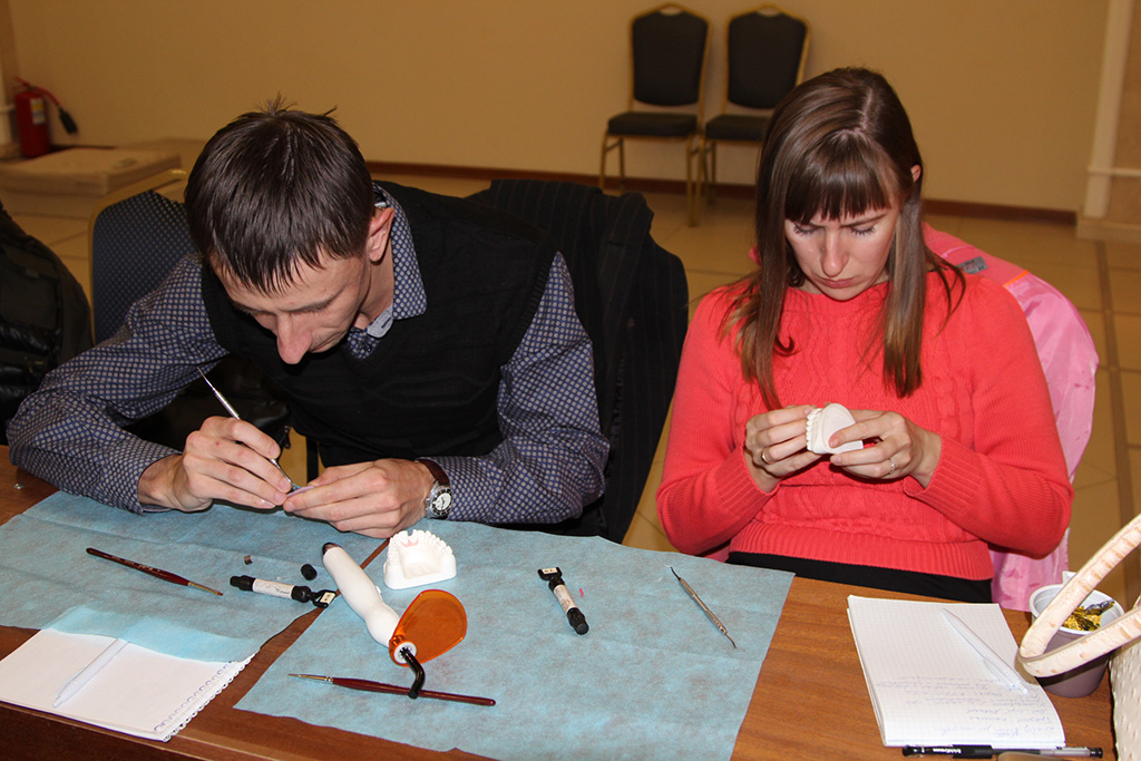 Лекционная часть делилась на несколько модулей; разбирались все аспекты предложенной темы. Курс завершился практическим занятием, на котором участники смогли закрепить полученные знания на практике и отработать следующие техники: изоляция рабочего поля, техника наложения раббердама, изготовление силиконового ключа, проведение реставрации полости четвертого класса с применением материала «Capo Natural» компании Mani Schutz, восстановление контактного пункта, финишная обработка реставрации, полирование зубов.