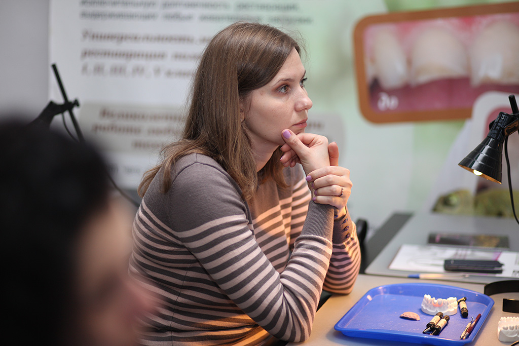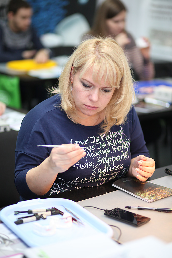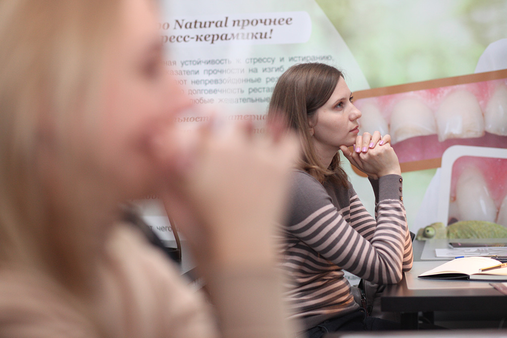 Лекционная часть рассматривала все теоретические аспекты реставрации зубов. Большое внимание уделялось адгезивной подготовке; слушателям была представлены исчерпывающие характеристики современных адгезивных систем