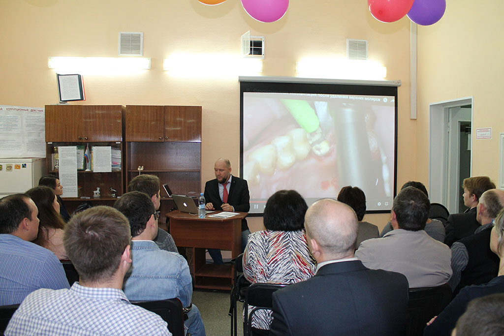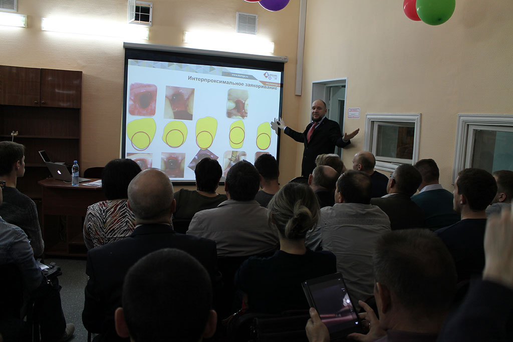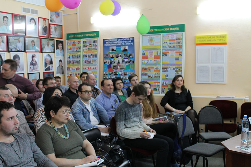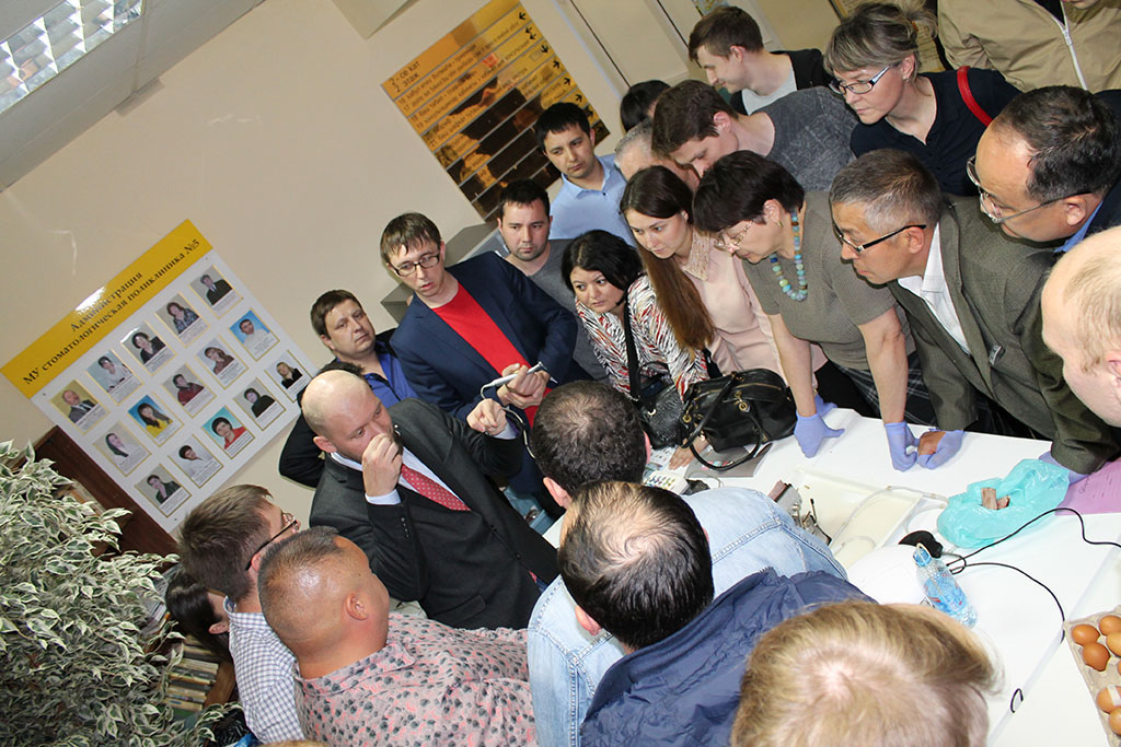 На следующий день , 3 июня, на базе Стоматологической Поликлиники №5 г.Уфа состоялся Мастер-класс «Имплантация от А до Я». Желающих посетить его превысило реальные возможности конференц-зала, но благодаря профессионализму Главного врача С.Н.Гайфуллина и персонала его поликлиники, удалось решить этот момент и принять всех желающих докторов.