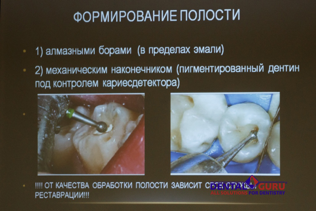 Лекторы в свою очередь делились в презентациях авторскими методиками реставраций. Рассказывали, какими инструментами, на каком оборудовании и в каких условиях сами проводят реставрации в клиниках, делились опытом использования коффердама, правильном порядке процедур по проведению реставрации от начала и до финишной обработки, от чего зависит успешность и не успешность реставрации и многом другом.