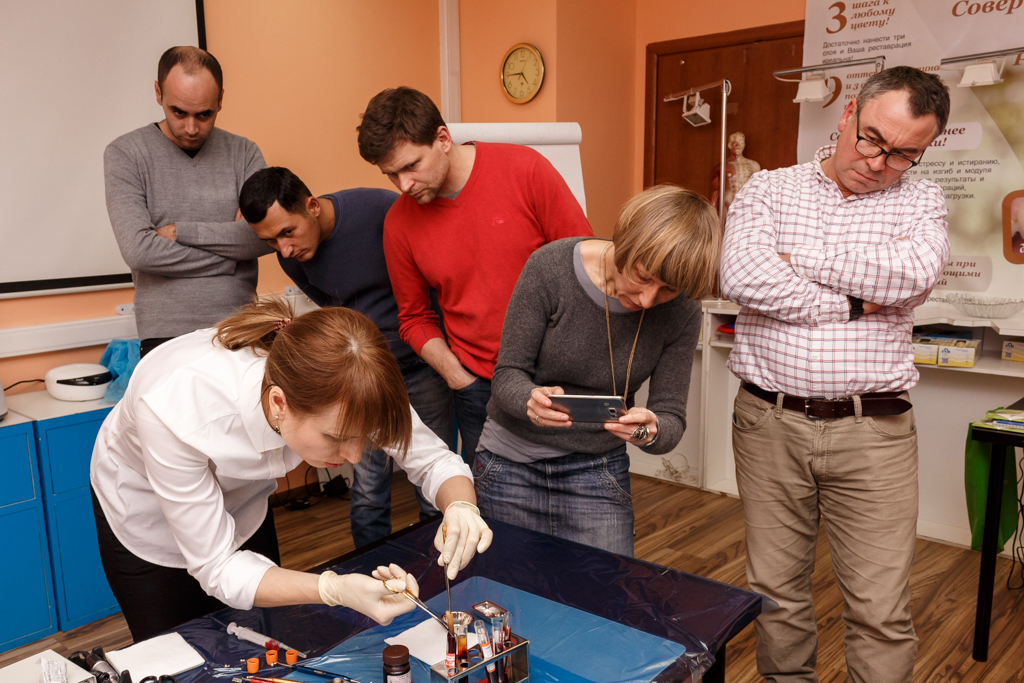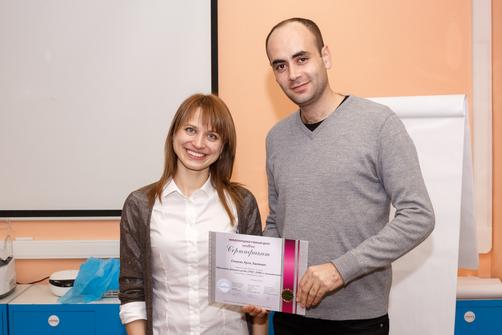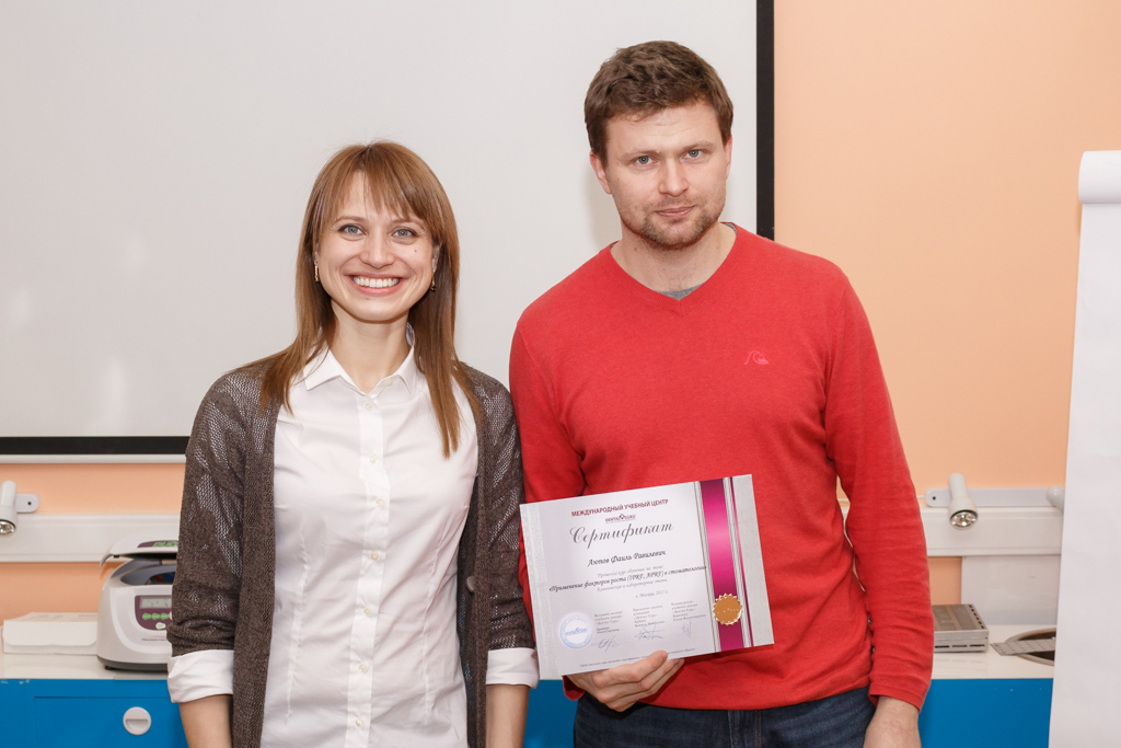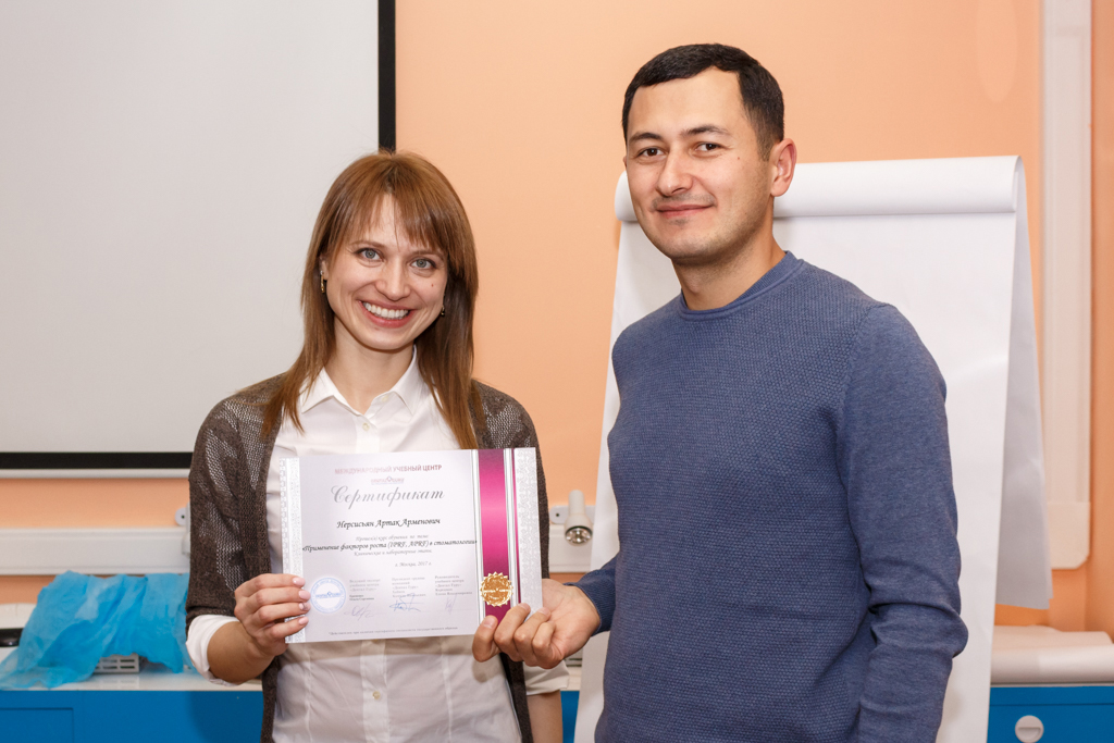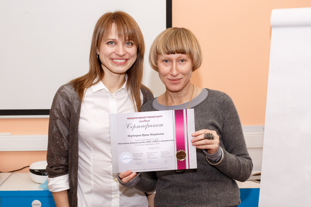 15 ноября 2017 года в учебном центре Дентал Гуру прошел мастер-класс «Применение факторов роста (IPRF, APRF) в стоматологии». В качестве лектора выступила Еременко Ольга Сергеевна – профессиональный врач-пародонтолог Немецкого Стоматологического Центра, сертифицированный тренер компании Plasmolifting, автор S.M.A.R.T. техники отбеливания зубов и автор пяти стоматологических семинаров.На примерах из собственной практики Ольга Сергеевна рассказала обо всех достоинствах IPRF и APRF-технологии (ее надежности, простоте, доступности, экономности). А главное о том, что методика 100% аутогенная, так как получается из собственной крови пациента и что содержание всех форм лейкоцитов и тромбоцитов в ней максимально высокое.Конструктивный мастер-класс от эксперта такого высокого уровня как Ольга Сергеевна Еременко, позволил докторам значительно повысить свой профессиональный уровень и свою уверенность в том, что технология IPRF и APRF работает, совершенствуется и применяется в стоматологии все чаще.