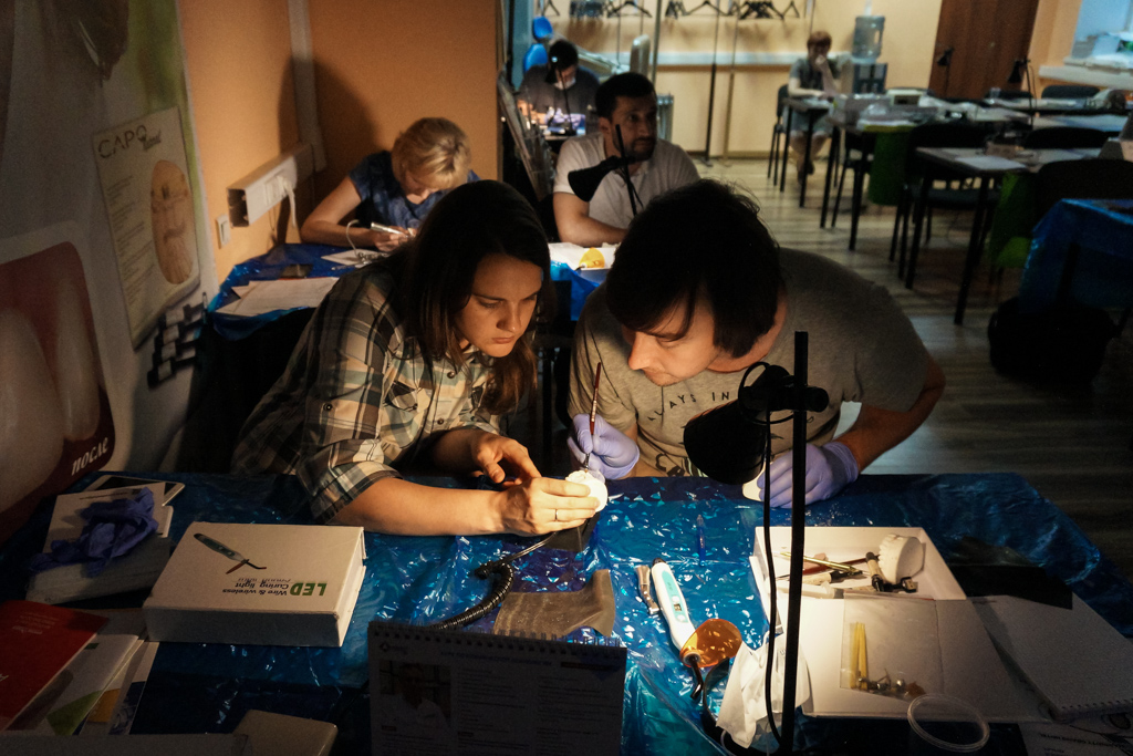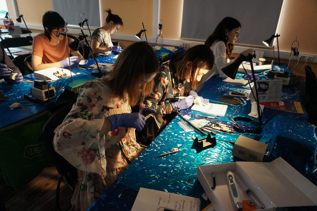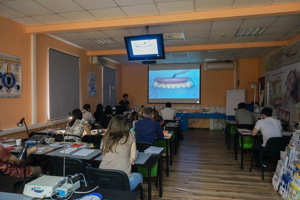 Два дня обучения прошли в плотном режиме и содержали, как лекционную, так и практическую части. Участники курса подробно узнали обо всех аспектах реставрации зубов, о планировании эстетического лечения, рассмотрели адгезивы, их виды и особенности, получили важную информацию об инструментах и аксессуарах, используемых в реставрации зубов.