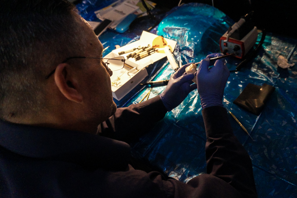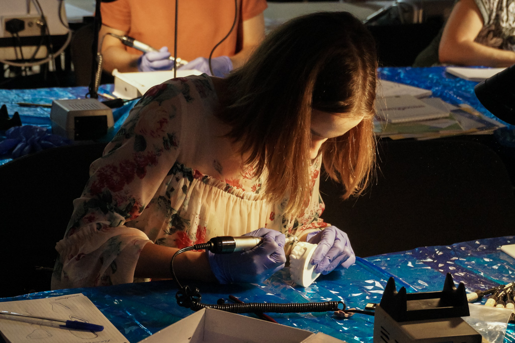 На практической части специалисты изучили методы изоляции рабочего поля, технику наложения раббердама, изготовления силиконового ключа. Подробно рассматривались этапы реставрации полости 4 класса с применением материала «Capo». Дмитрий Юрьевич поделился большим опытом по вопросу восстановления контактного пункта. Не обошли вниманием и финишную обработку реставрации, и полирование зубов. Ознакомились с препарированием зубов под вкладку, накладку, винир, получили силиконовый оттиск и изготовили временную конструкцию.