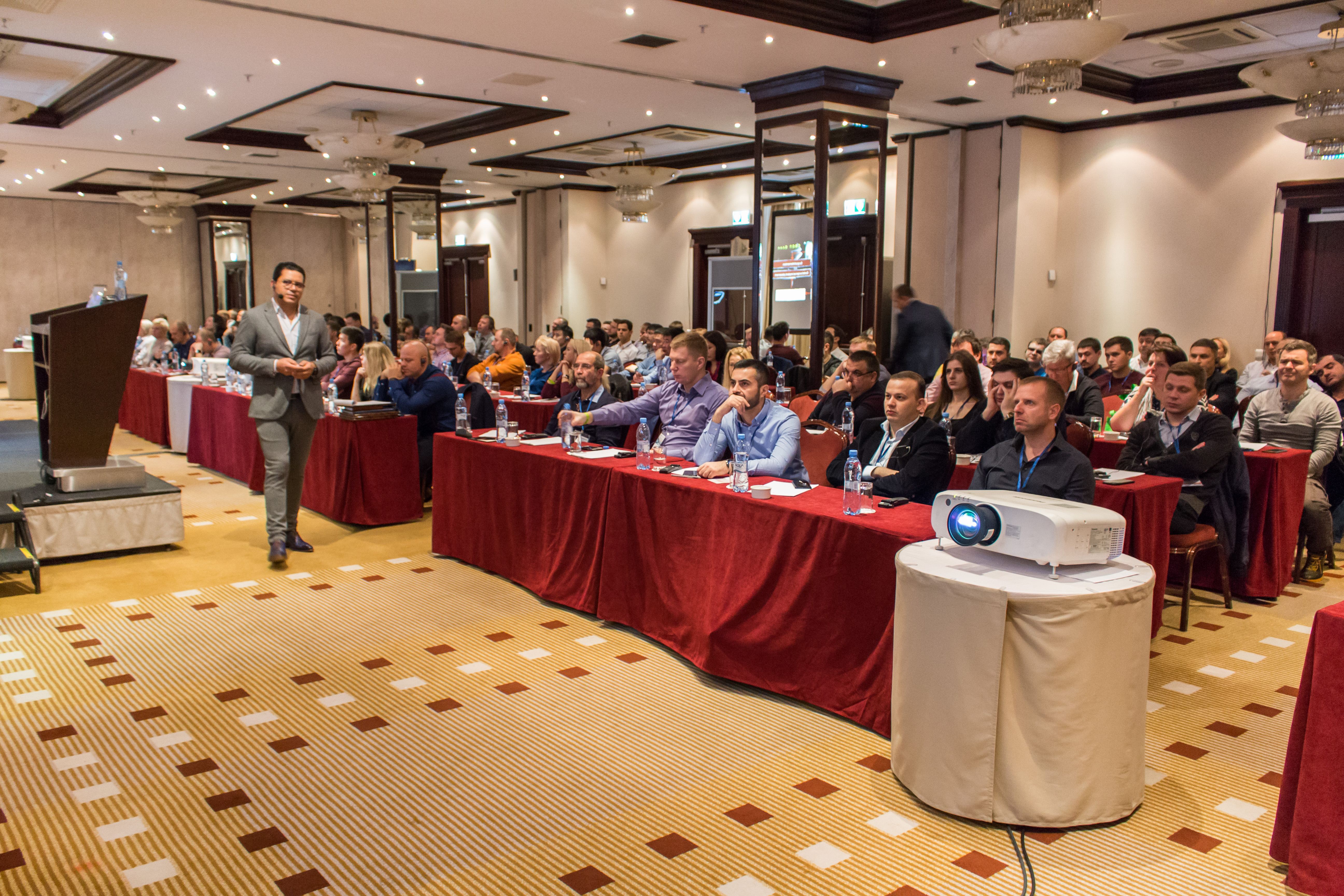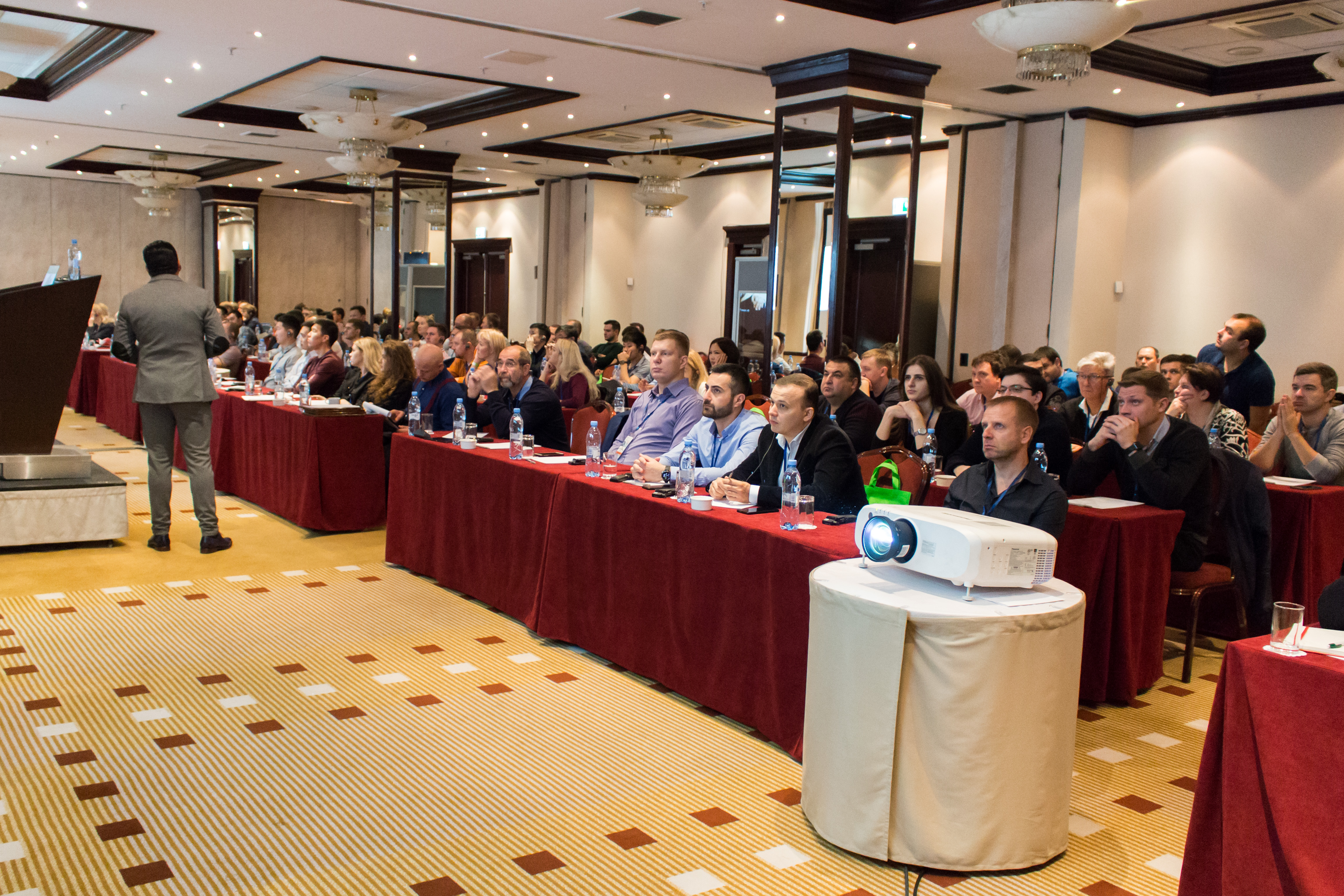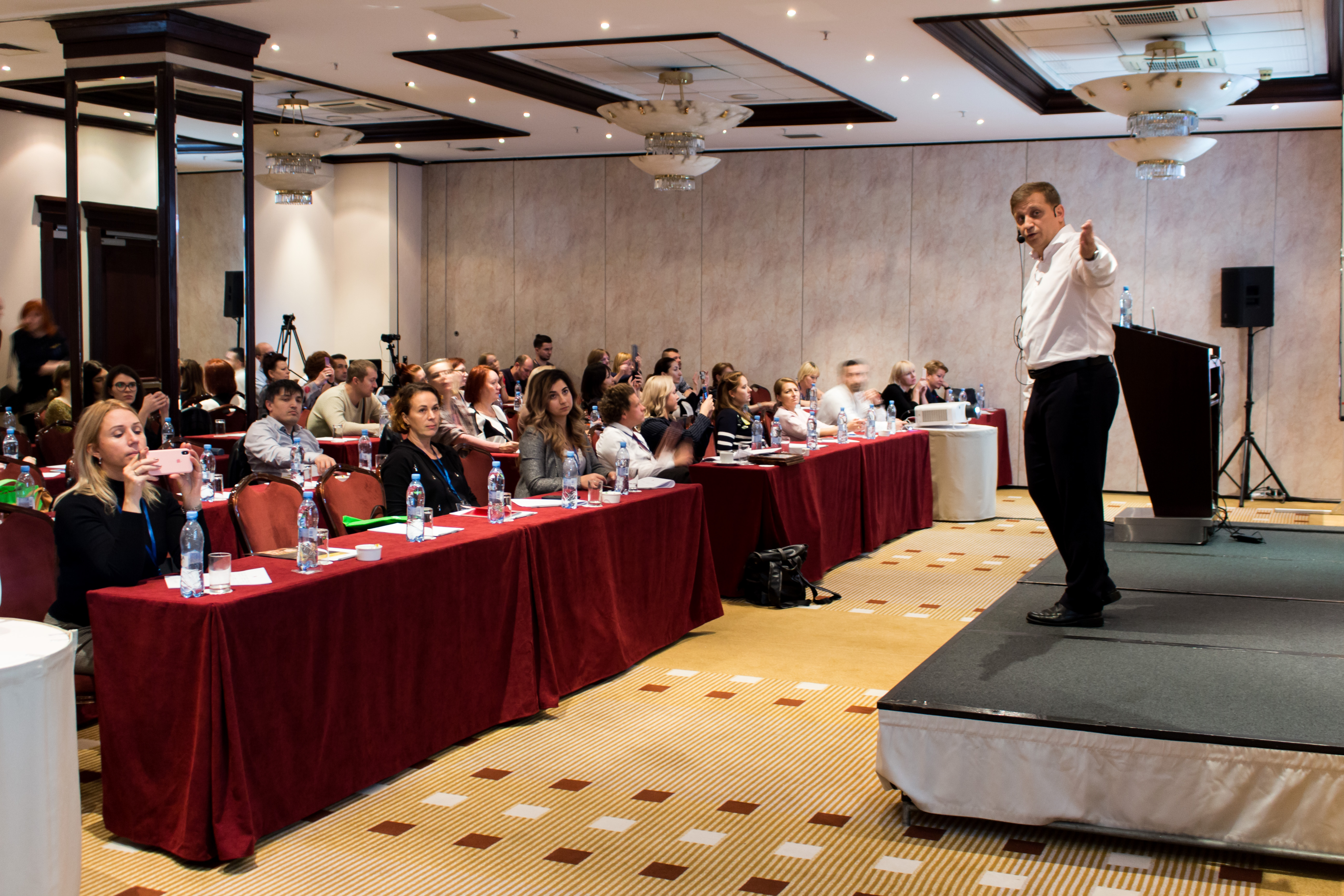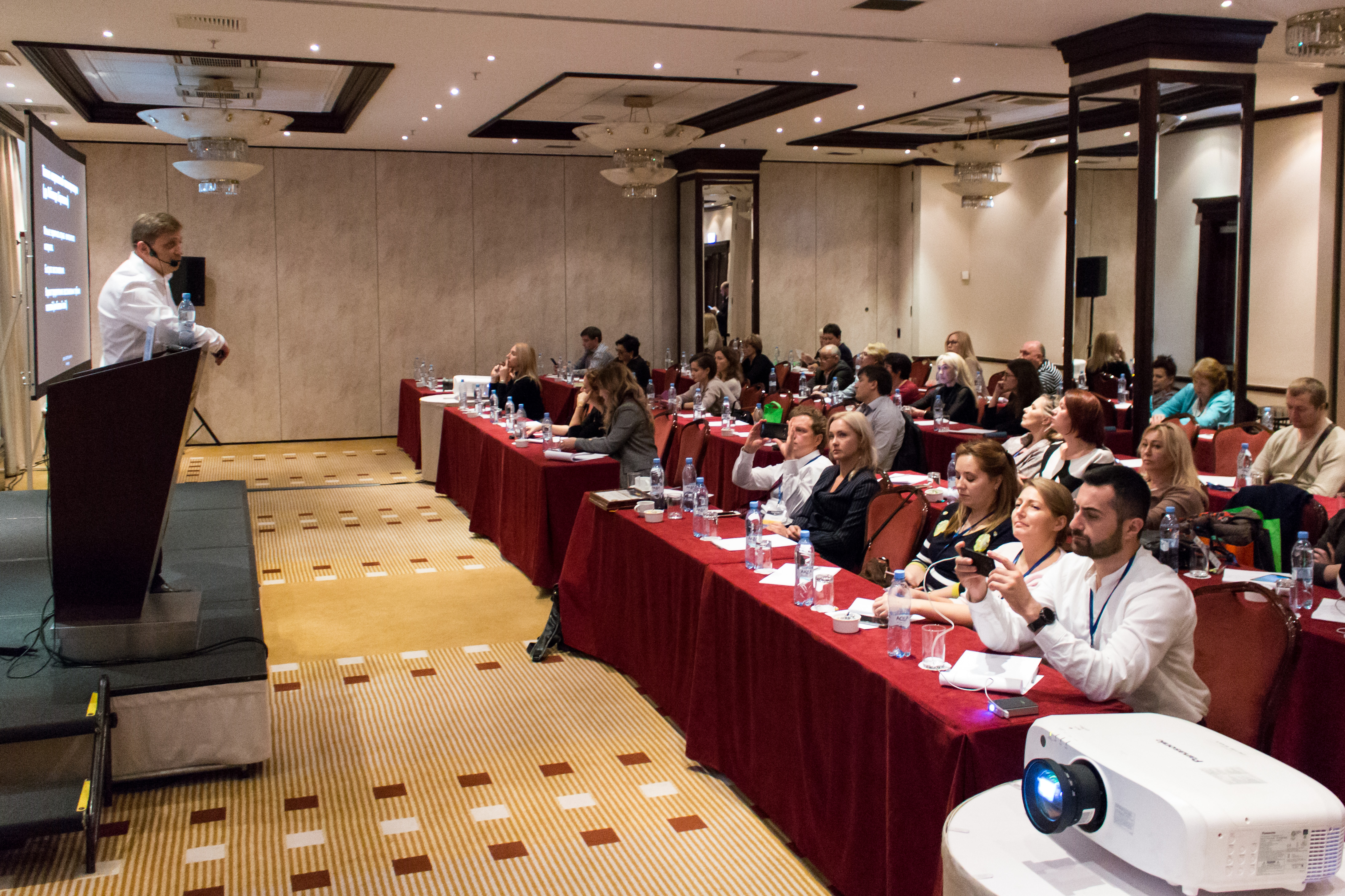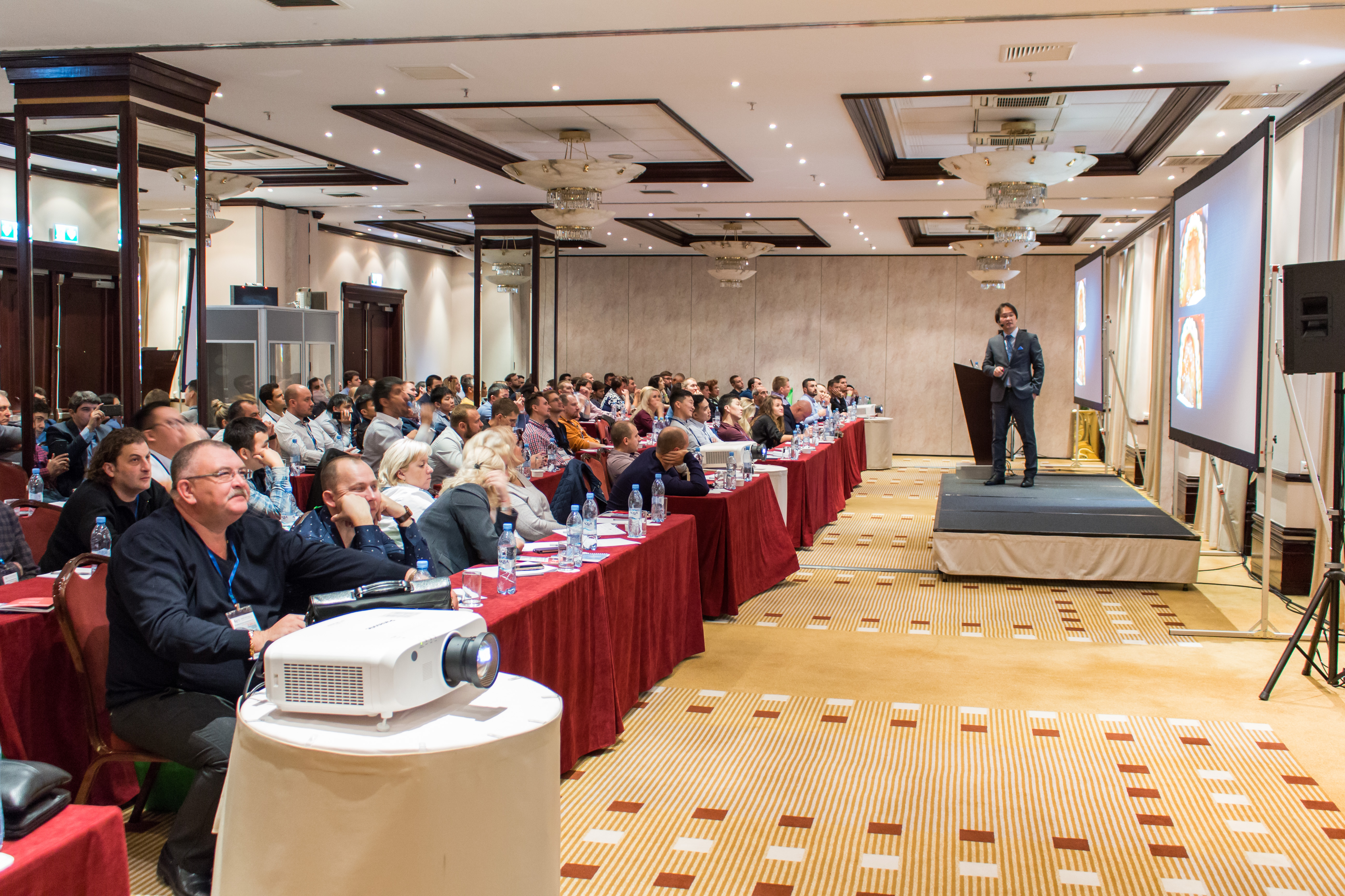На следующий день, 20 октября, прошёл 13-ый имплантологический конгресс, первым выступлением которого стал мастер-класс именитого стоматолога-хирурга из Туниса Суаеха Ашрафа. Он представил подробный доклад с наглядными примерами на тему «Съёмное протезирование с опорой на имплантаты», раскрыв различные виды, особенности и секреты протезирования. Все гости были в восторге от выступления и во время кофе-брейка не упускали возможность сделать селфи с зарубежной звездой стоматологии. Его сменила другая звезда, на этот раз отечественной стоматологии, которая также может похвастаться огромным количеством селфи с участниками, Ким Эдуард Вадимович. Основной темой выступления стали «Нестандартные решения сложных клинических случаев или все о винтовой фиксации. Разбор сложных клинических случаев. Авторские методики комплексного протезирования». Затем на сцену конференц-зала отеля Marriott поднялся Седов Юрий Георгиевич, который подробно затронул тему «Прогнозируемой имплантации с помощью цифровой навигационной хирургии». День конгресса невероятным образом совпал с другим знаменательным событием – Днём Рождения президента ГК «Дентал Гуру» Хабиева Камиля Наильевича, поэтому кофе-брейк был совмещен с торжественным поздравлением и разрезанием торта, который смогли попробовать все участники конгресса. Закрывал программу имплантологического конгресса сам именинник. Камиль Наильевич подготовил увлекательную лекцию с клиническими примерами на тему «Секреты имплантации». Он поделился собственным опытом и затронул все особенности имплантации, от планирования до костной пластики и использования титанового шелка.