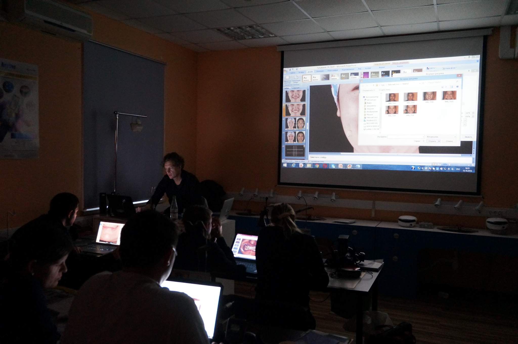 После обучающей части все присутствующие под внимательным руководством лектора ознакомились с программным обеспечением и техническими инструментами DSD, рассмотрели практическое применение DSD в ноутбуке. Особое внимание было уделено фотографии: это и фото-сессия и презентация результата, и стоматологический протокол цифровой фотографии, и калибровка фотооборудования.