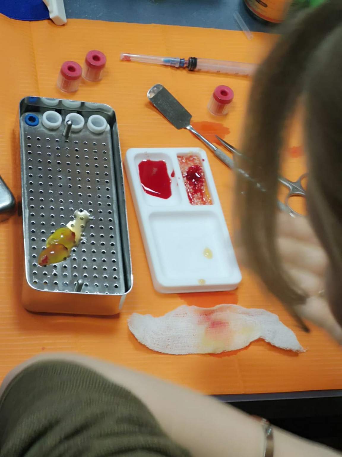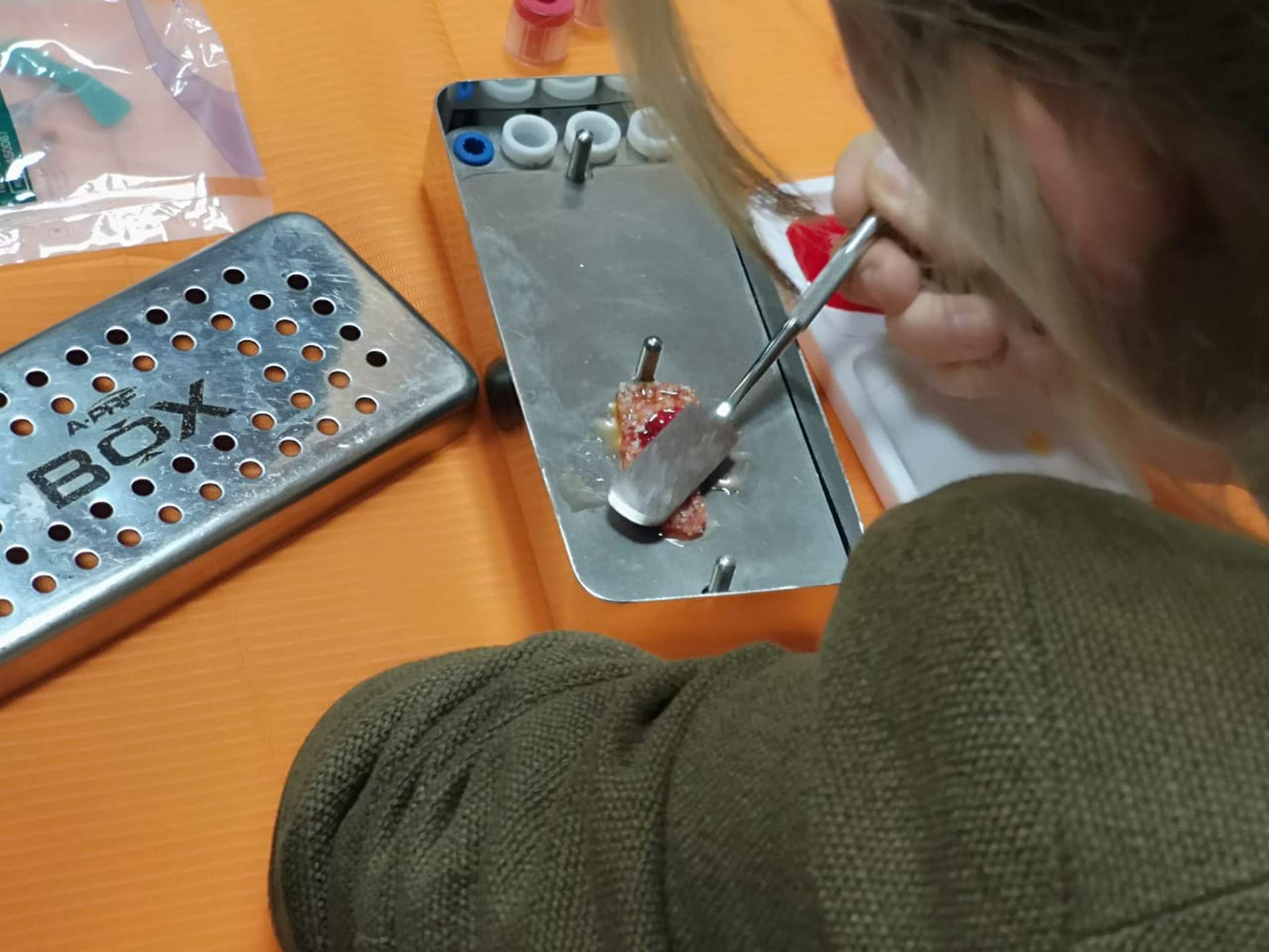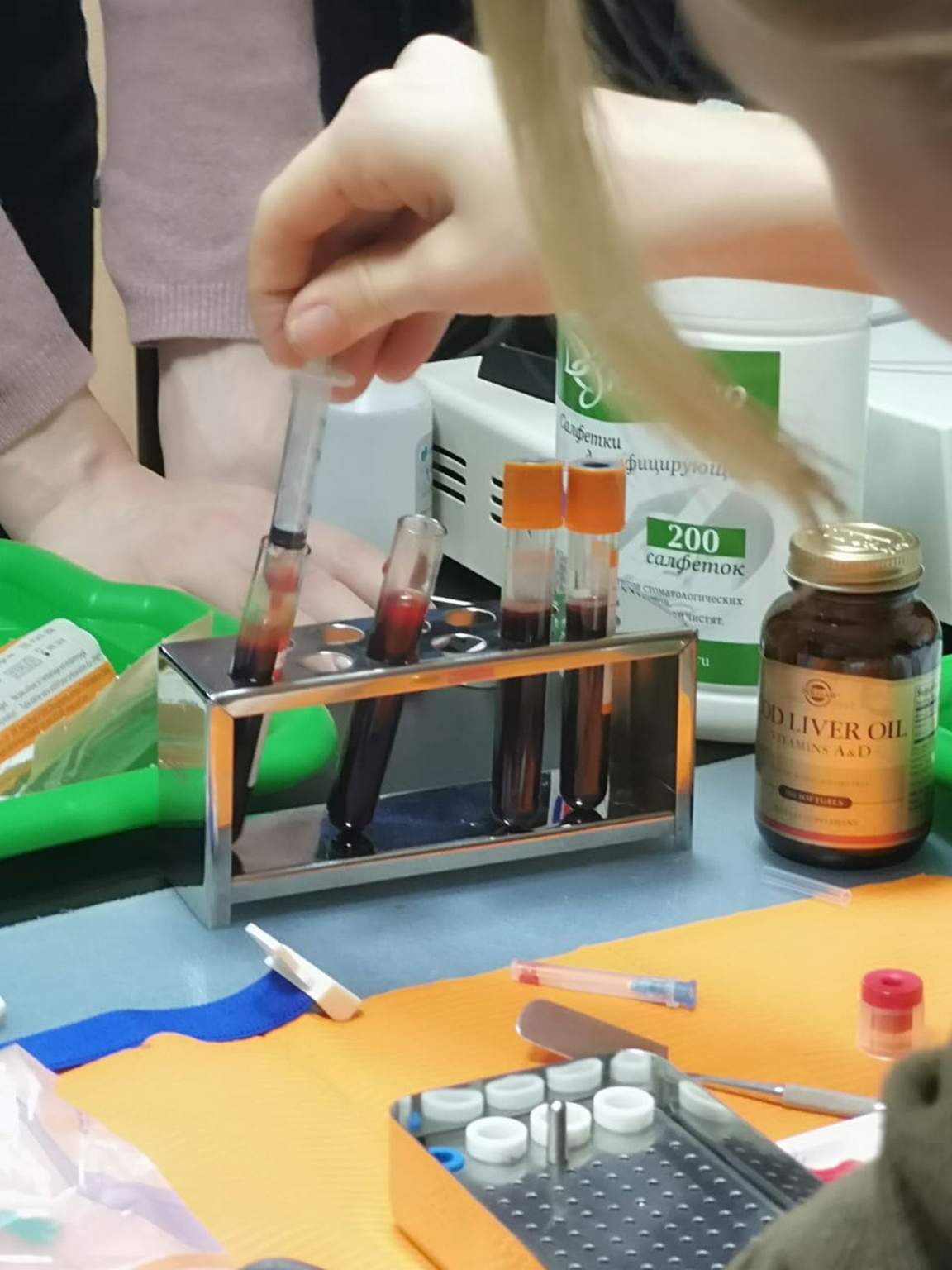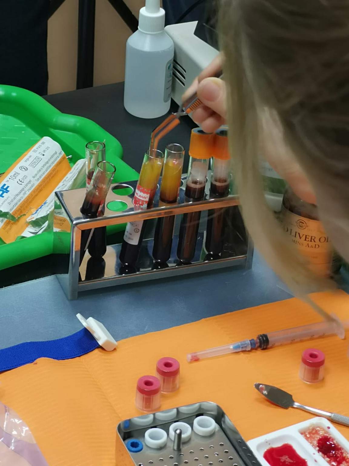 На множествах примеров Нина Андреевна рассказала обо всех достоинствах I-PRF и A-PRF-технологии, её надежности, простоте, доступности и экономности. Участники курса узнали, что методика 100% аутогенная, так как получается из собственной крови пациента и содержание всех форм лейкоцитов и тромбоцитов в ней максимально высокое. Коснулись также вопроса безопасности применения технологии и правил забора крови, обсудили противопоказания и проблемы, с которыми может столкнуться доктор в процессе работы.
