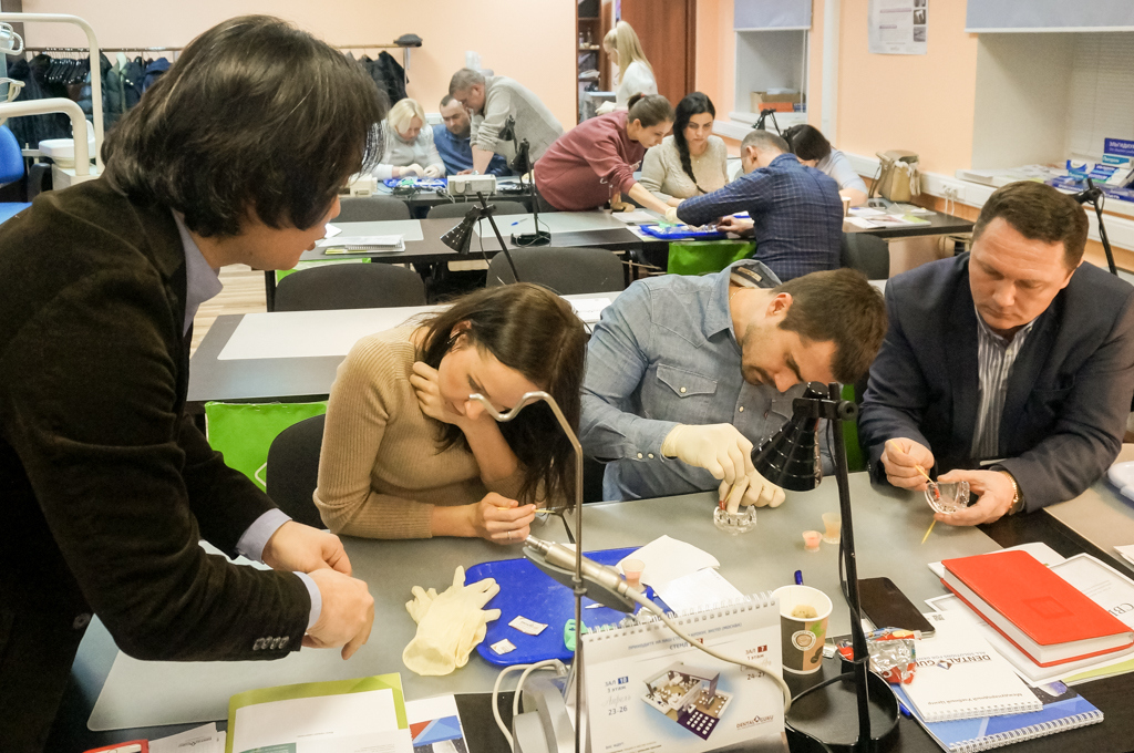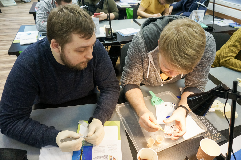 Им освещались вопросы ортопедического этапа имплантации. Хирурги учились снимать слепки с имплантатов различными методиками (открытой ложки, закрытой ложки, комбинированные слепки).Специалисты узнали, как подбирать и индивидуализировать слепочные трансферы, как подбирать абатменты (для цементной, винтовой и цементно-винтовой фиксации), изготавливать индивидуальные ложки и как работать с балочными конструкциями, съемными протезами на шариковых, магнитных абатментах и локаторах.