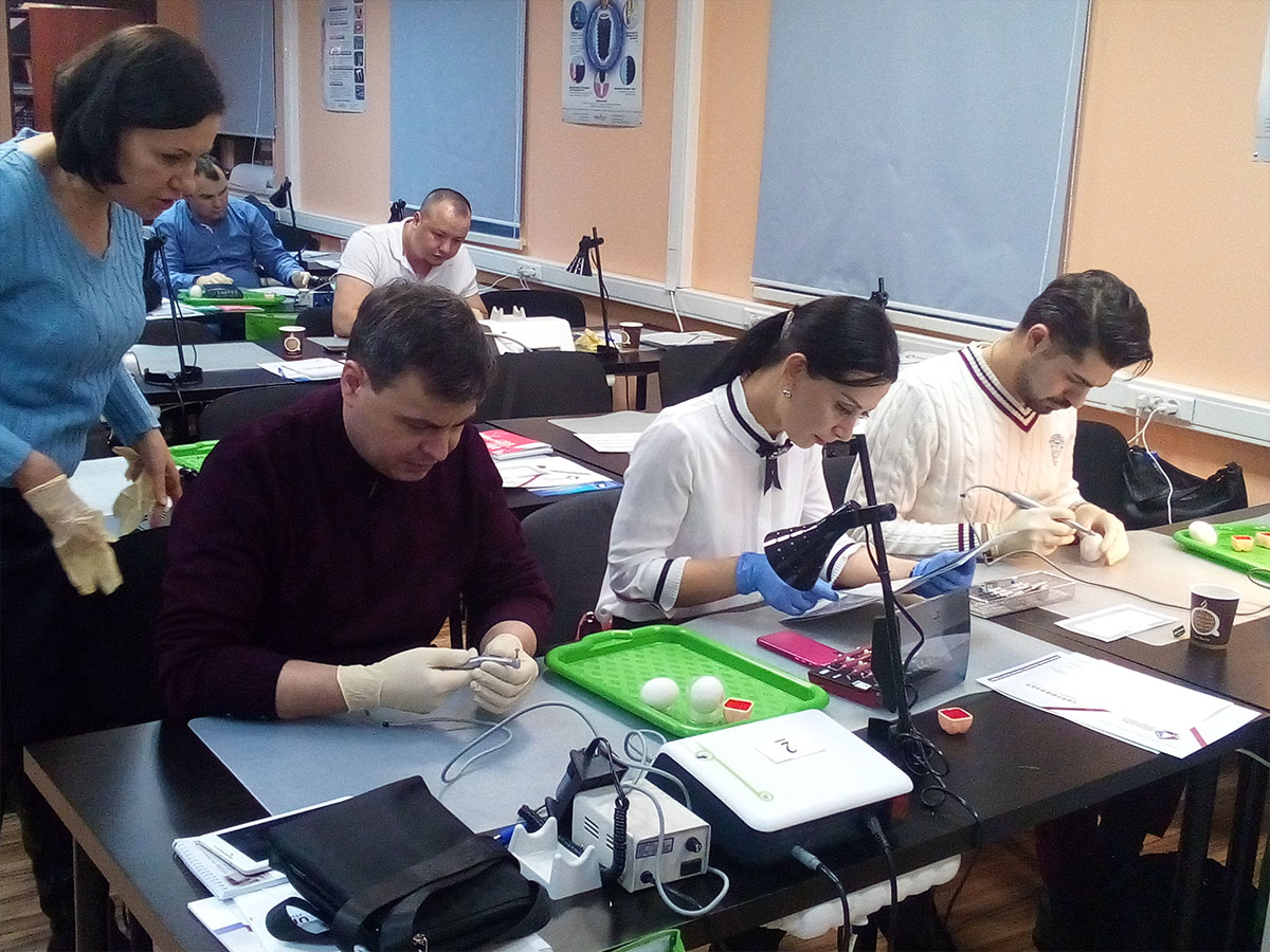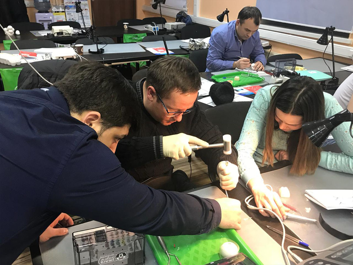 Весь курс сопровождался подробным видеорядом и дал врачам четкое представление о рассматриваемых методиках. После обучающей части все присутствующие под внимательным руководством лектора отрабатывали мануальные навыки на моделях и биоматериале. Совместная практика позволила участникам курса с лёгкостью усвоить пройденный материал и закрепить полученные знания.