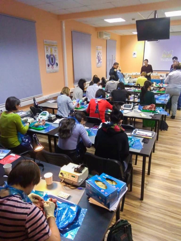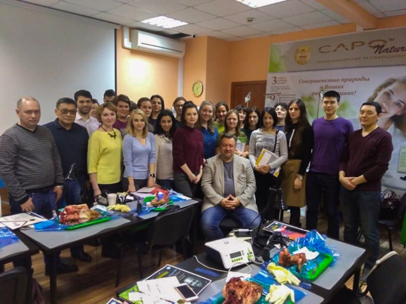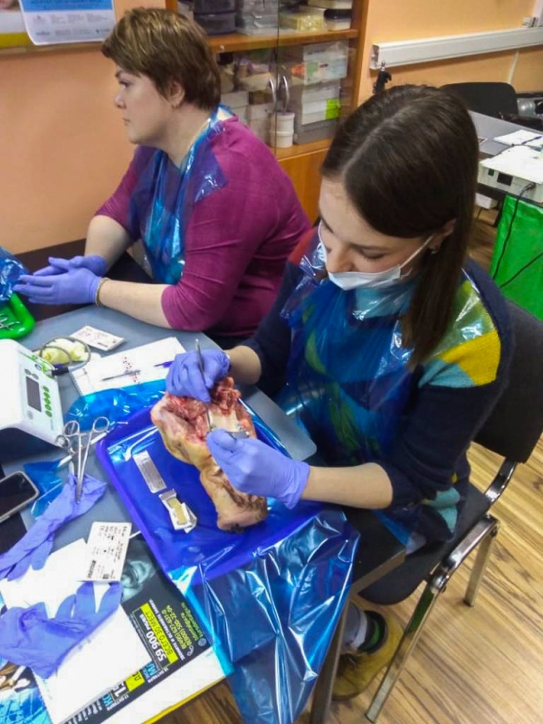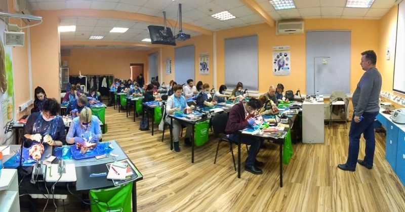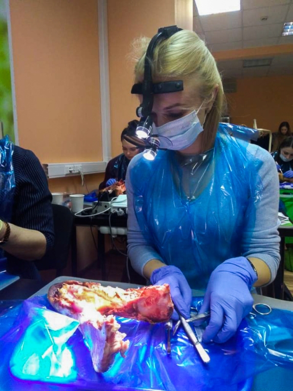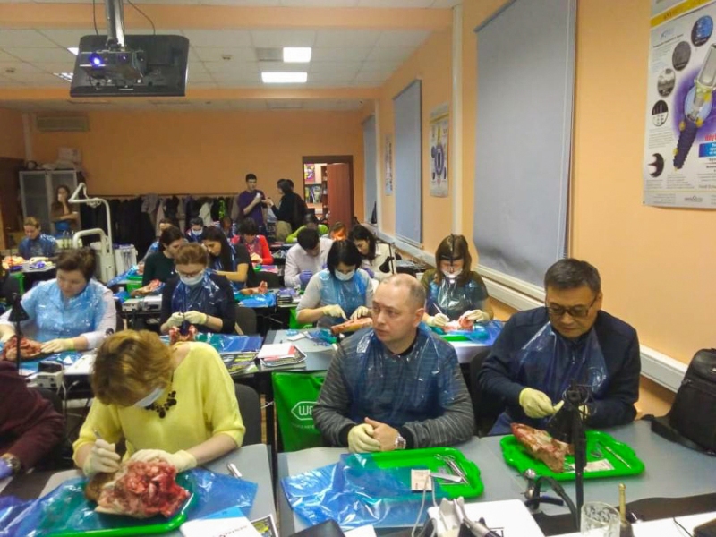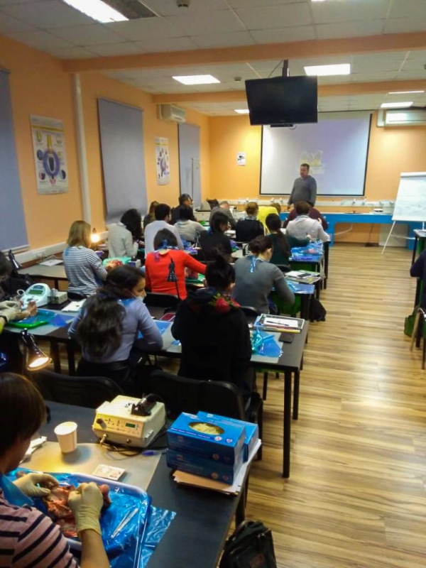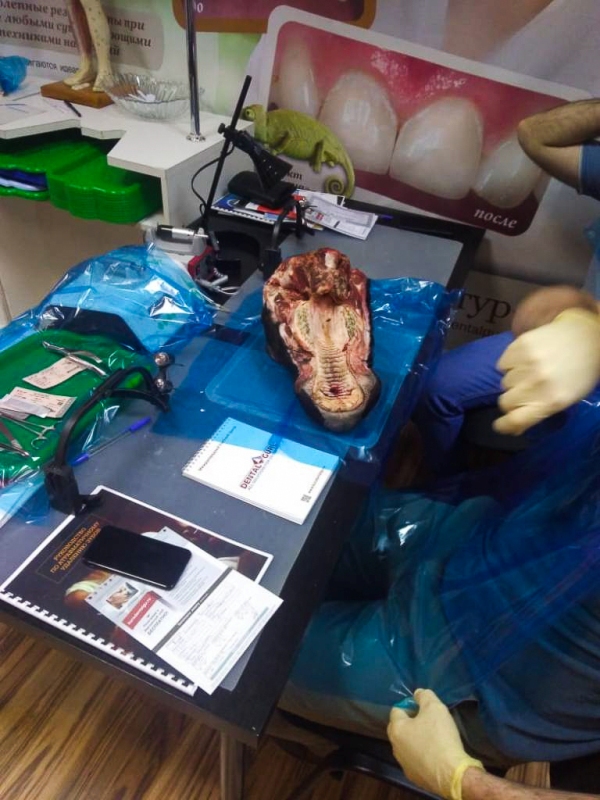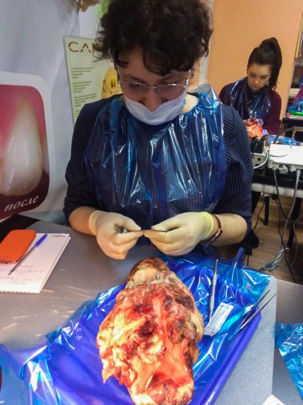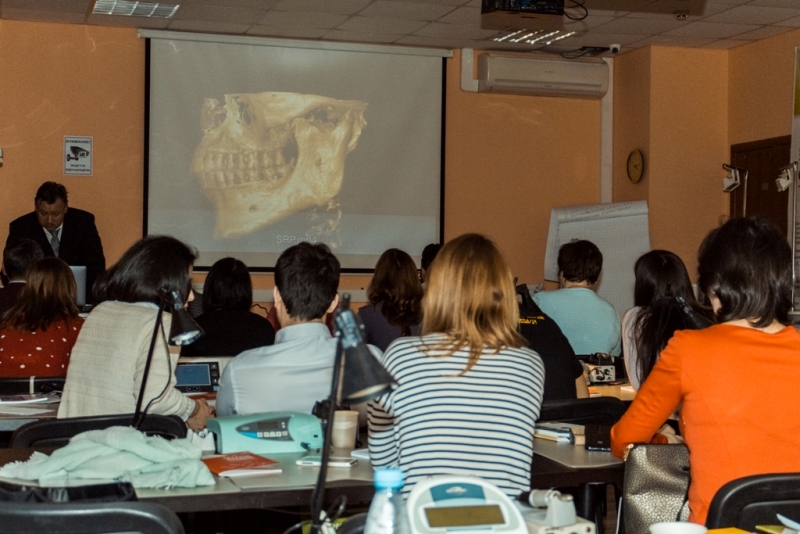 Лекционная часть сопровождалась демонстрацией видеоматериалов по этиопатогенезу воспаления, регенерации пародонта, взаимосвязи с общесоматоической патологией и остеоинтеграции имплантатов. Были показаны видео по вестибулопластике в различных отделах челюстей местными тканями и нёбными трансплантатами, по хирургическим резективным и реконструктивным операциям, операциям по устранению рецессии десны, операциям по изменению биотипа пародонта.После обучающей части был проведен мастер-класс на биоматериале, который позволил отработать направленную тканевую регенерацию, вестибулопластику, шовные методики и закрепить полученные знания.