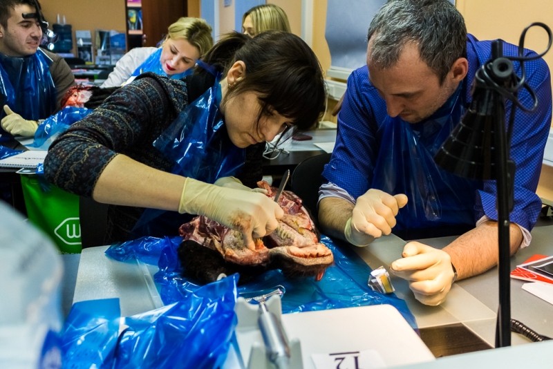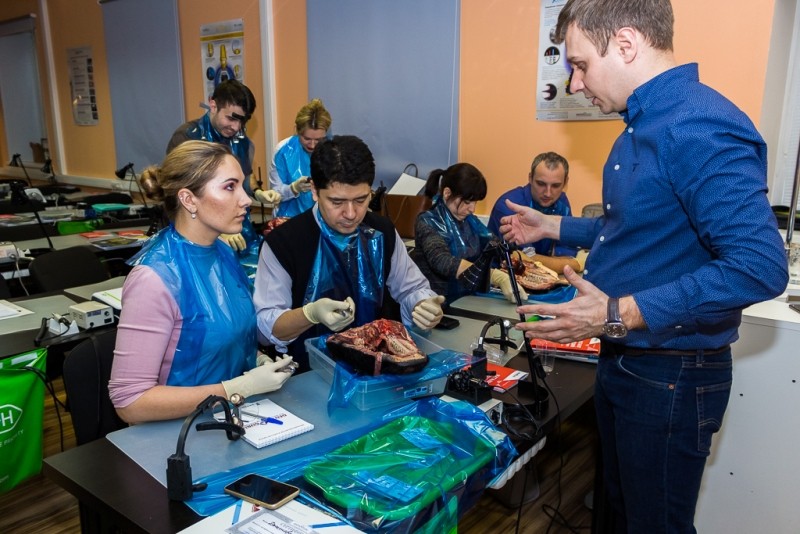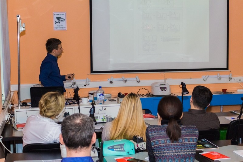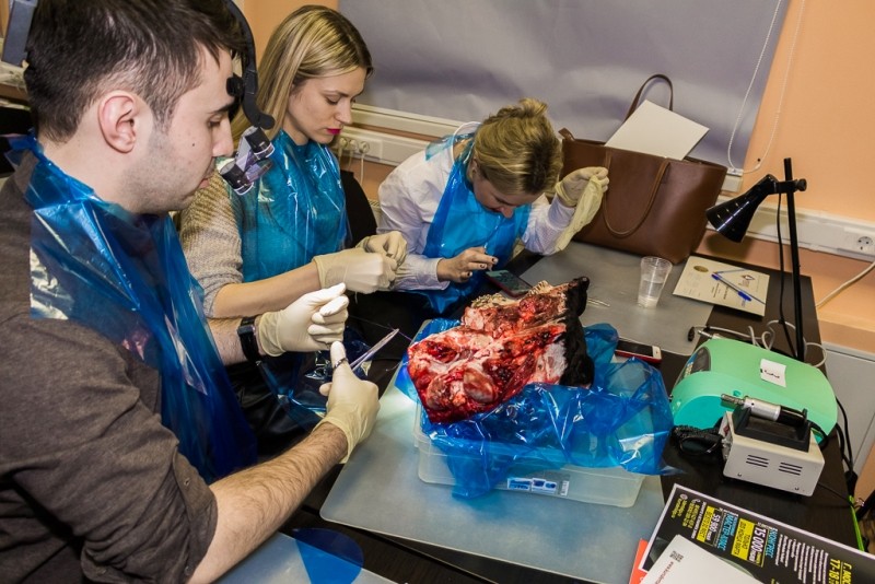 Юрий Юрьевич поделился практическим опытом, продемонстрировав работу по методике root shield и растяжению надкостницы с помощью методики Soft Brushing, рассказал о правильном получении APRF для заполнения лунки зуба; провел мастер-класс по демонстрации удаления зубов с помощью специальных наборов и инструментов.