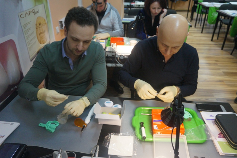 Весь курс сопровождался подробным видеорядом, демонстрацией собственных клинических случаев, что позволило дать врачам четкое представление о рассматриваемых методиках. После обучающей части все присутствующие под внимательным руководством лектора занимались подбором абатментов для решения разных клинических ситуаций, разбором различных видов протезирования на имплантатах, закрепили мануальные навыки при работе с компонентами имплантационных систем, а также освоили работу с динамометрическим ключом на разные абатменты и имплантаты.