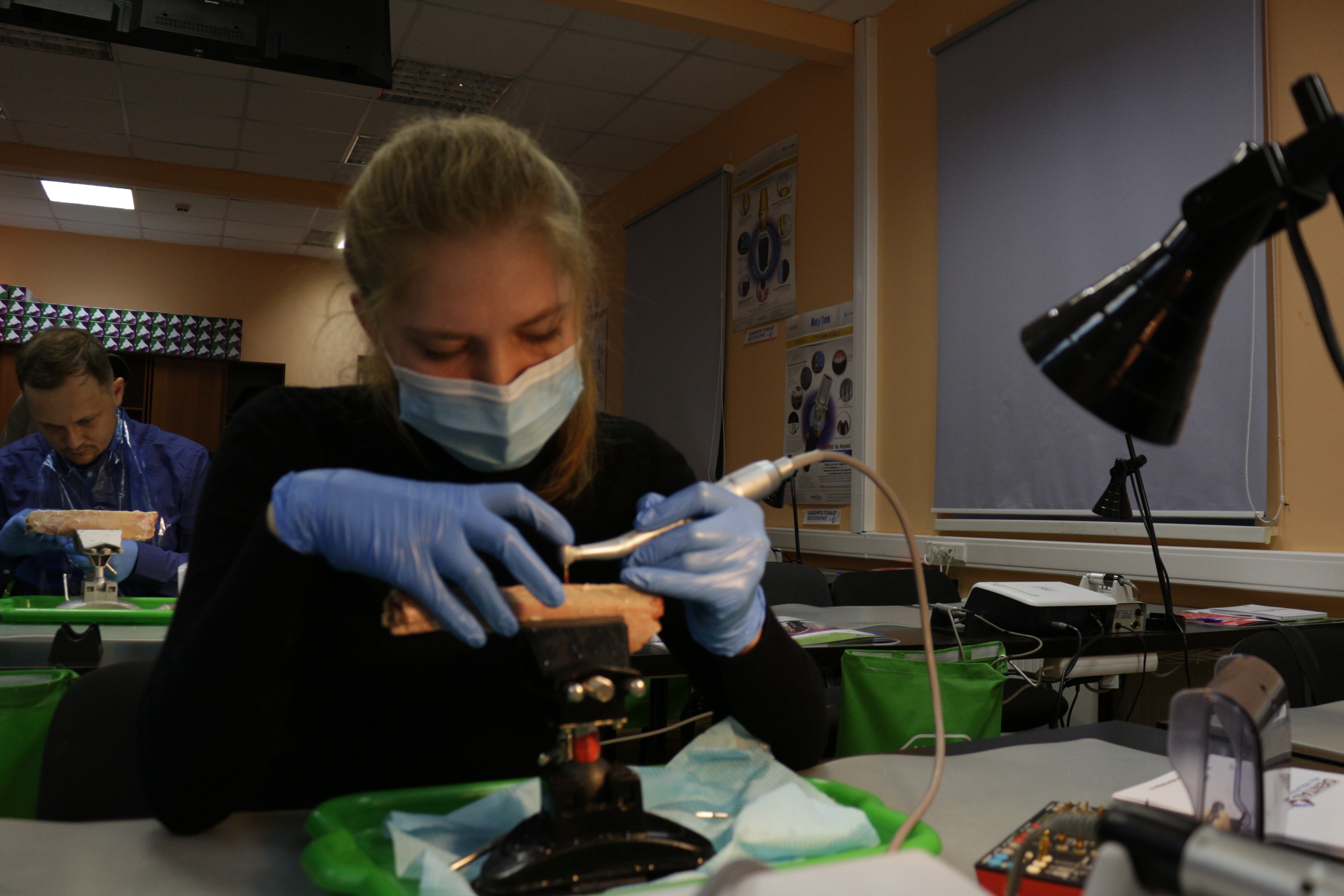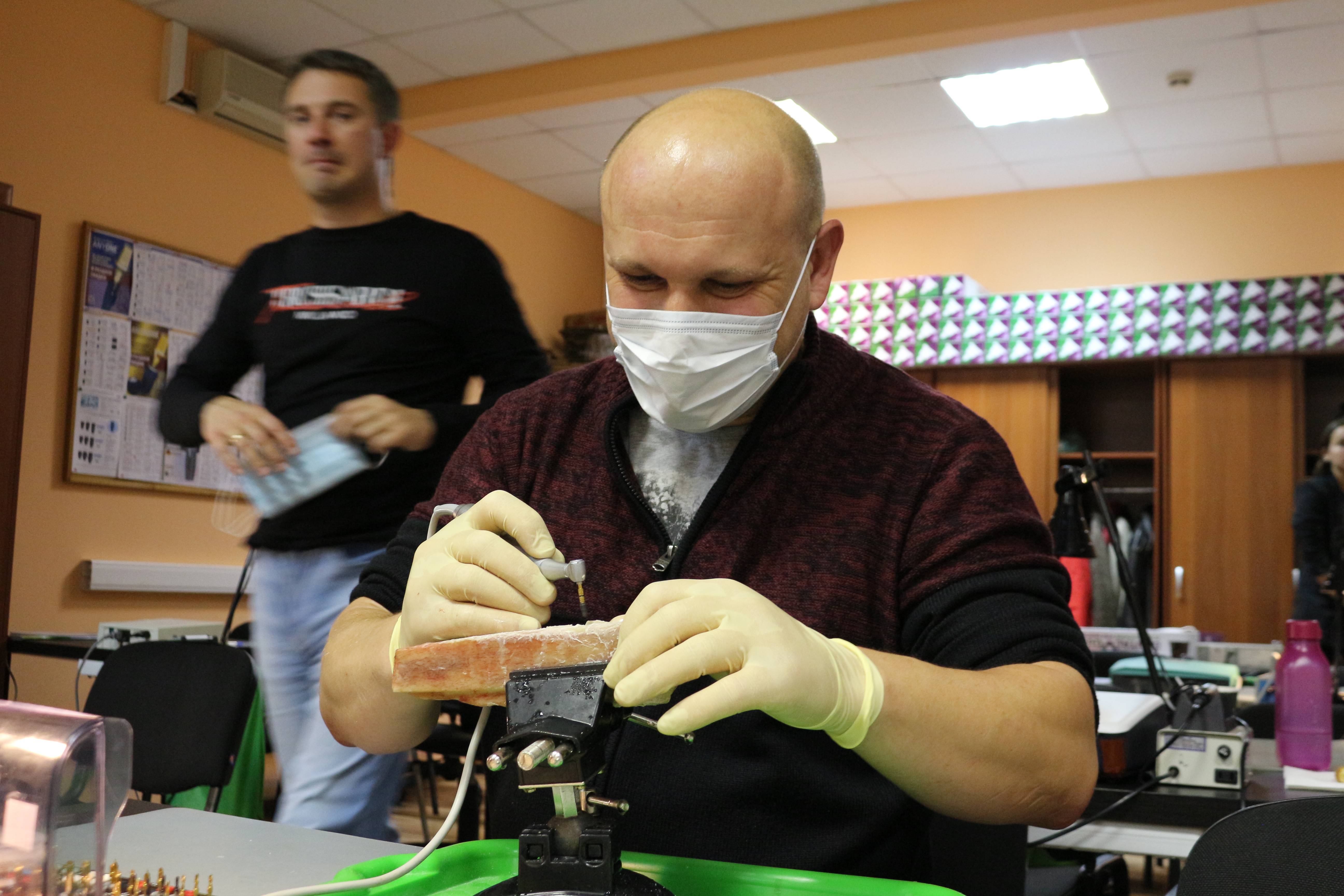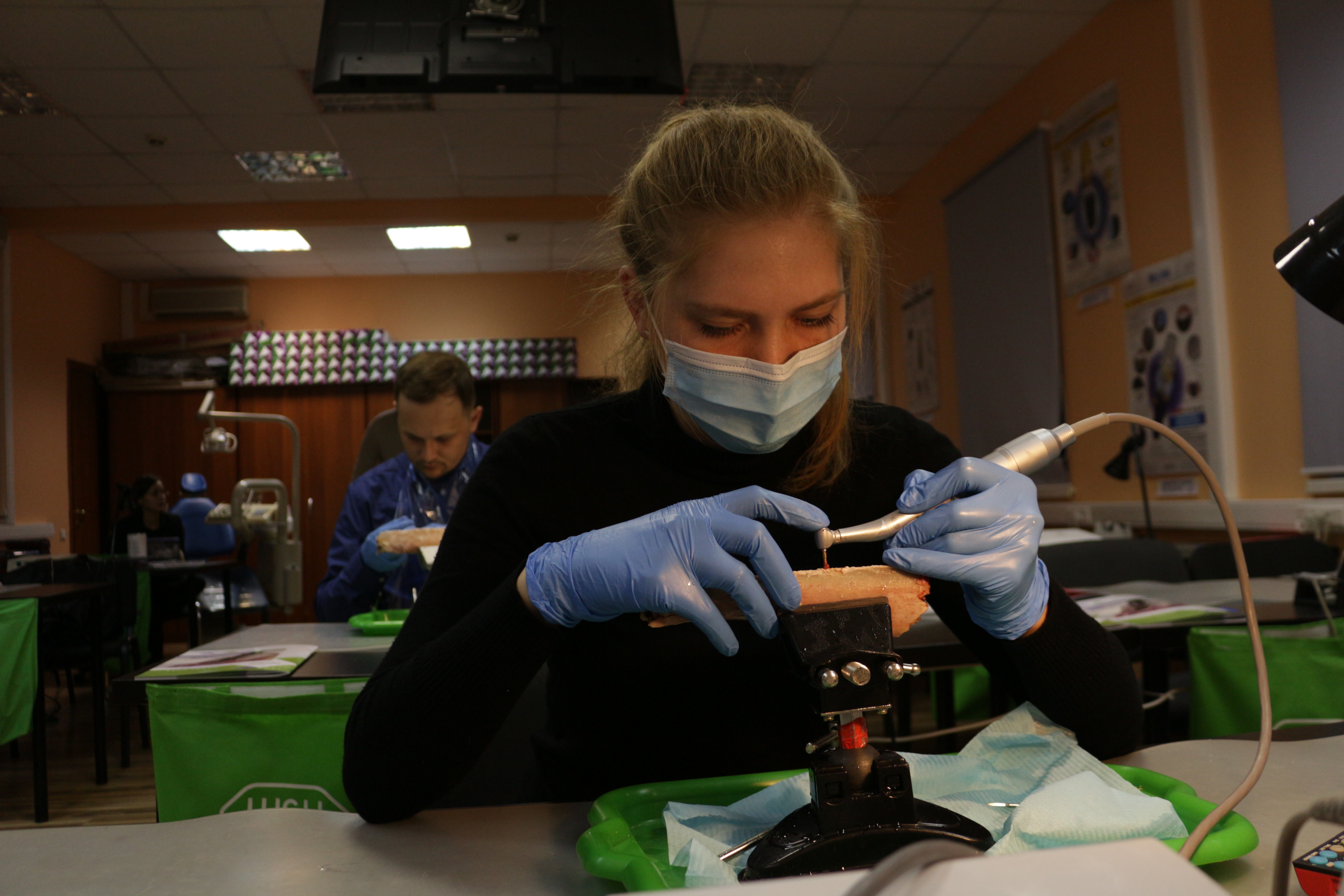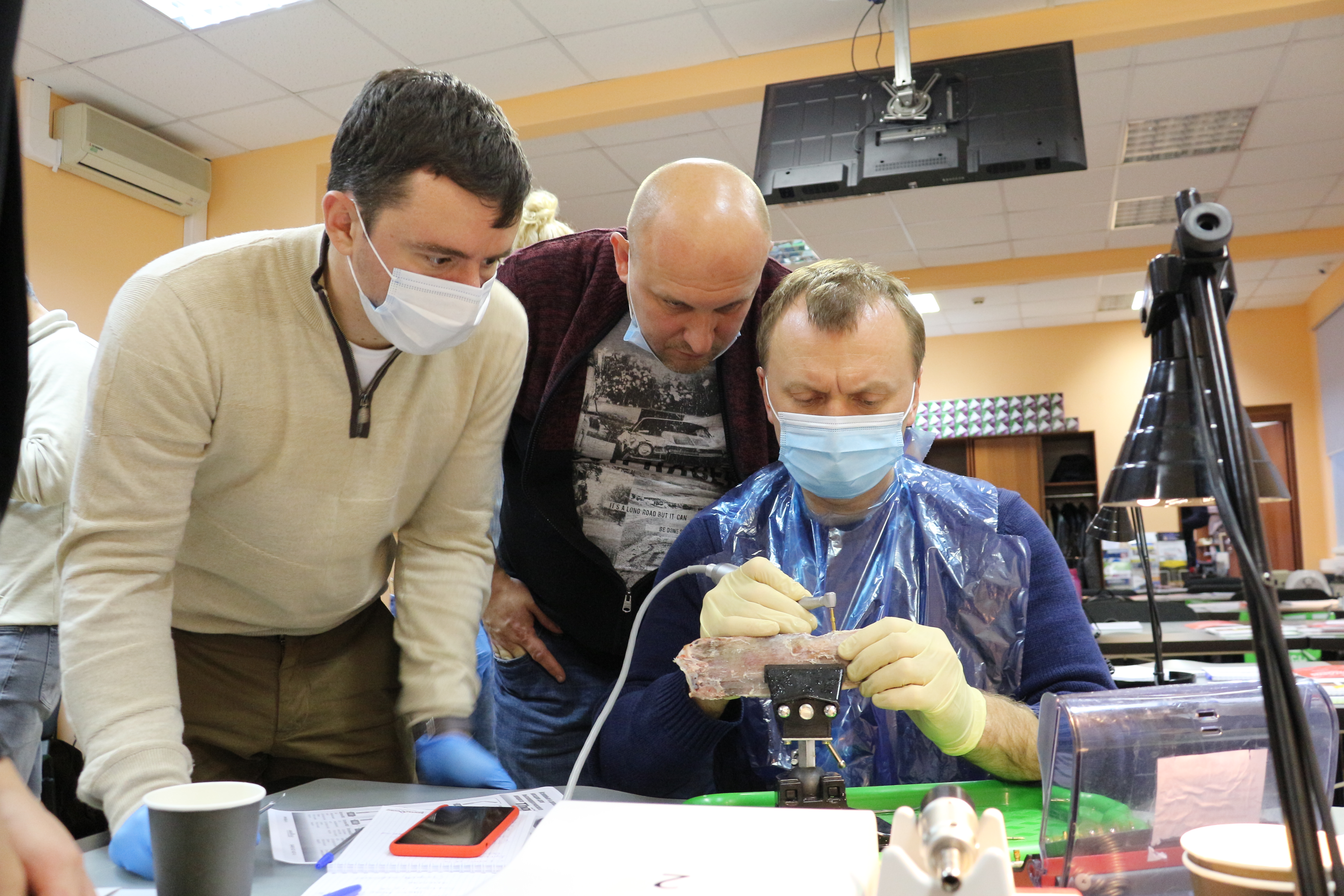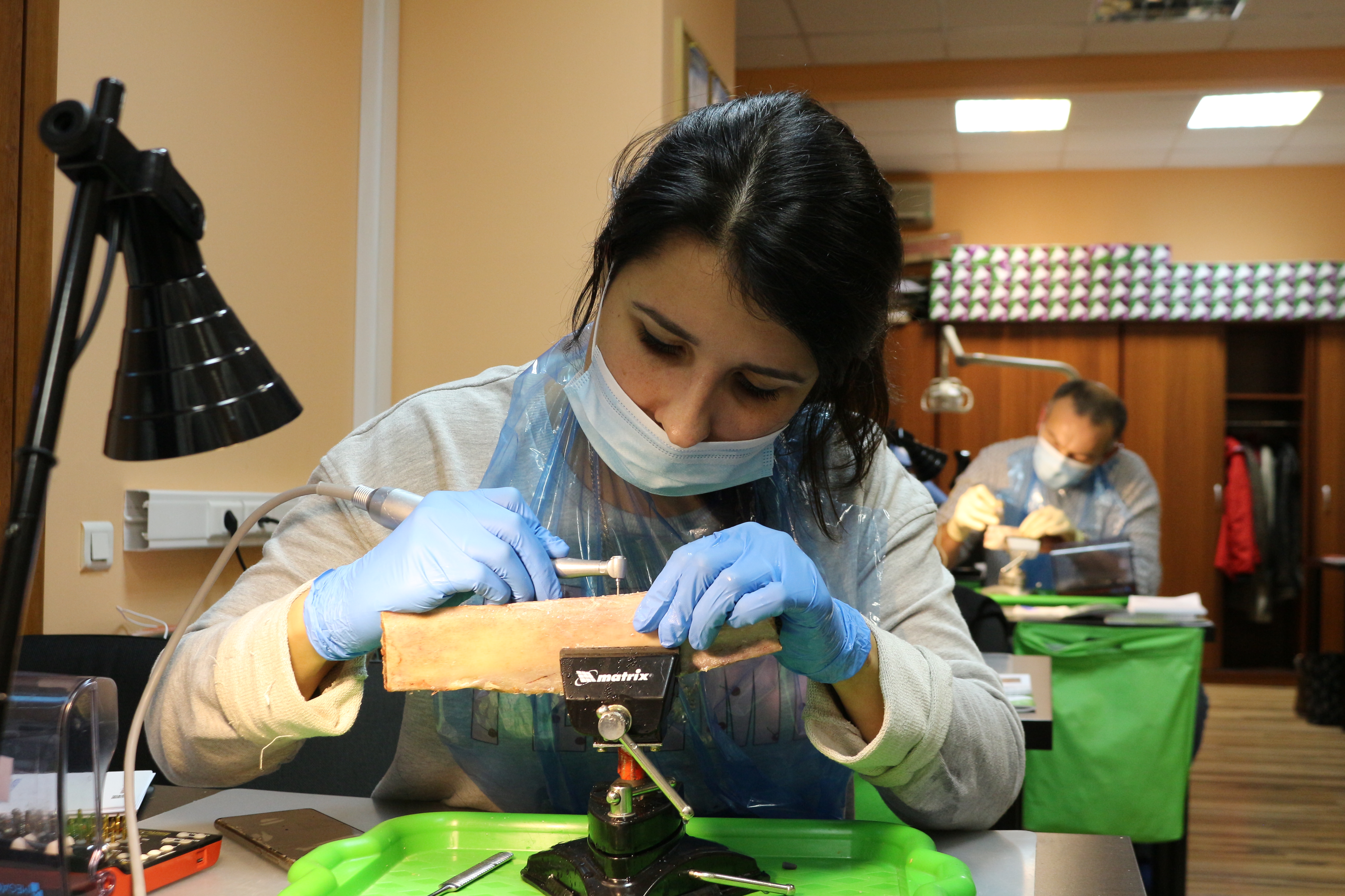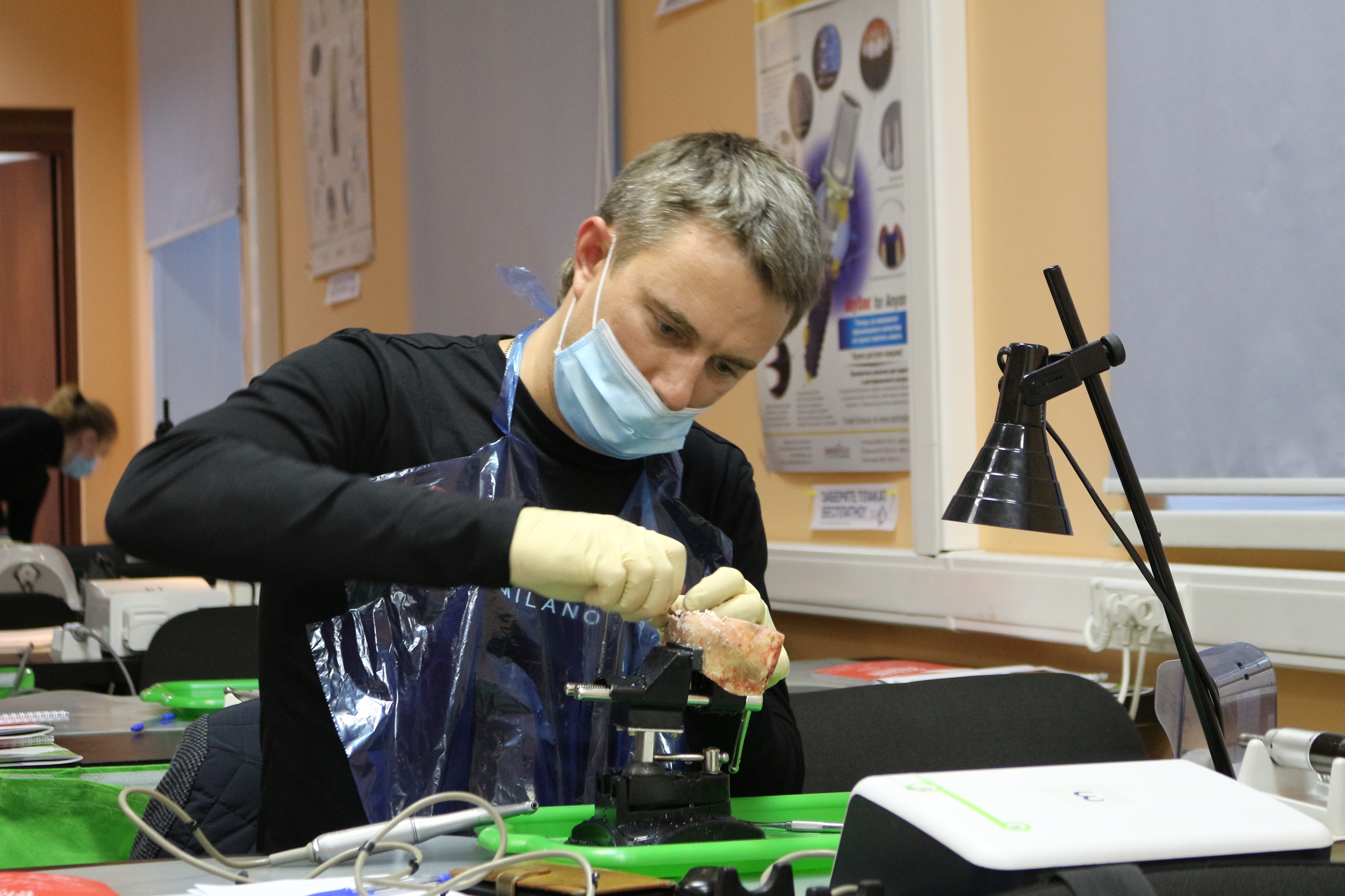 Для практических занятий использовались говяжьи ребра, куриные яйца, фантомы верхней челюсти и уникальные модели гайморовой пазухи.