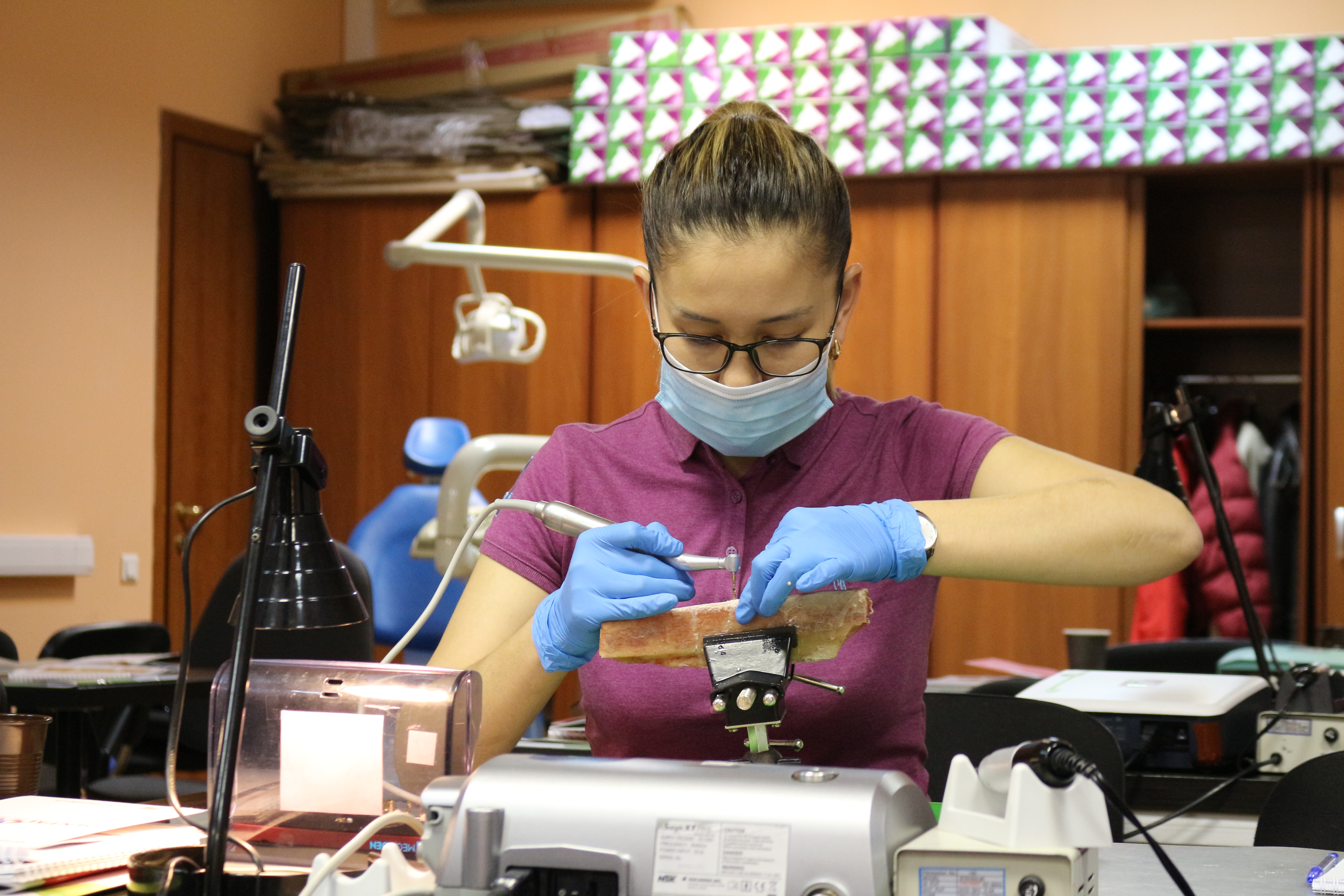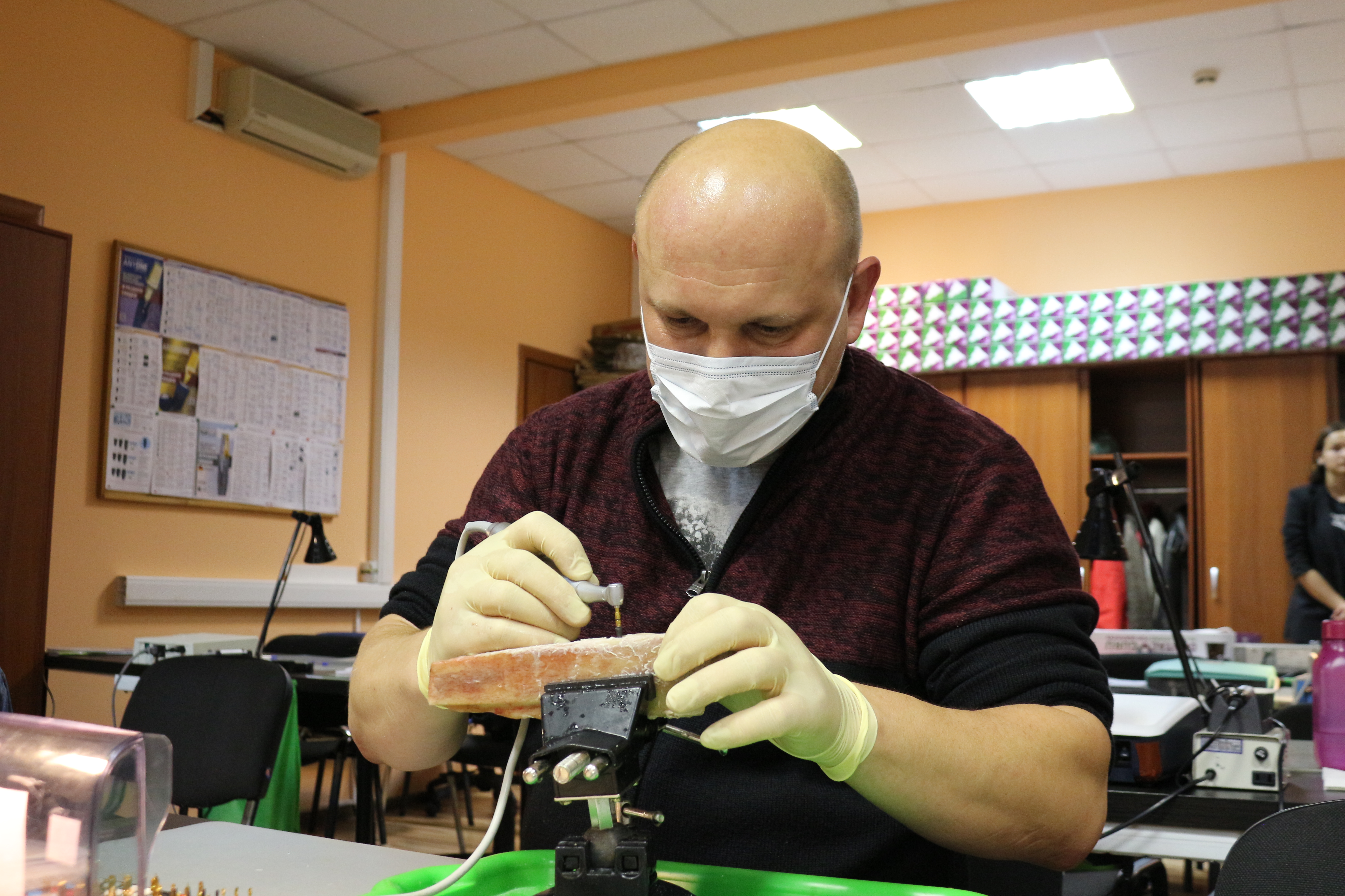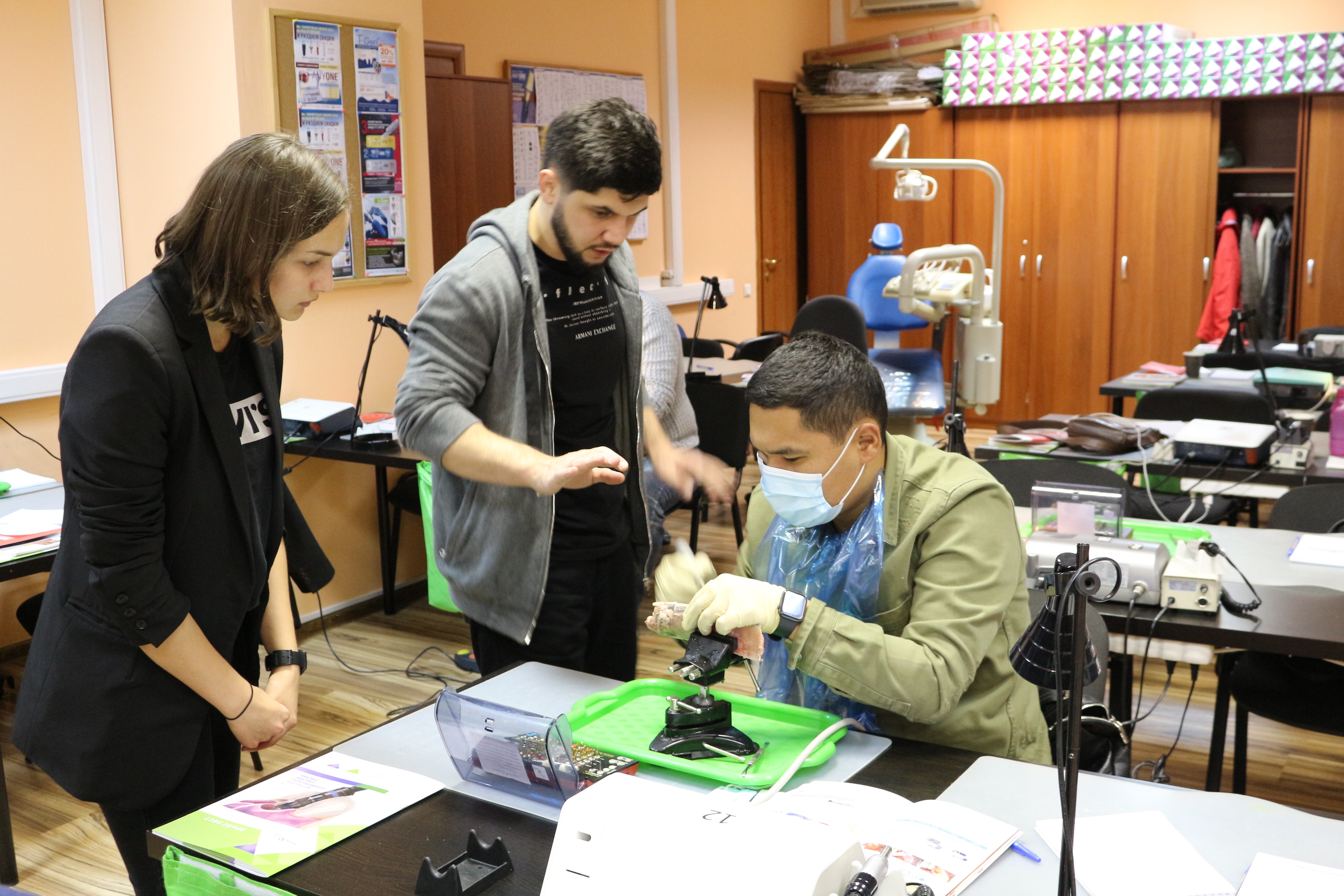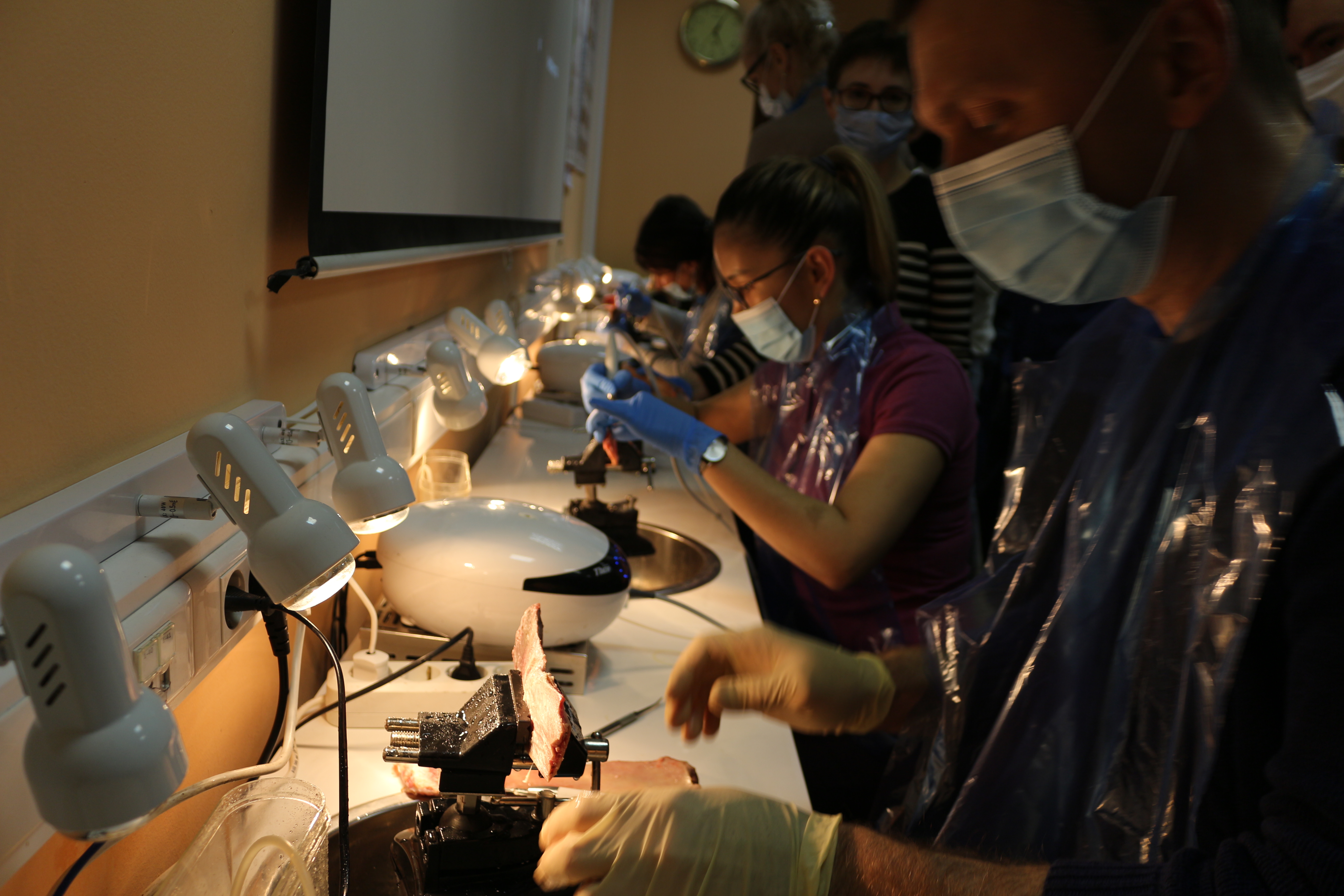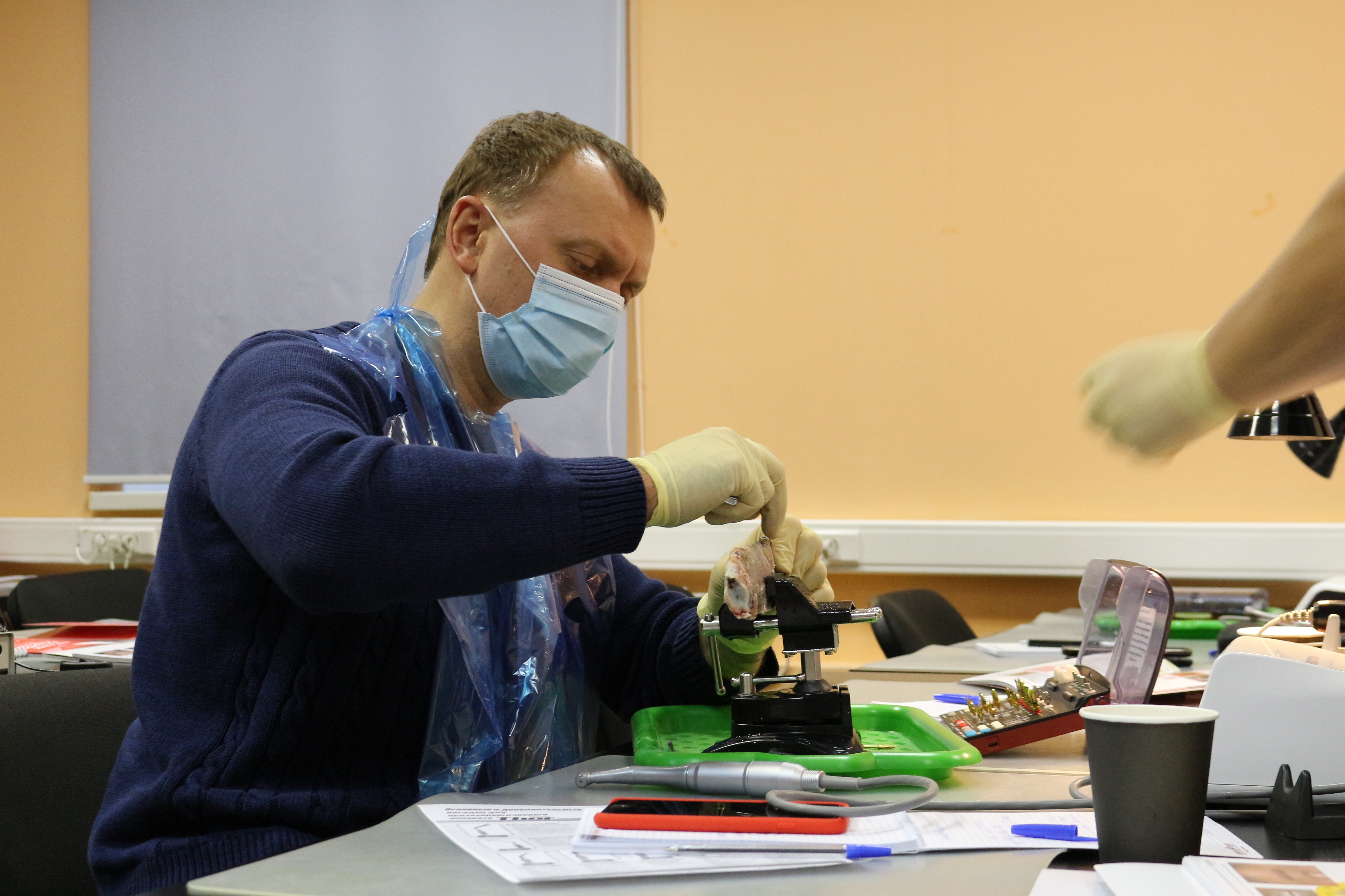 Для практических занятий использовались говяжьи ребра, куриные яйца, фантомы верхней челюсти и уникальные модели гайморовой пазухи.