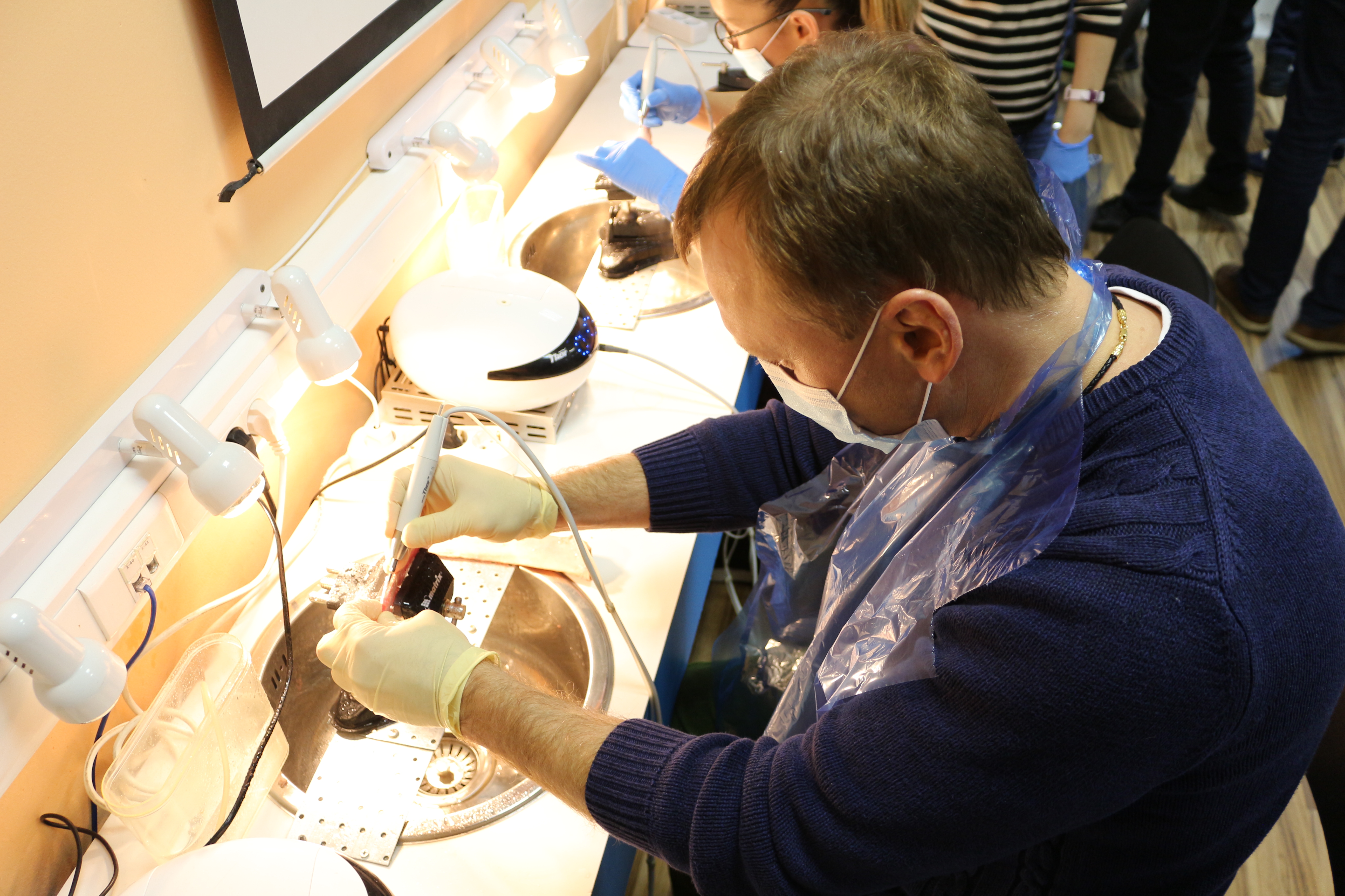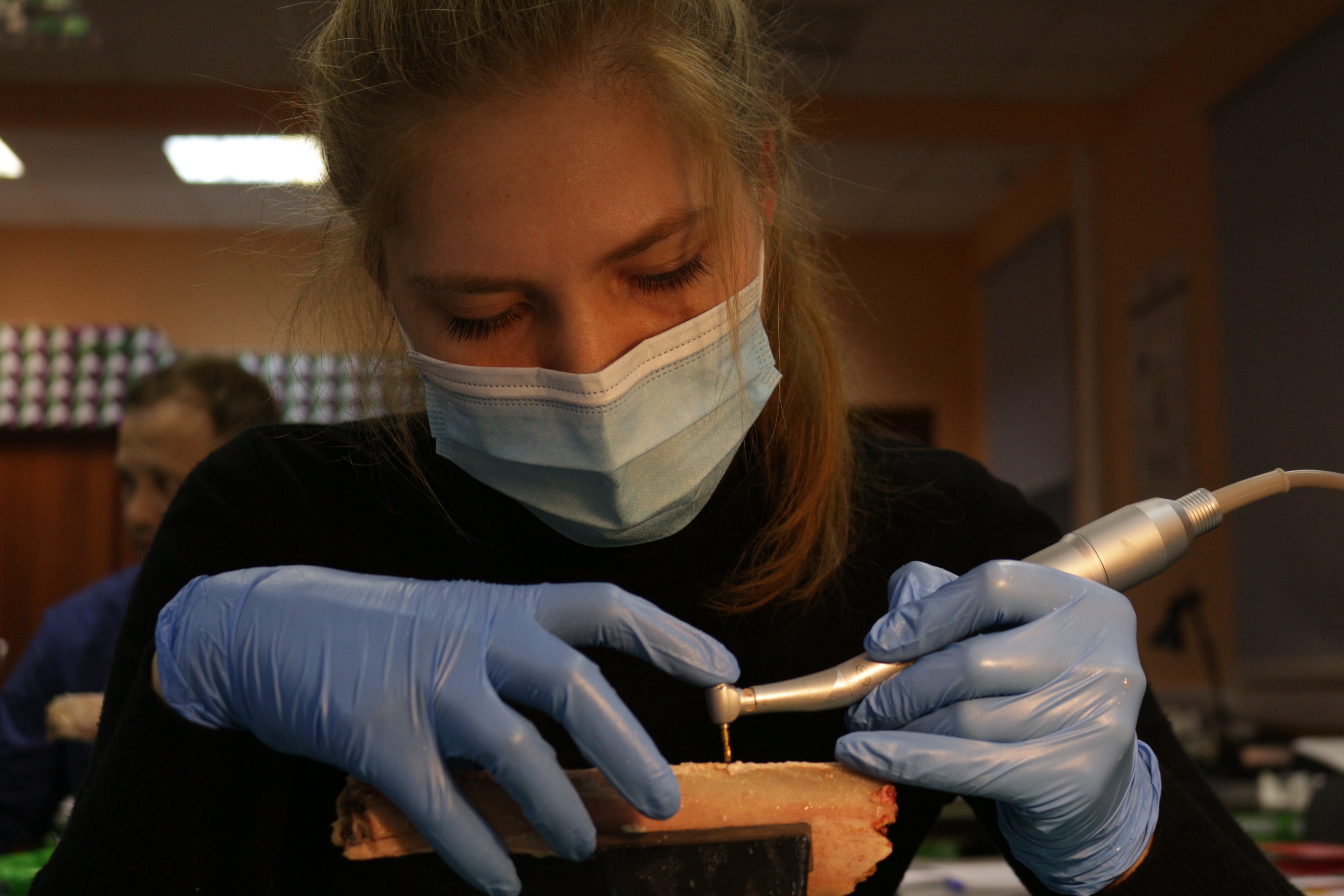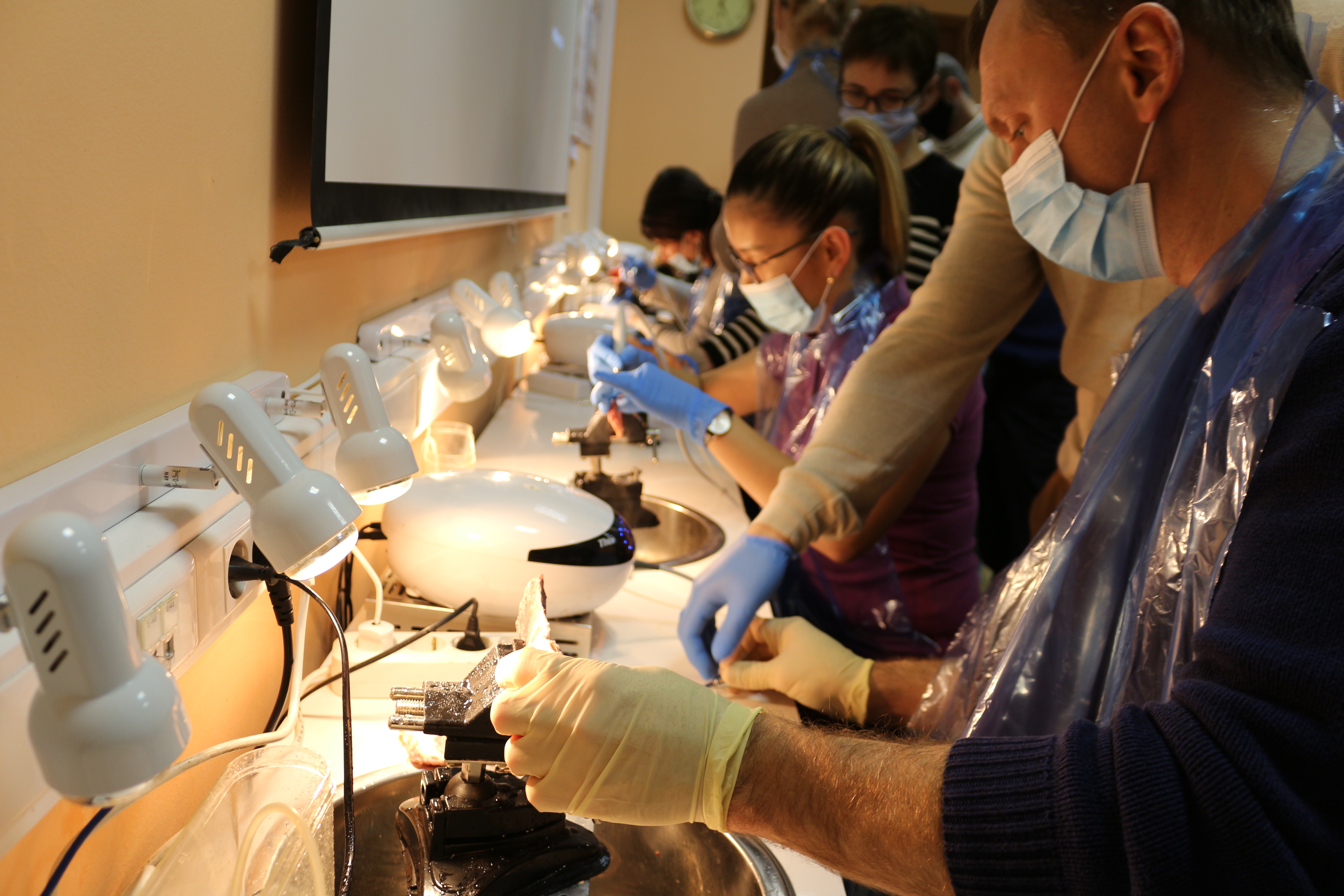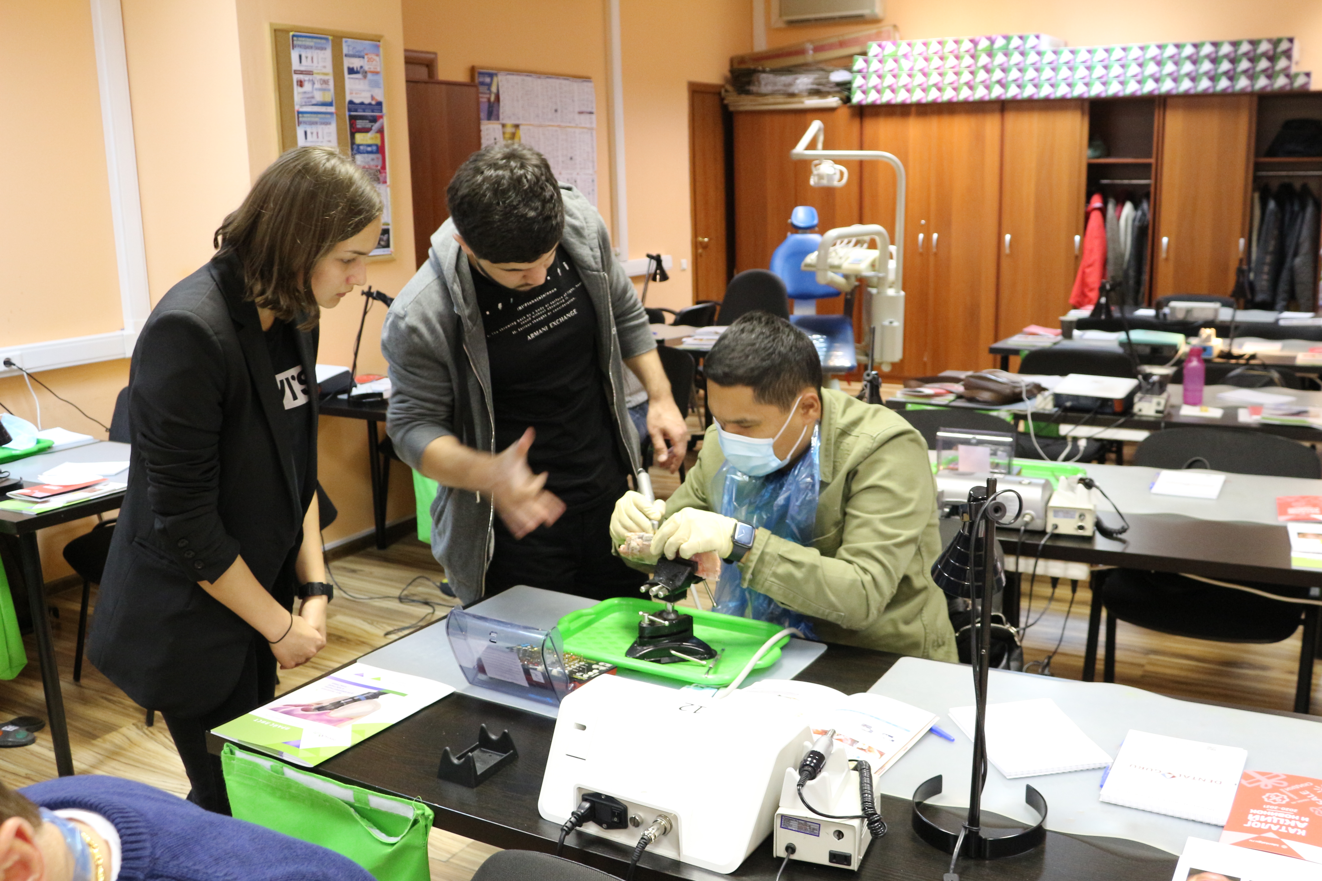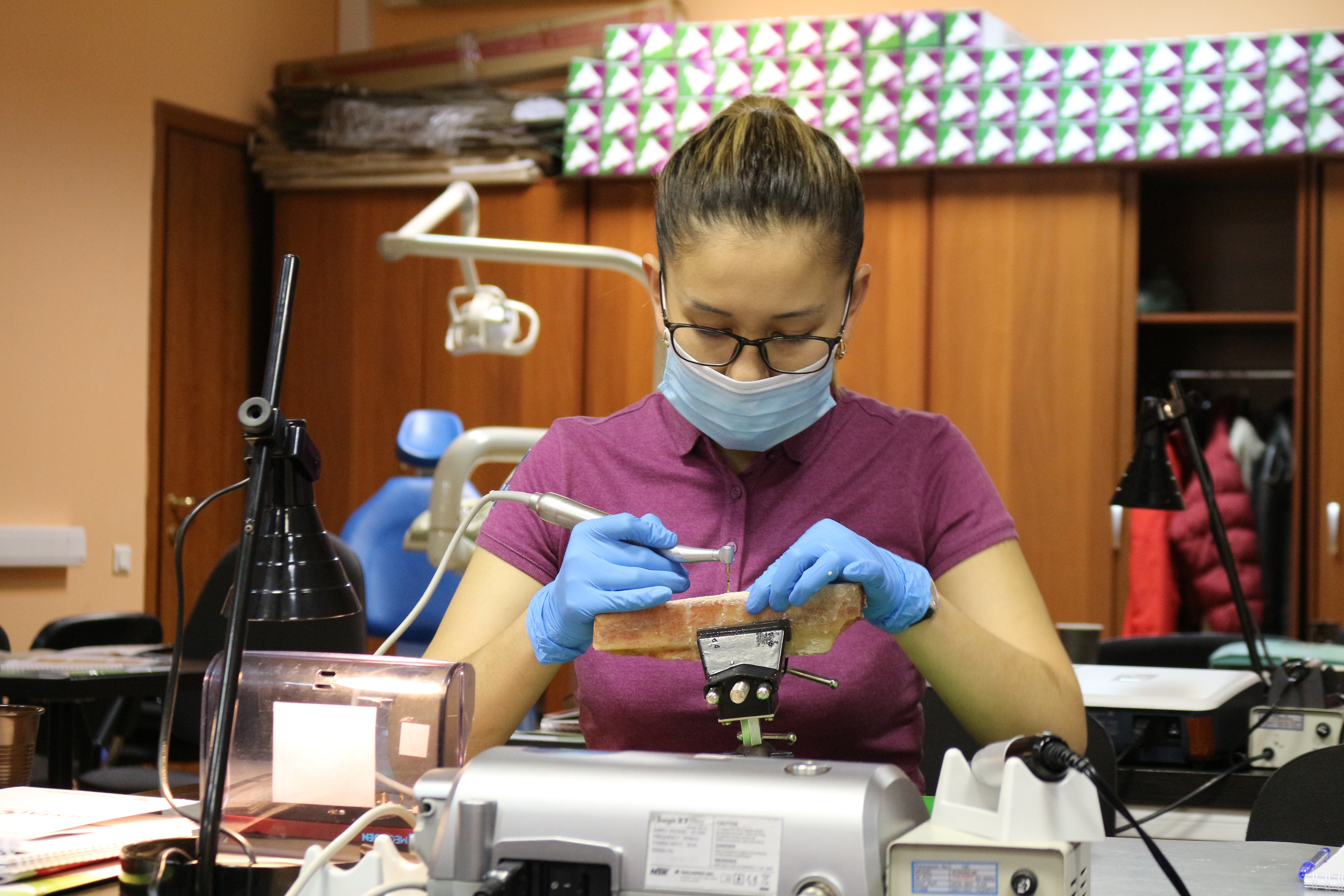 Для практических занятий использовались говяжьи ребра, куриные яйца, фантомы верхней челюсти и уникальные модели гайморовой пазухи.