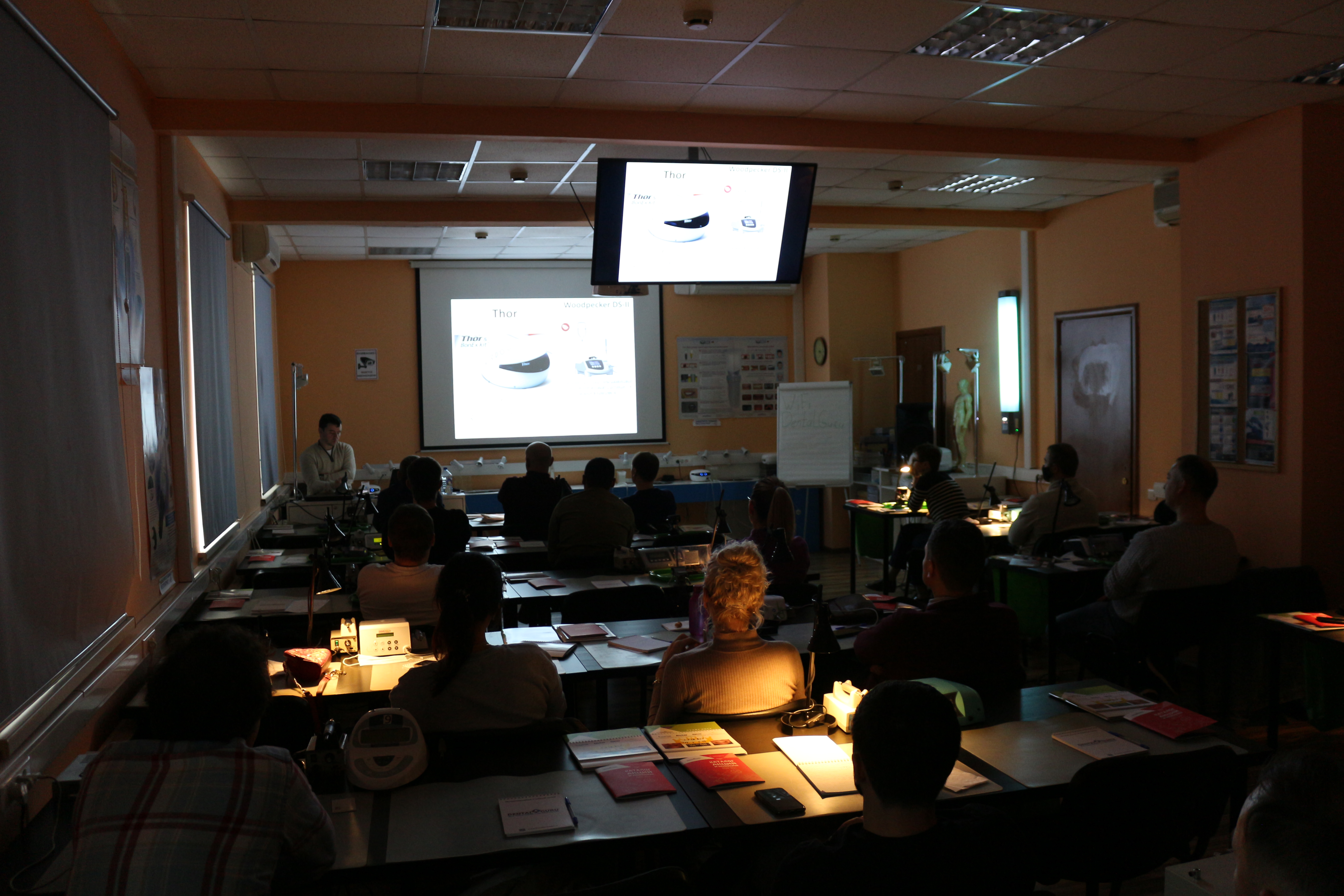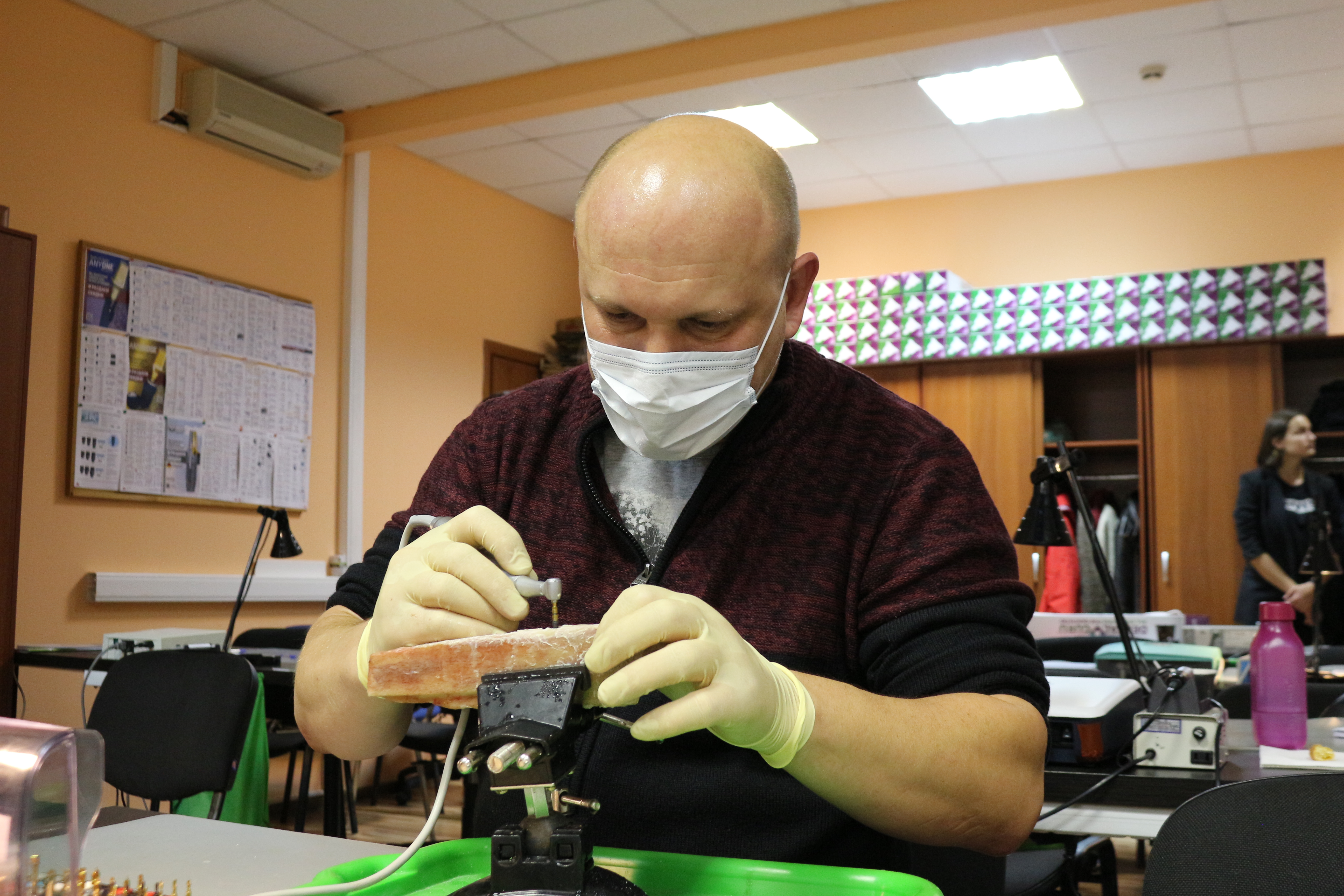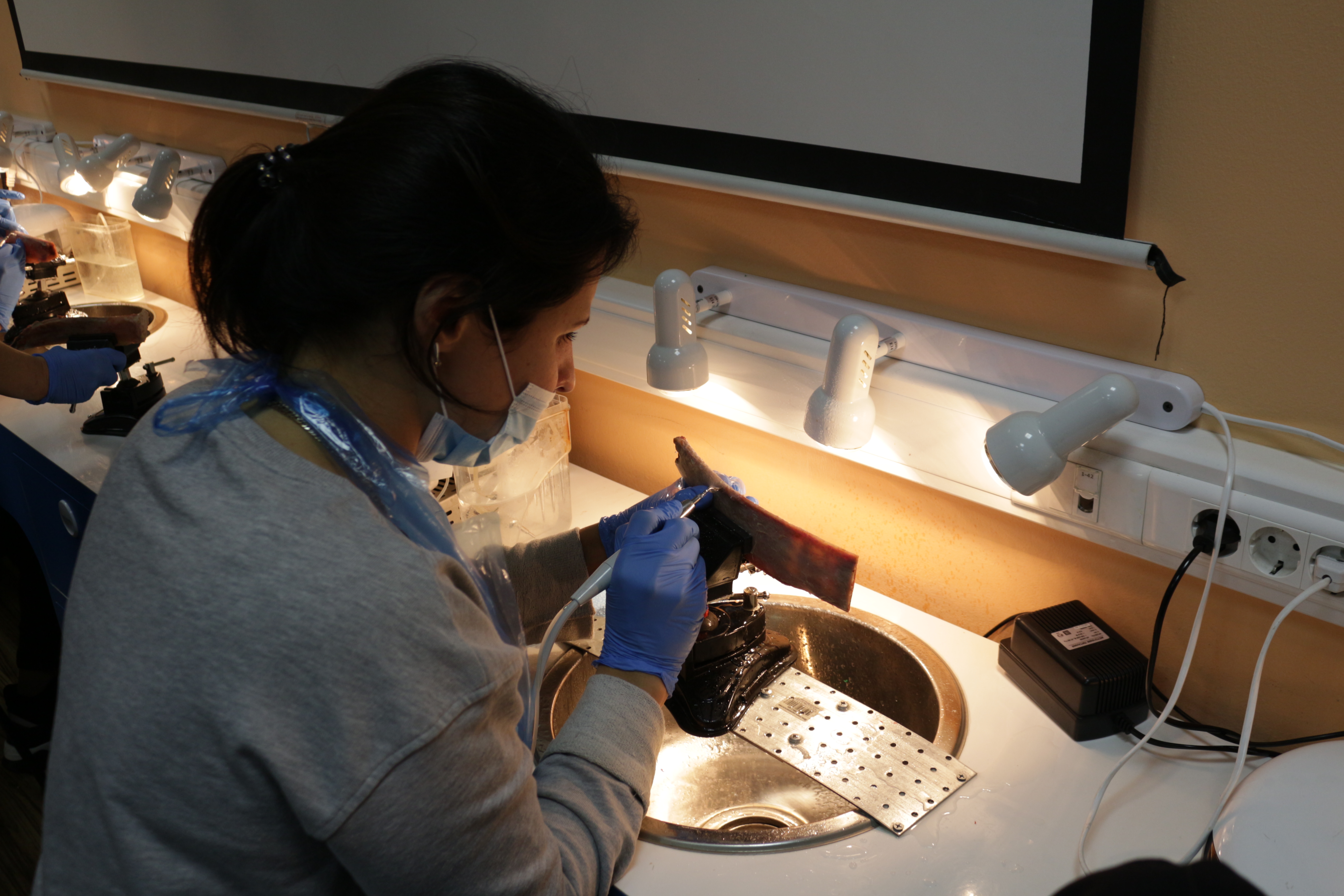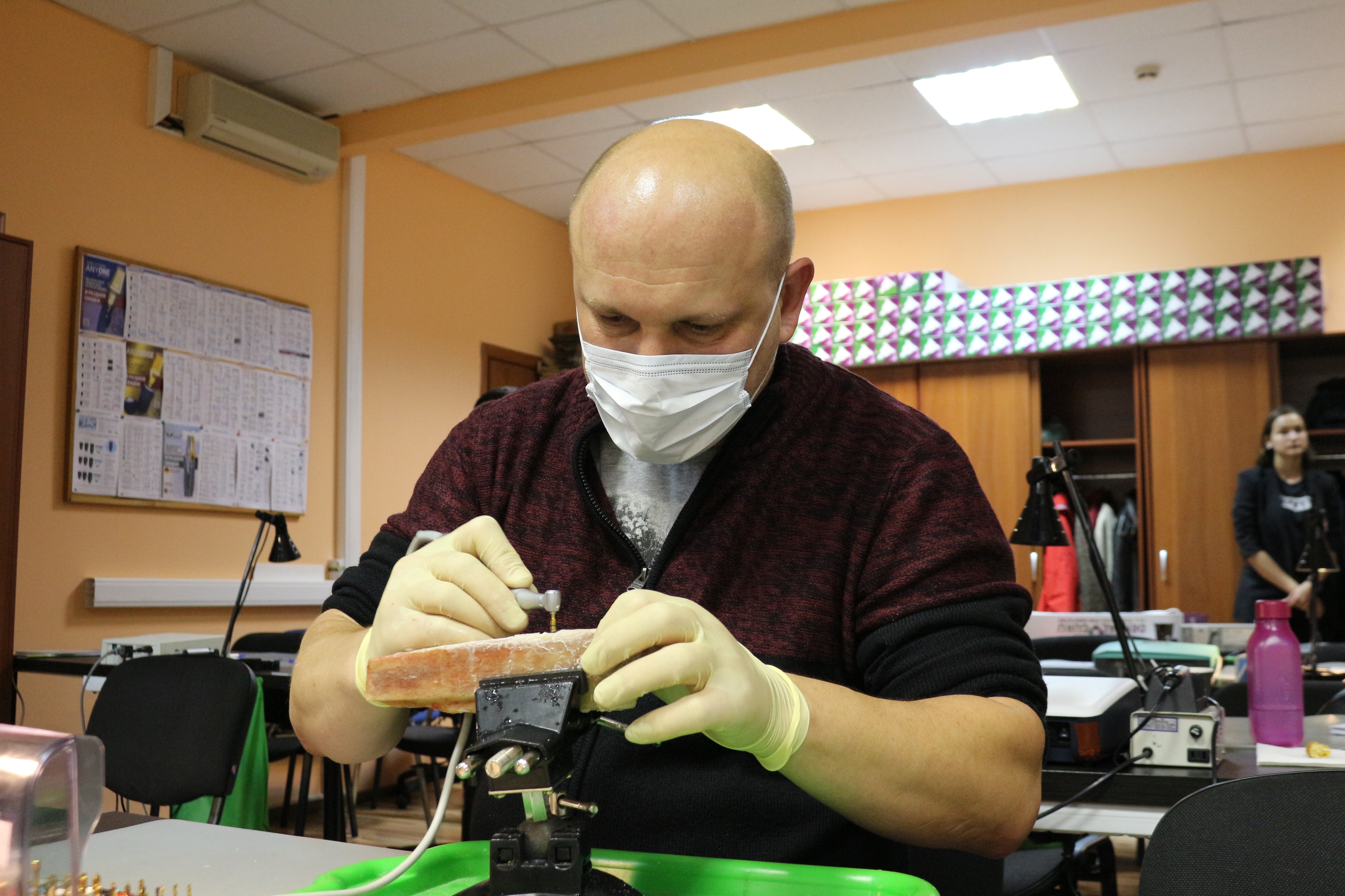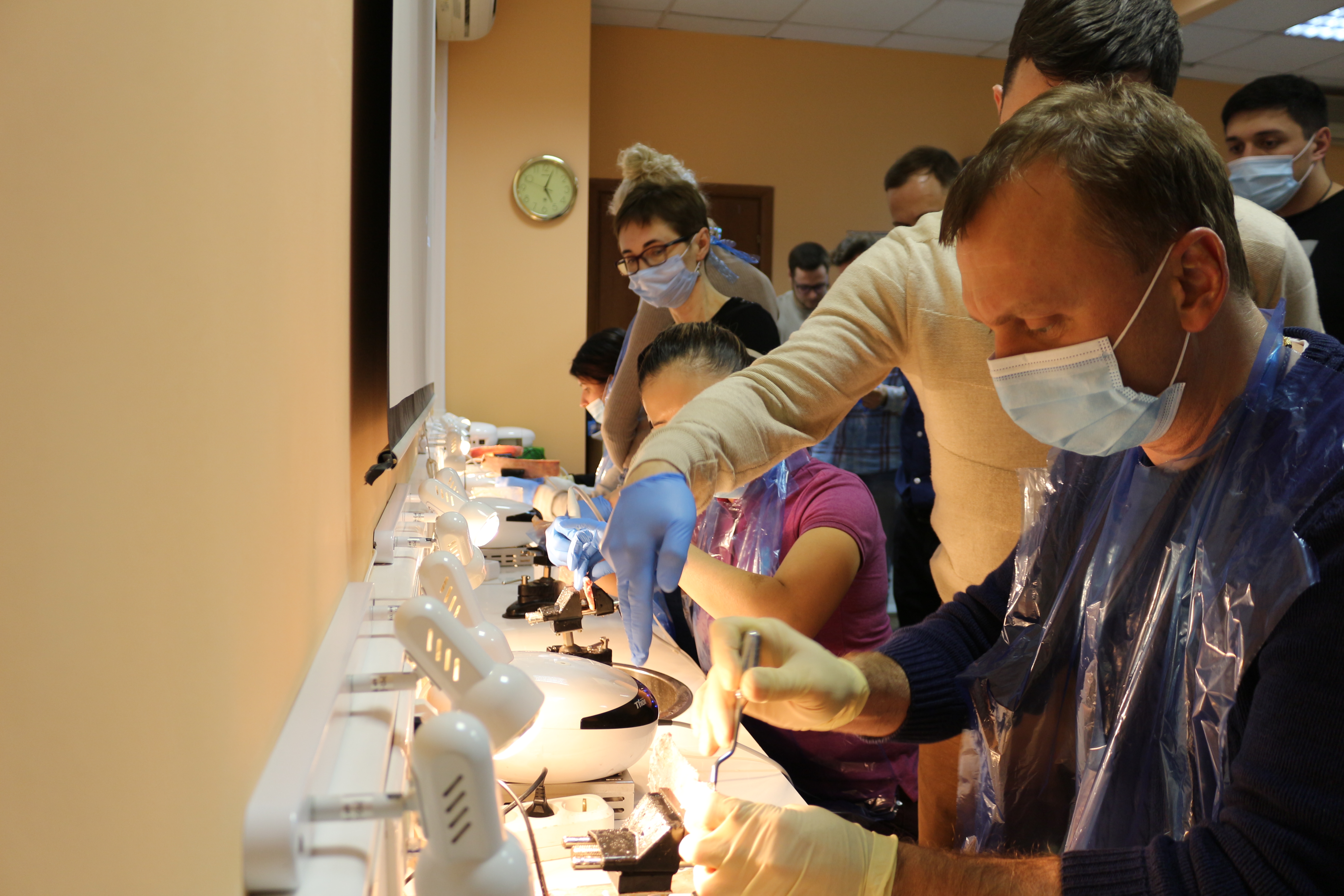 Для практических занятий использовались говяжьи ребра, куриные яйца, фантомы верхней челюсти и уникальные модели гайморовой пазухи.