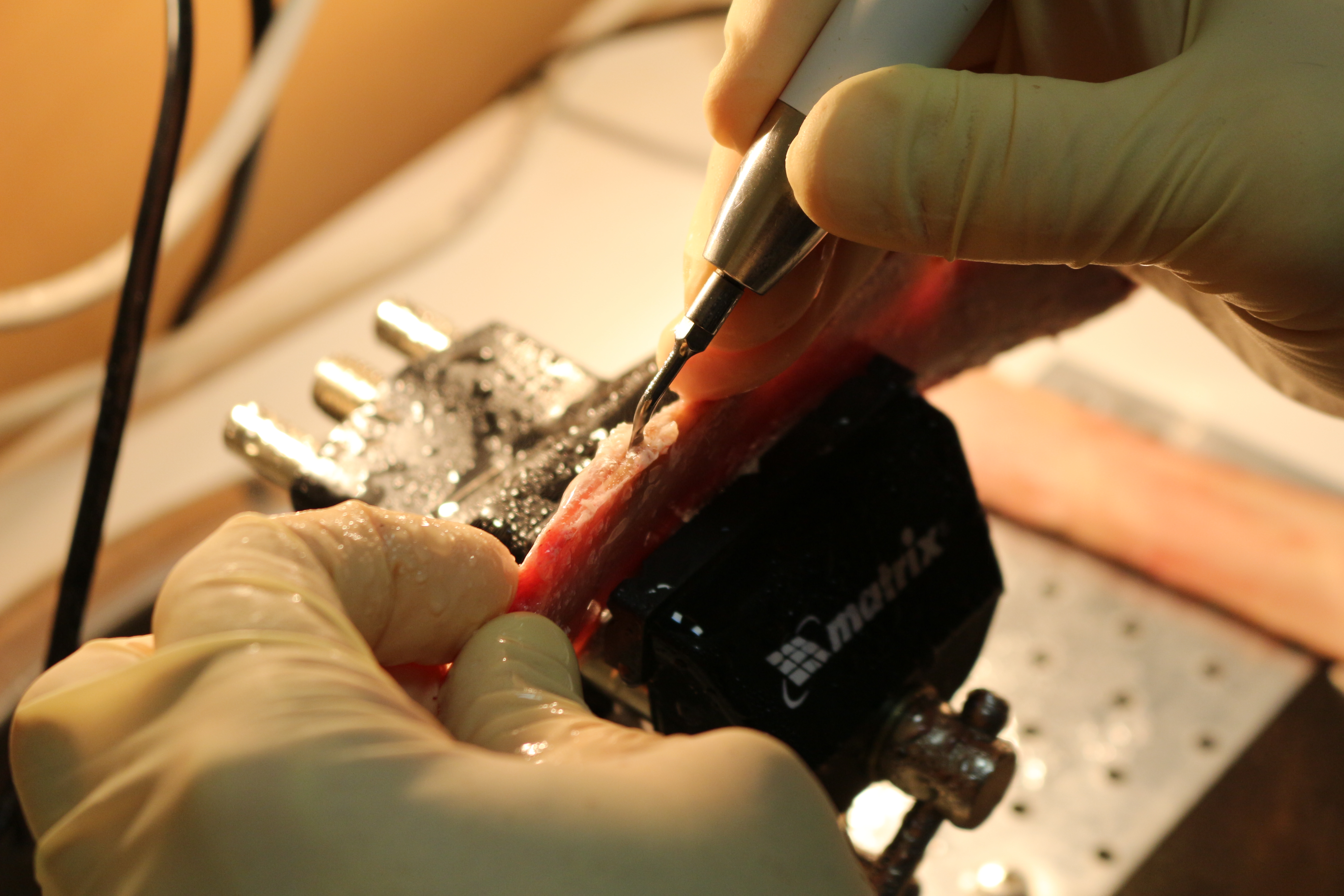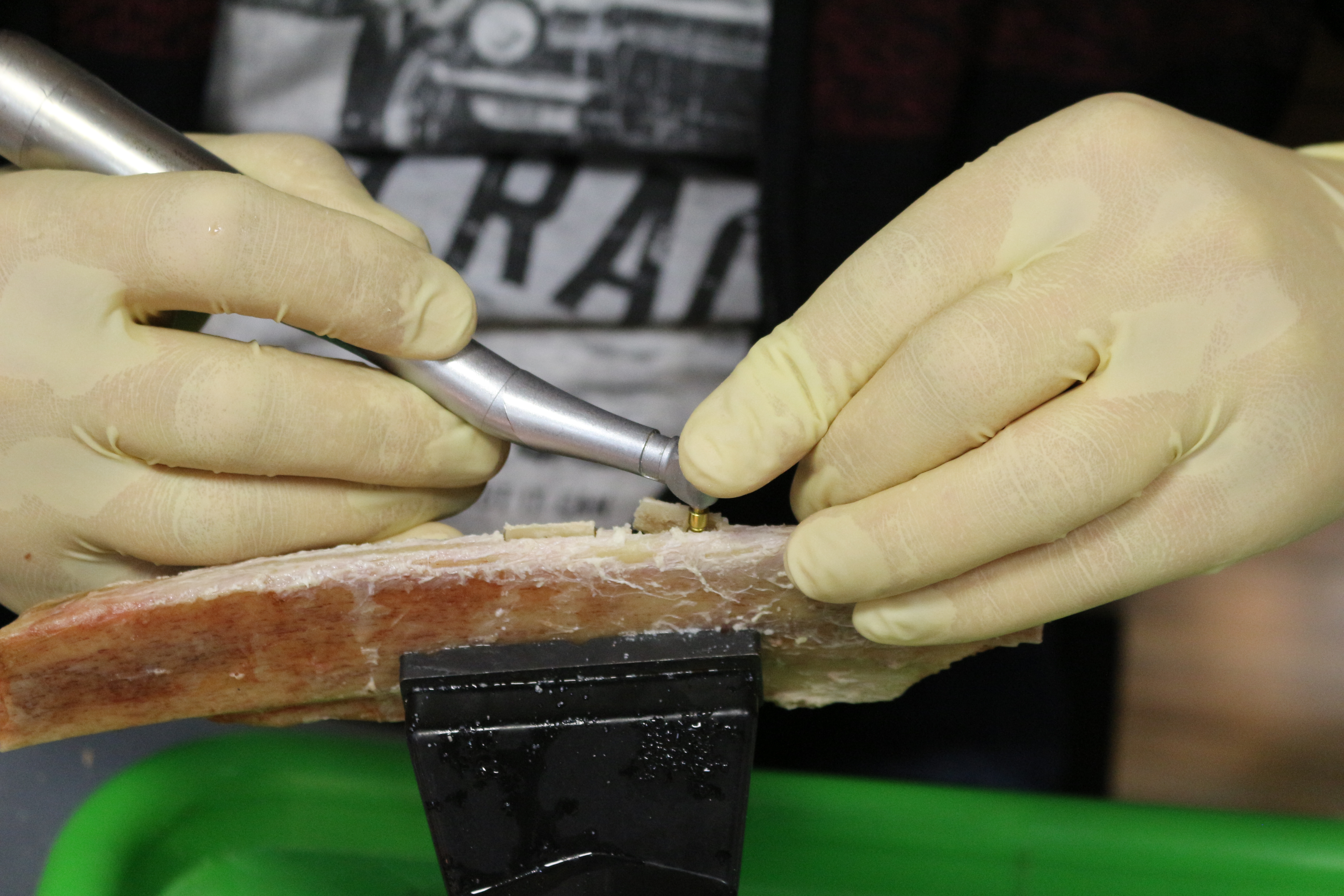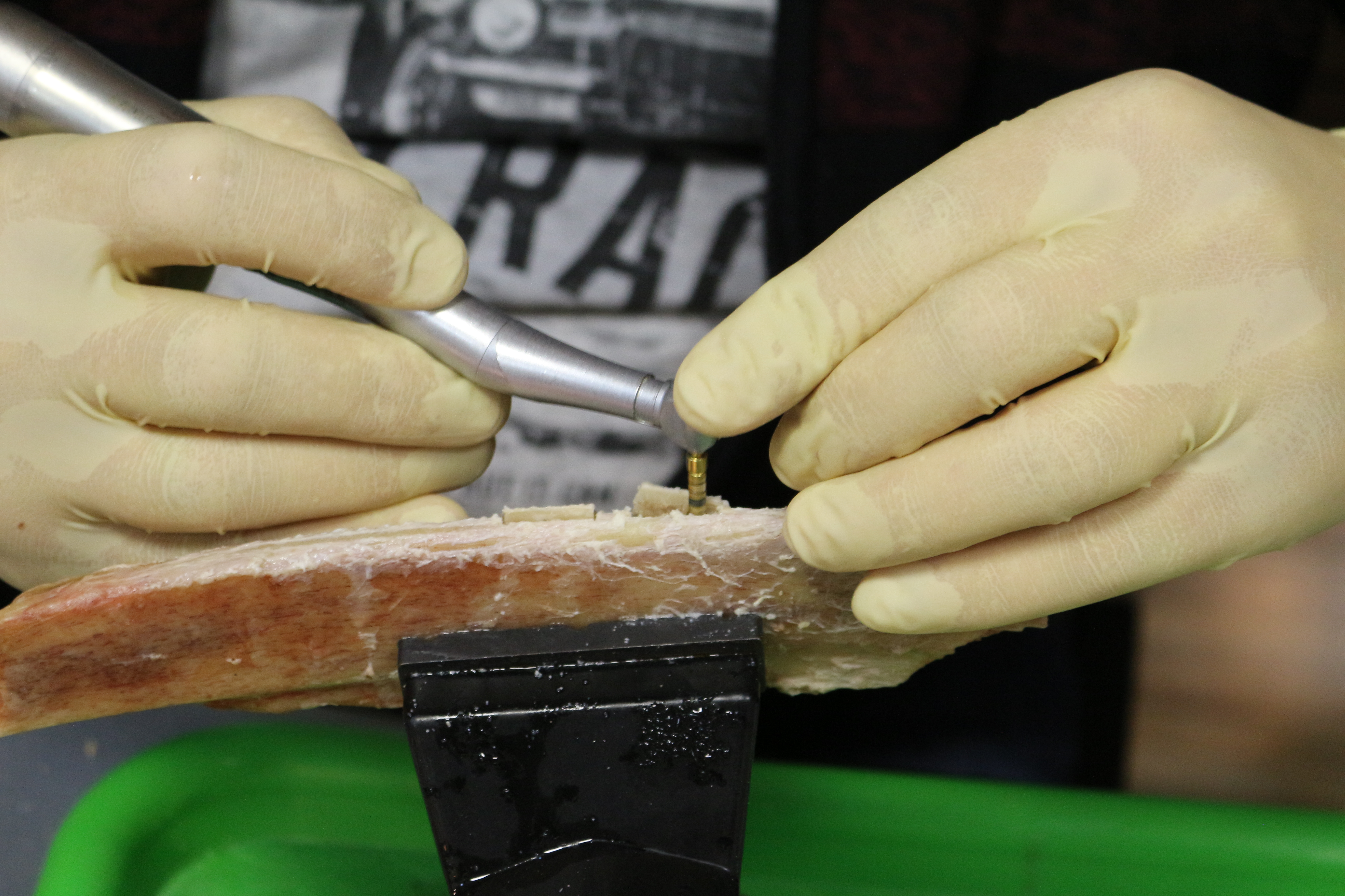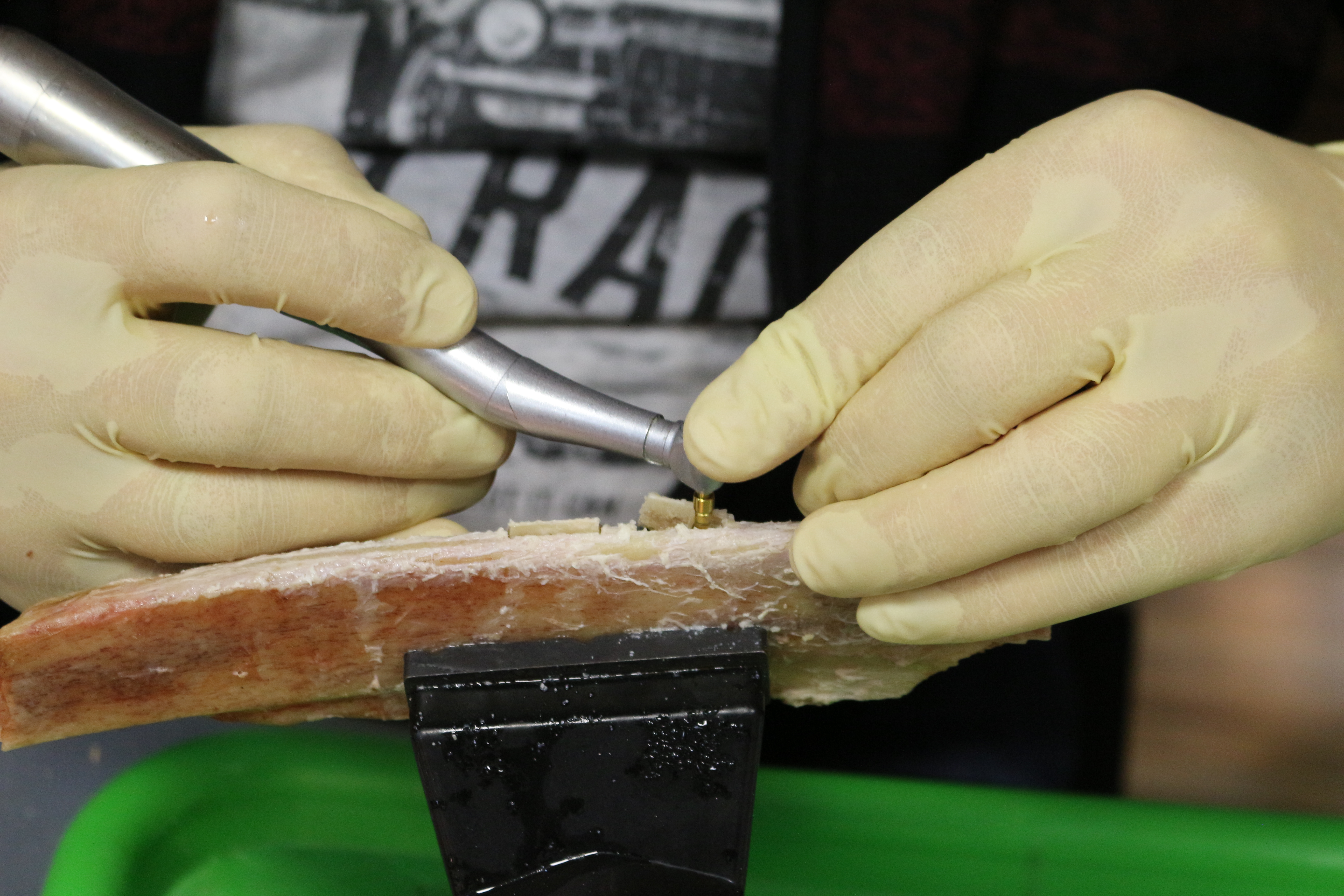- Сравнение традиционной методики расщепления гребня и революционной методики Anyridge (на говяжьем ребре с помощью пьезохирургического инструмента);