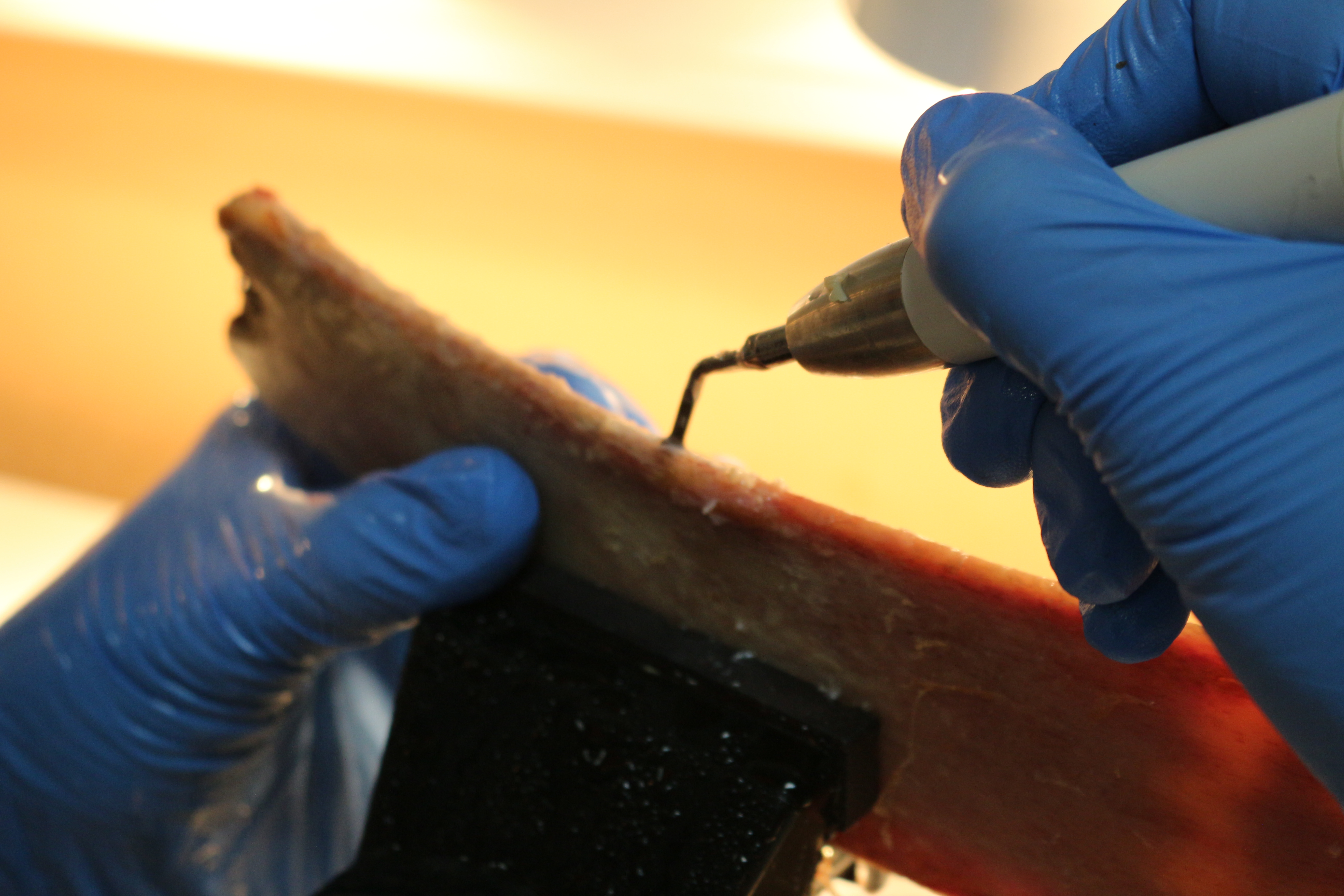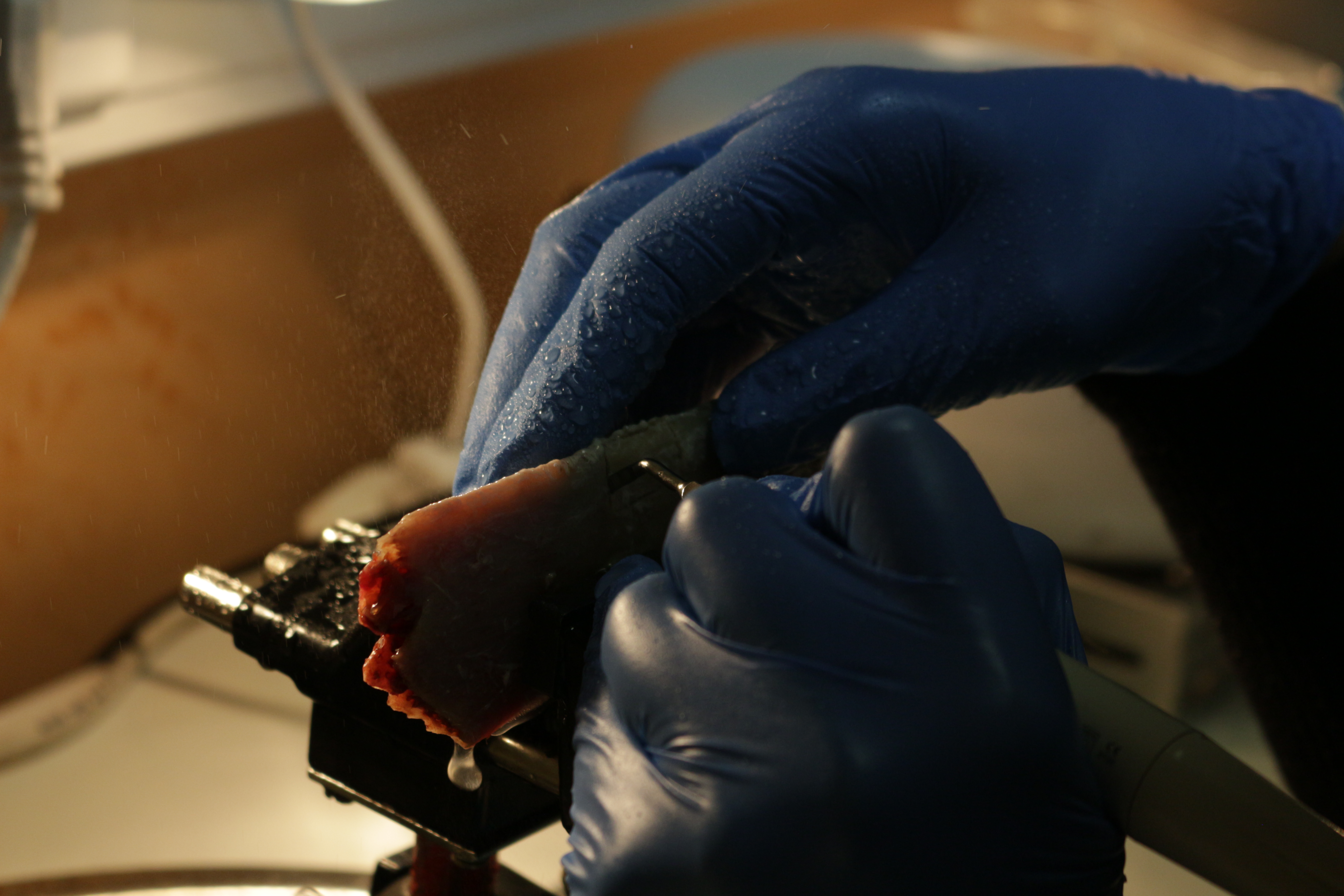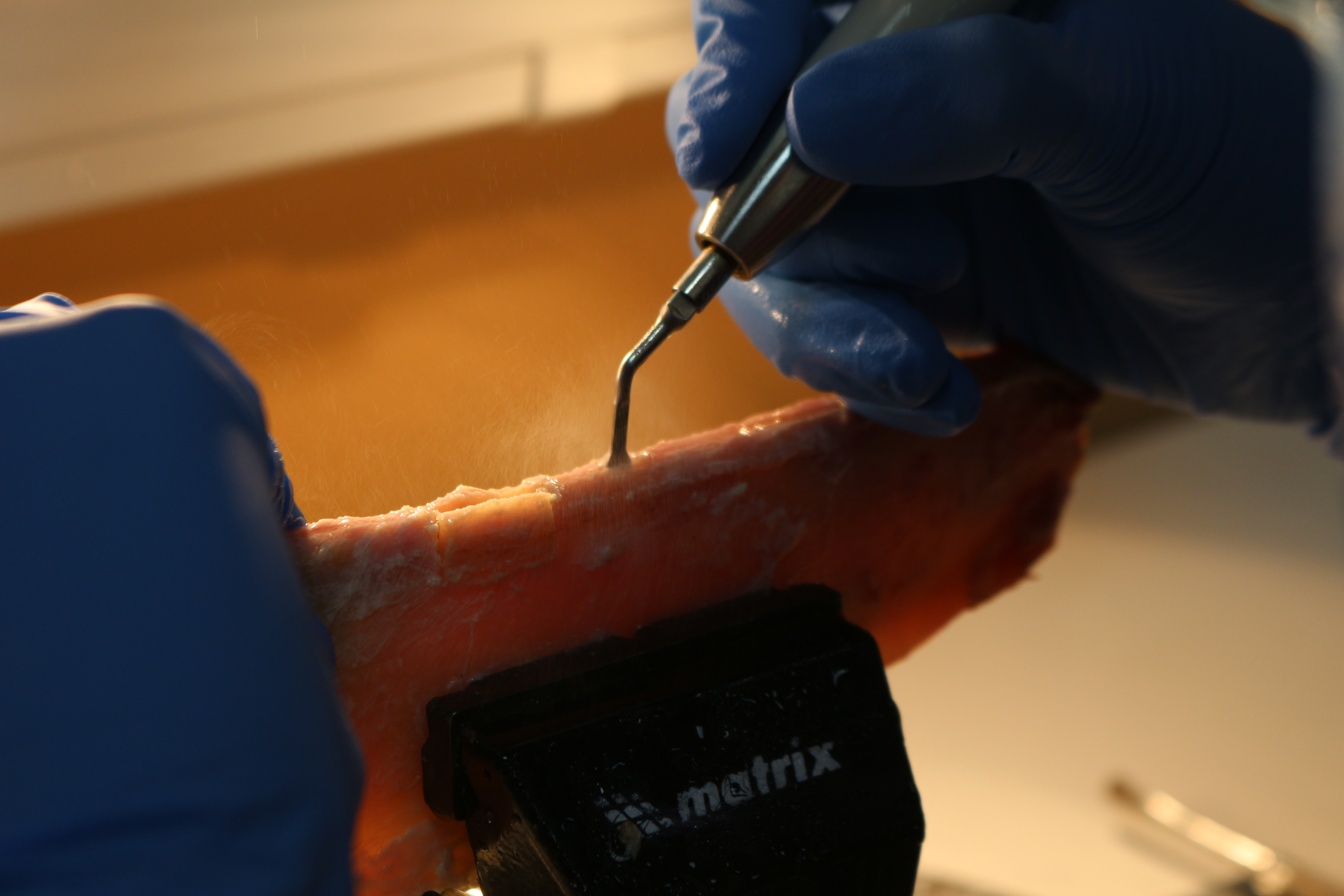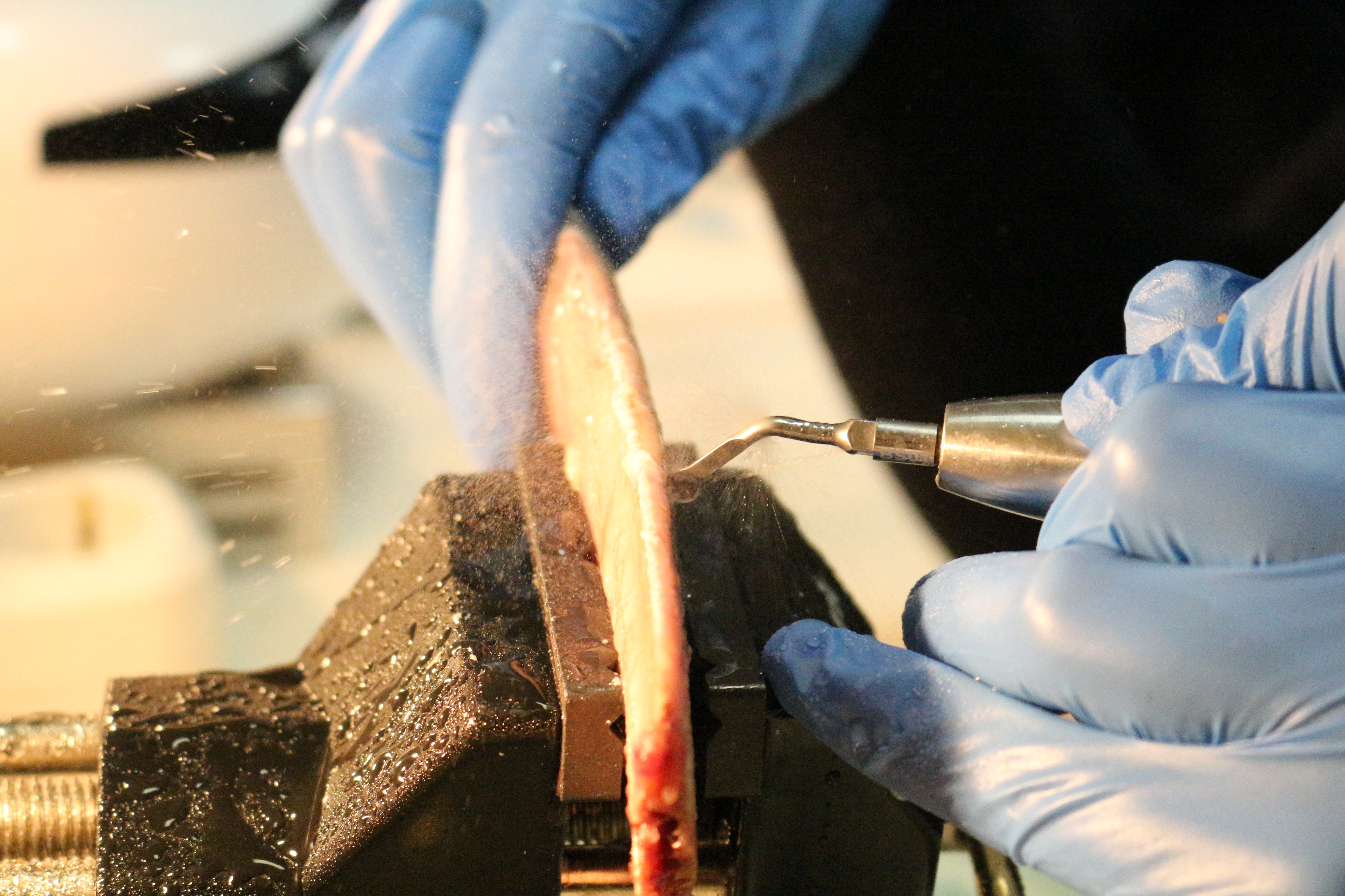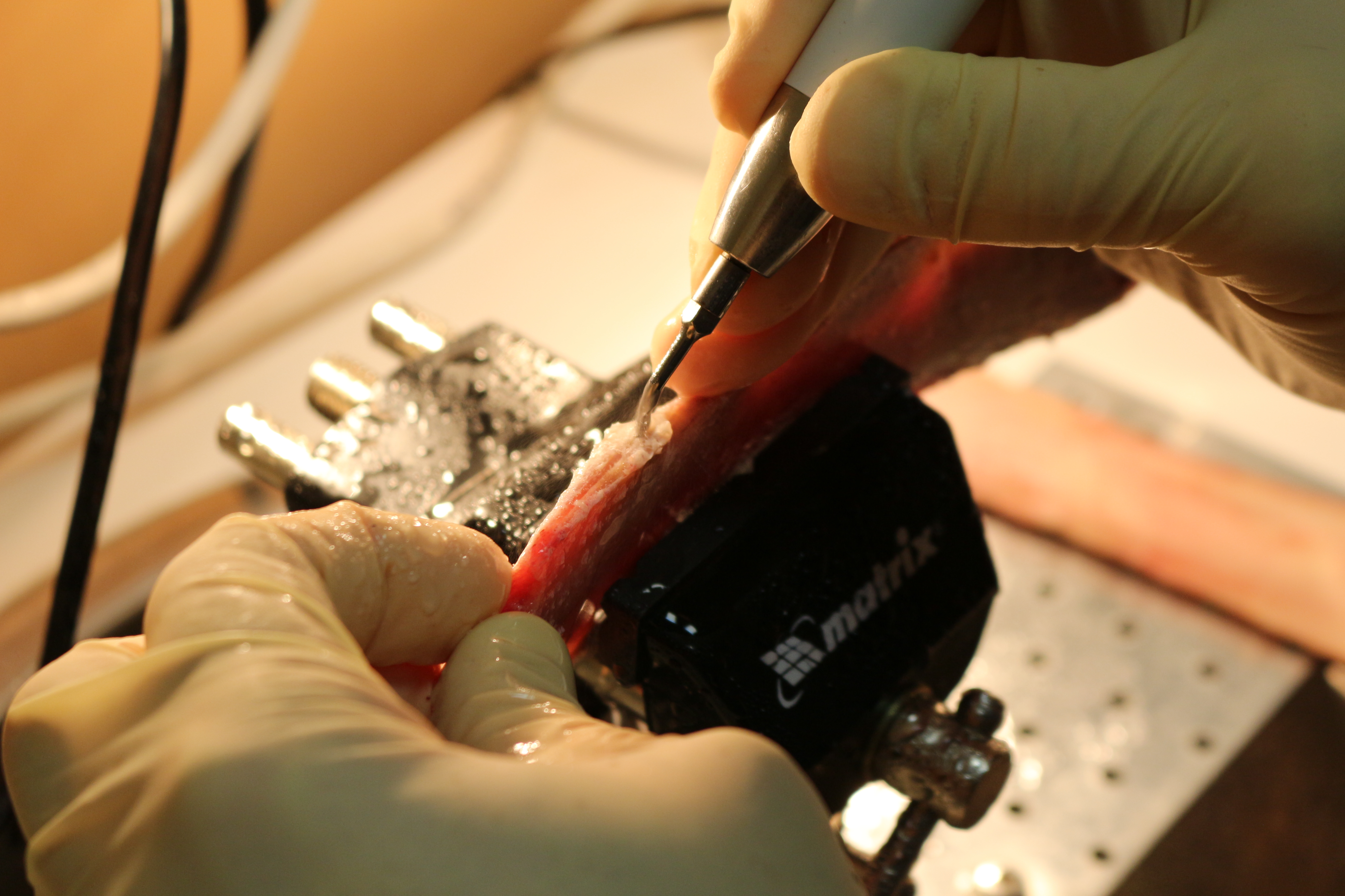 - Сравнение традиционной методики расщепления гребня и революционной методики Anyridge (на говяжьем ребре с помощью пьезохирургического инструмента);