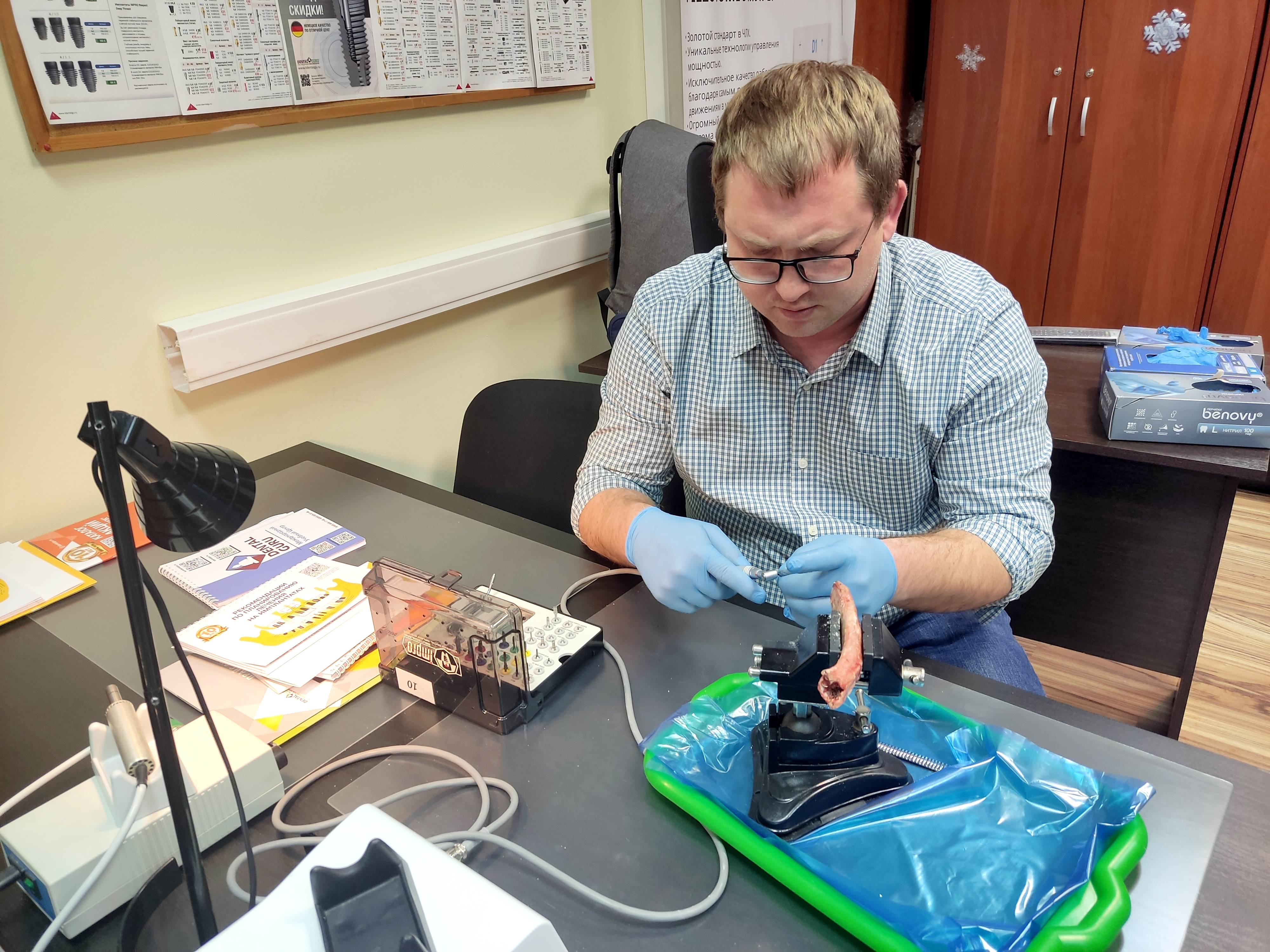 Курс состоит на 80% из практических занятий и включает в себя хирургический и ортопедический протокол. Примечательно, что курс посещают как хирурги, так и ортопеды, ведь успех имплантации – это командная работа. Одна из отличительных особенностей курса – активное участие наших экспертов в каждом практическом занятии. Наставничество и передача практического опыта из рук в руки – отличный способ освоить новые знания на практике максимально быстро.