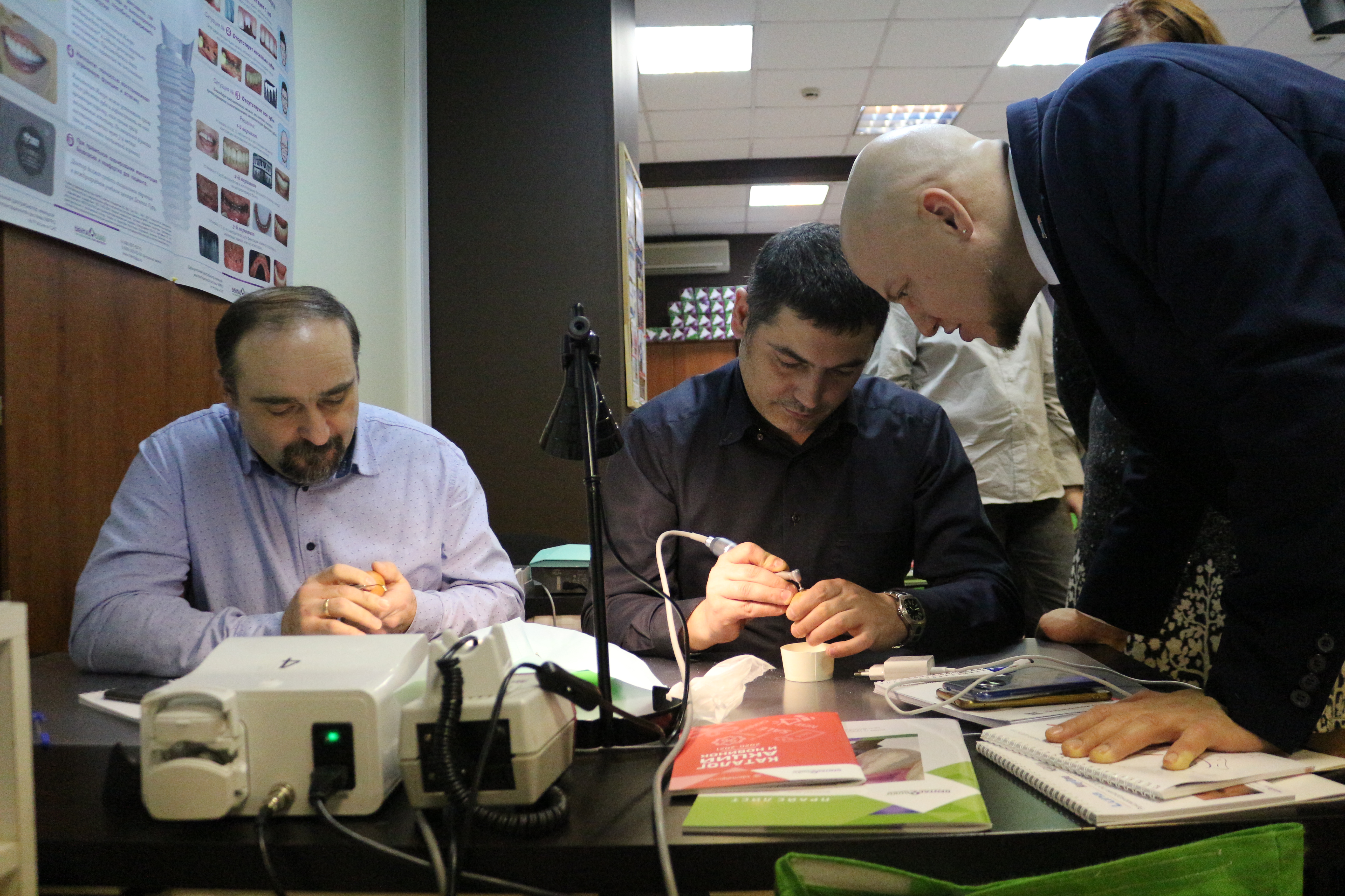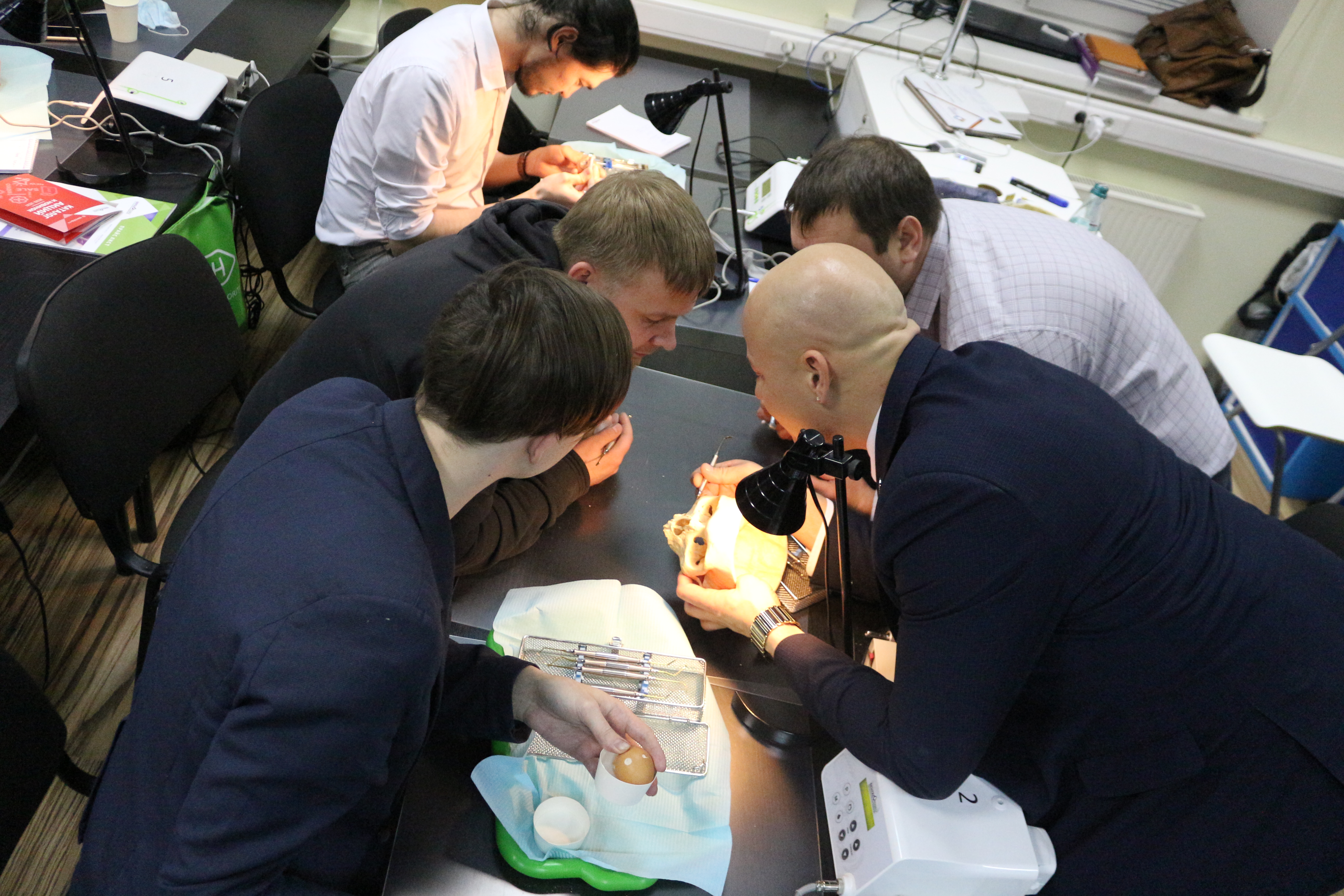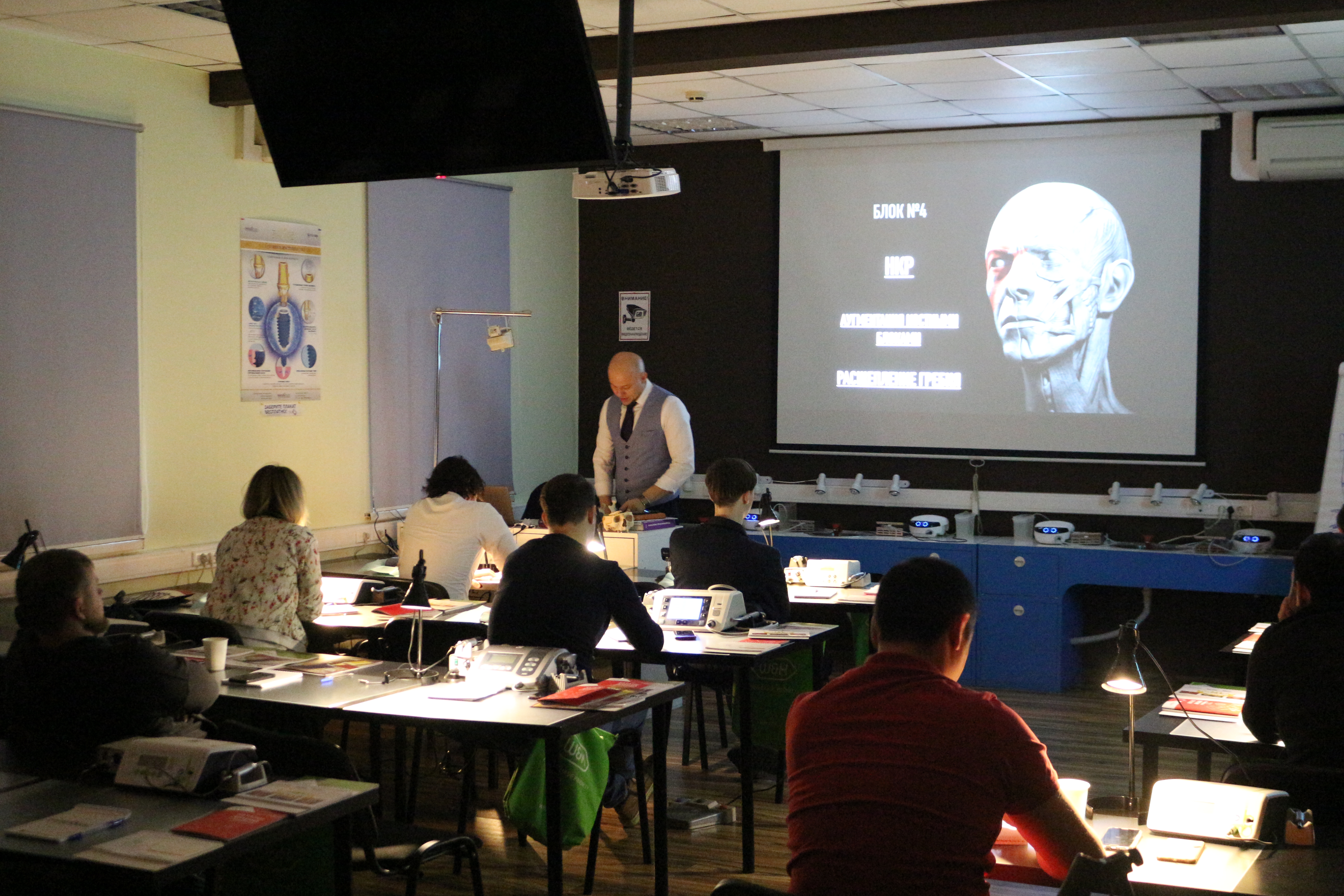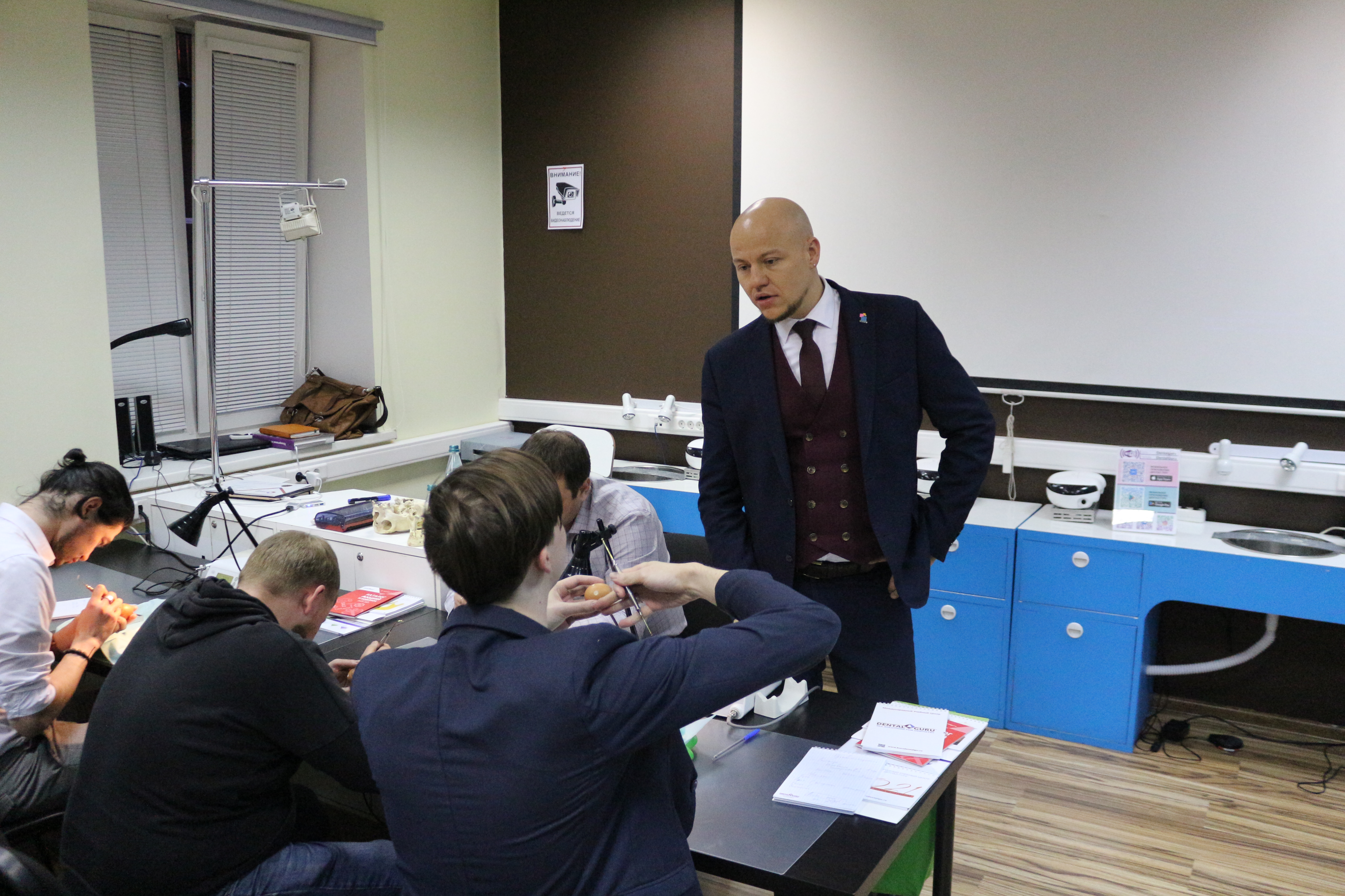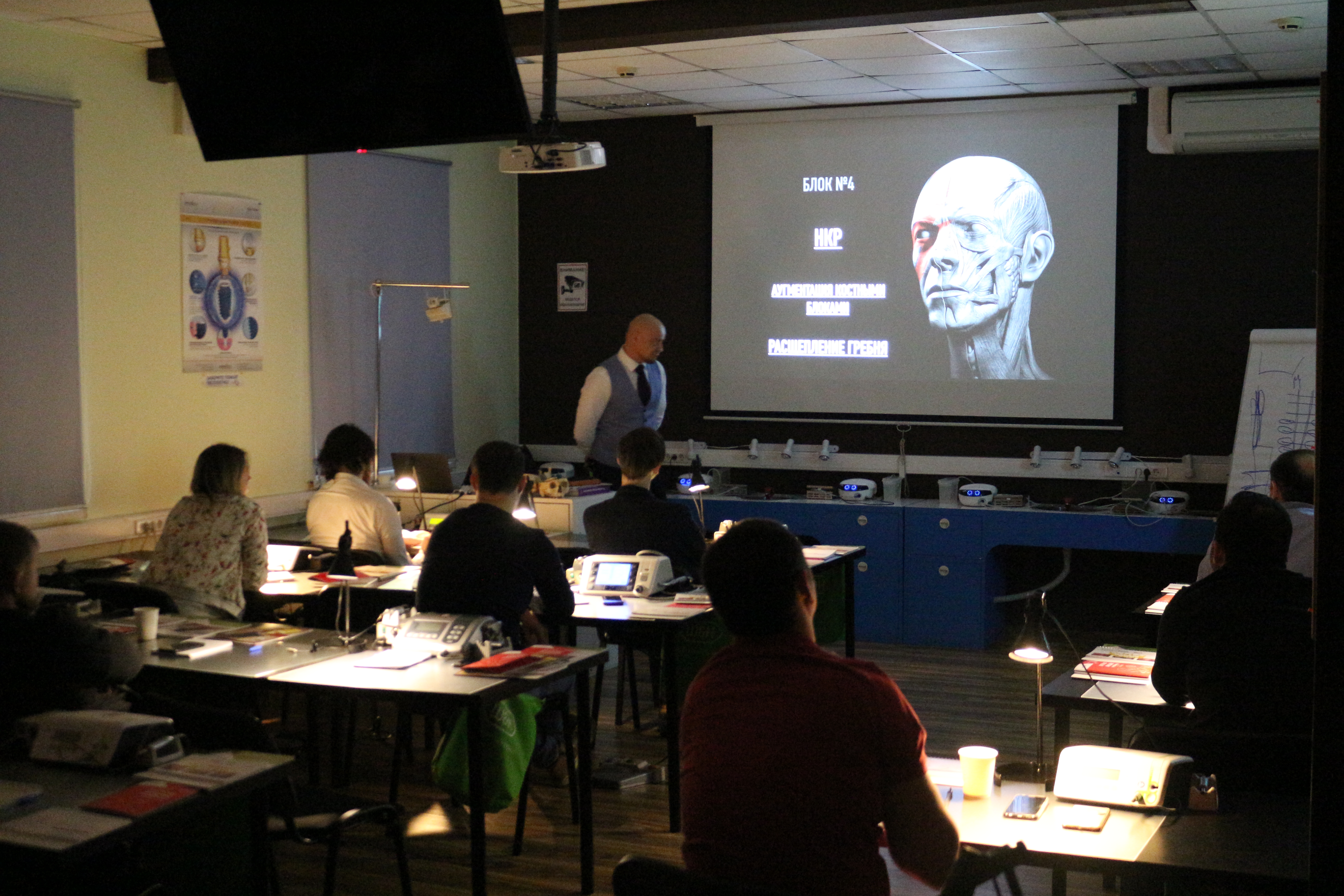 В ходе практических занятий курсанты под руководством эксперта научились проводить расщепление гребня по классической методике, формировать латеральное окно и проводить открытый и закрытый синус-лифтинг. Практические занятия проводились с использованием пластиковых моделей челюсти, говяжьих ребер и куриных яиц.