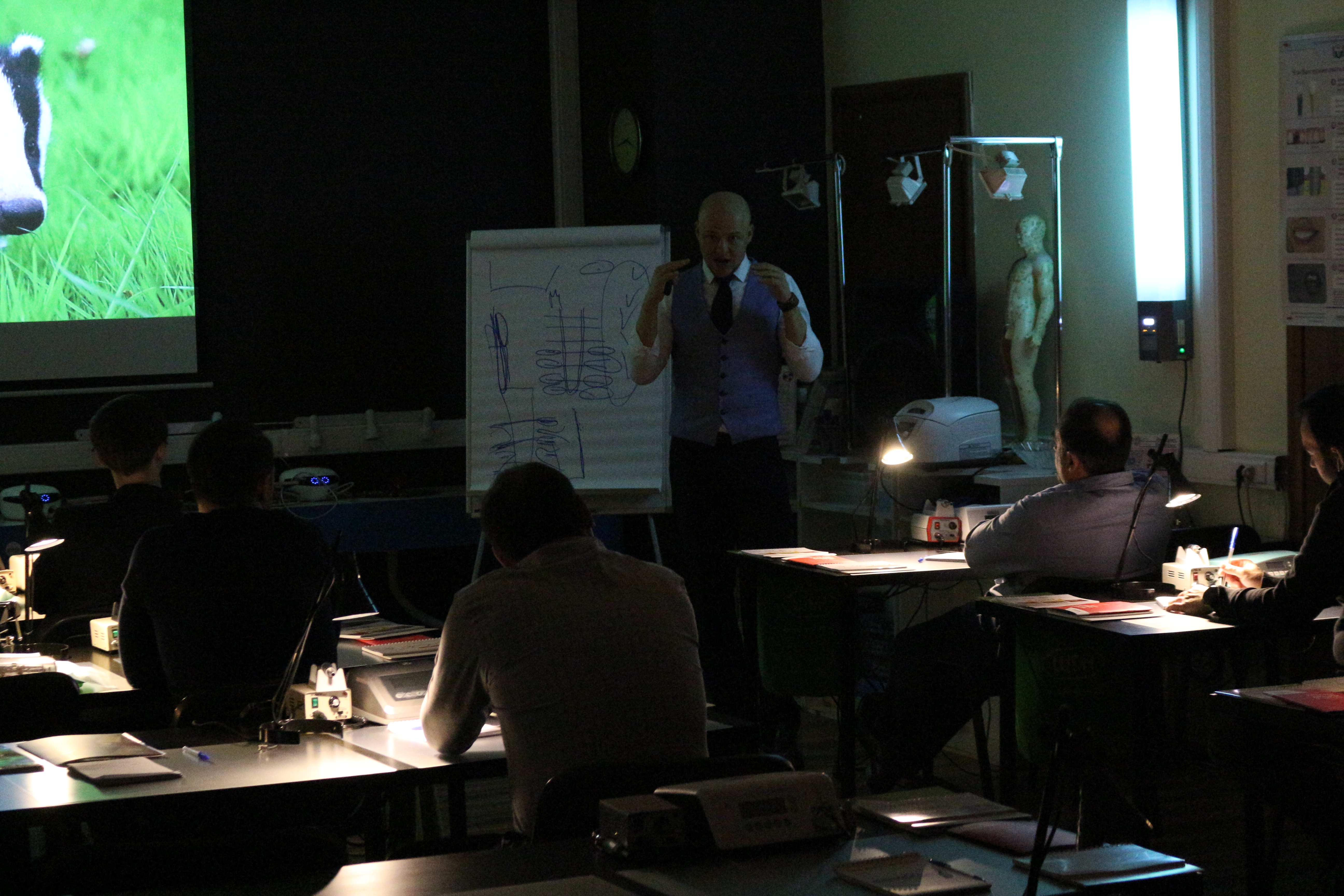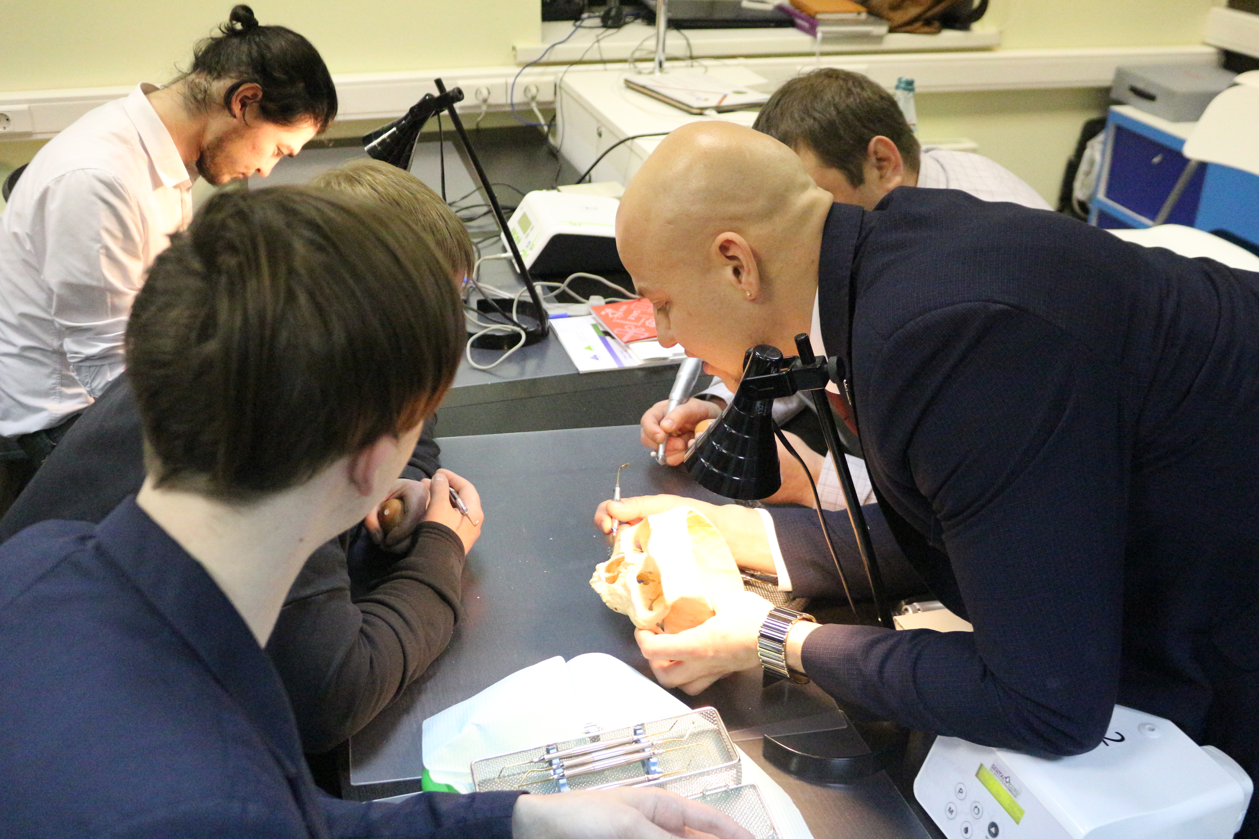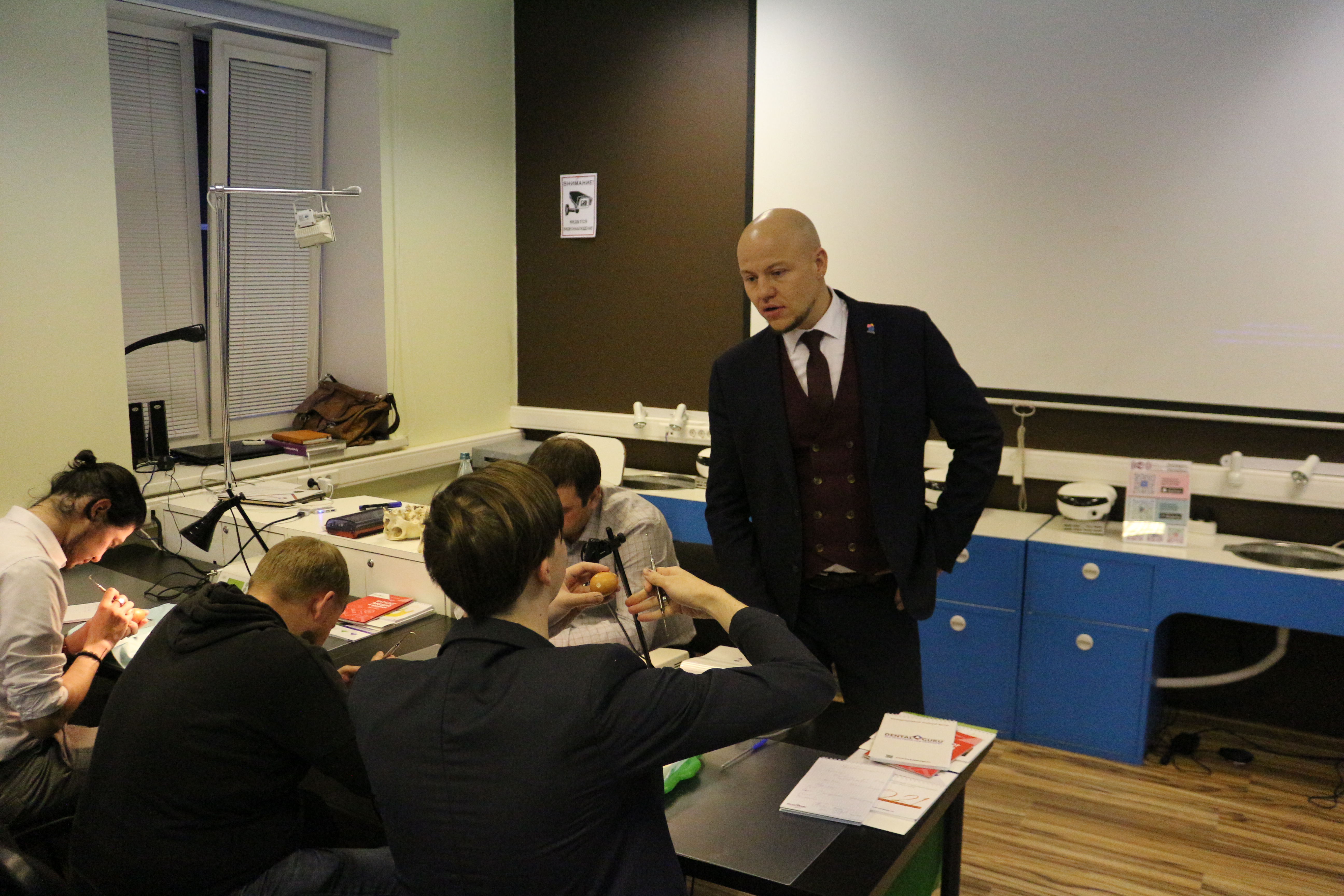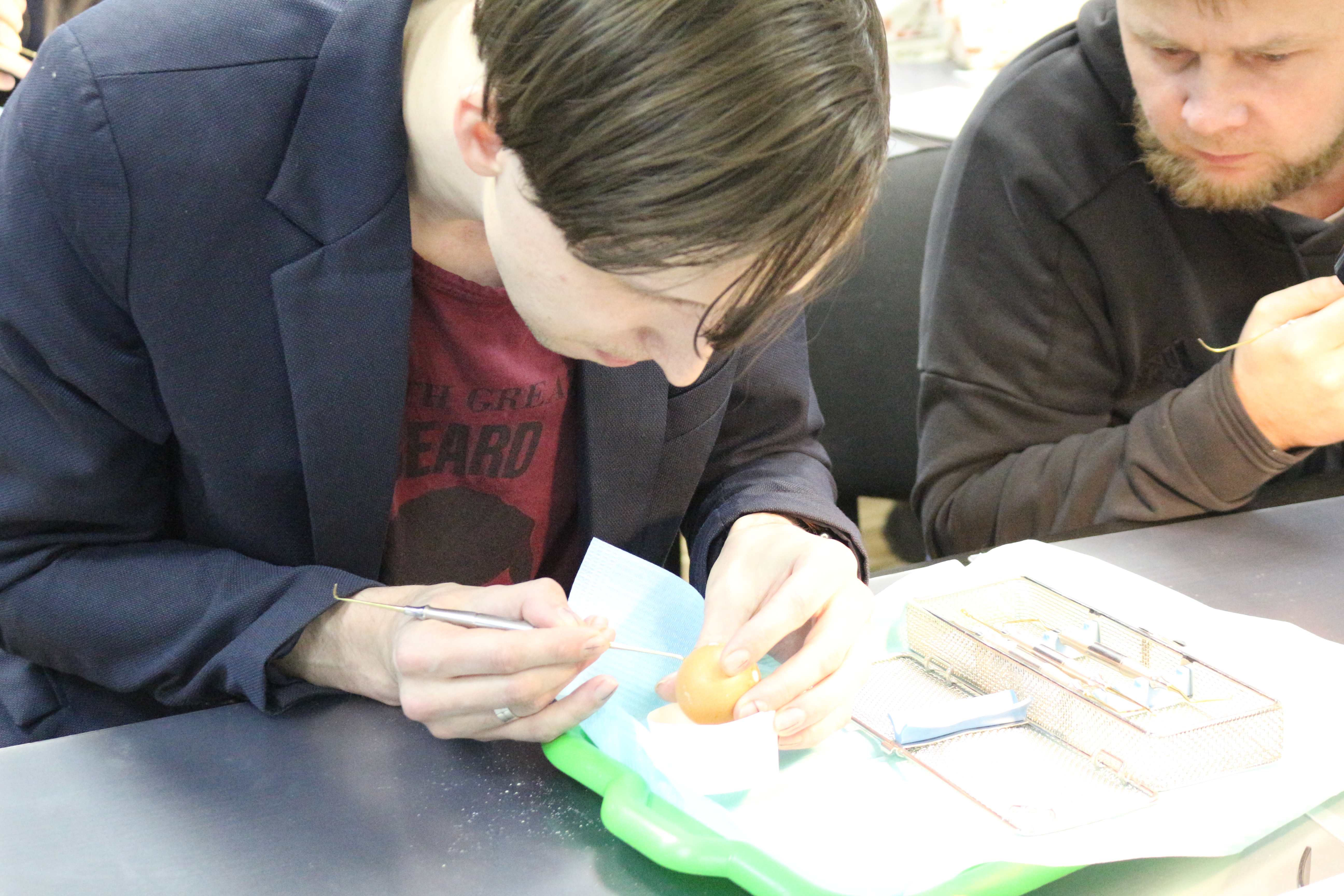 В ходе практических занятий курсанты под руководством эксперта научились проводить расщепление гребня по классической методике, формировать латеральное окно и проводить открытый и закрытый синус-лифтинг. Практические занятия проводились с использованием пластиковых моделей челюсти, говяжьих ребер и куриных яиц.