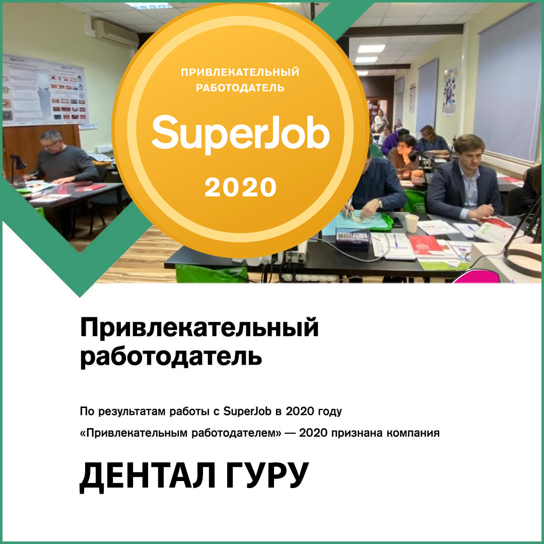 По итогам исследования, проведенного порталом Superjob.ru среди компаний-работодателей, Группа Компаний Дентал Гуру получила статус «Привлекательный работодатель — 2020». Дентал Гуру заботится не только о своих клиентах, пациентах и партнерах.