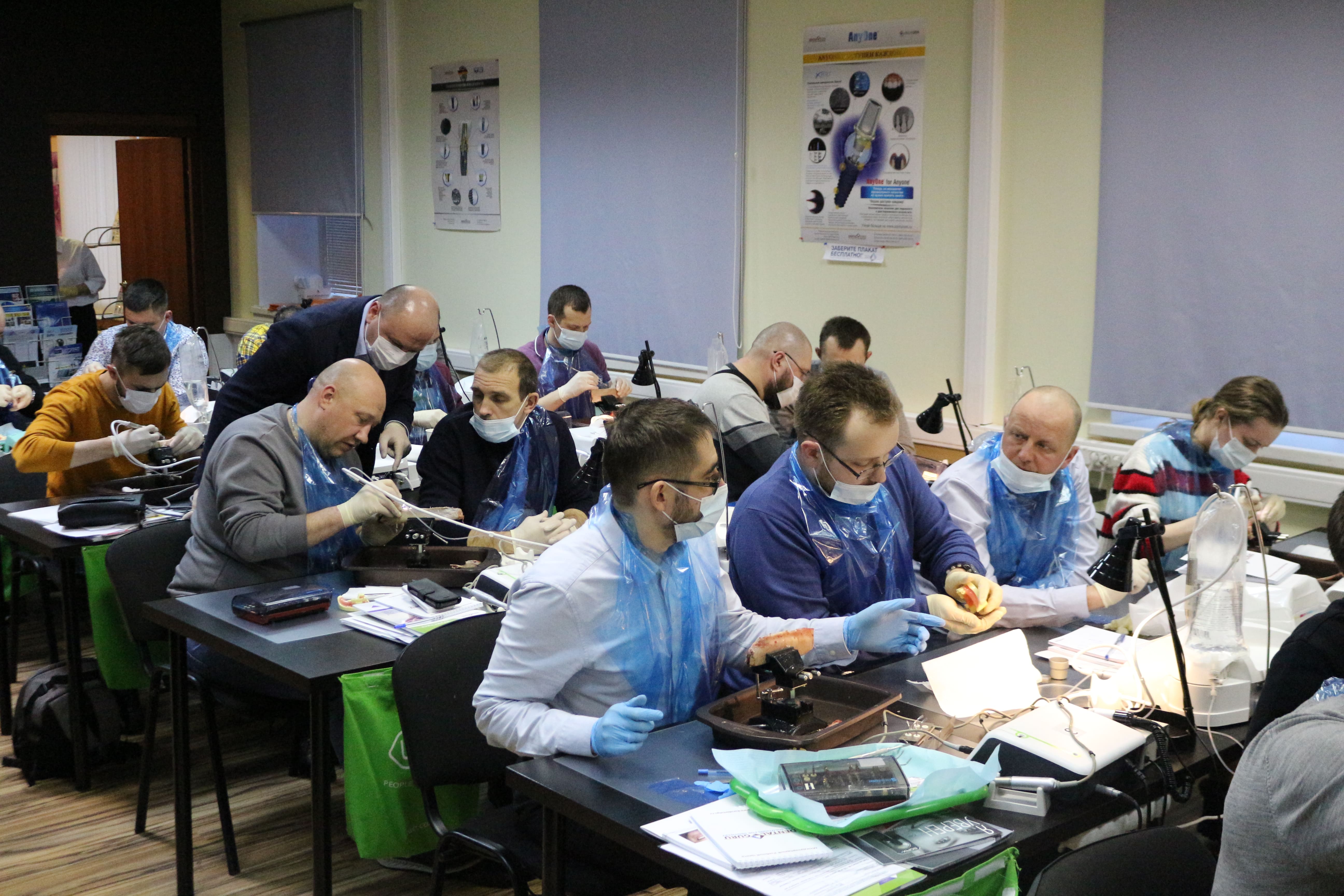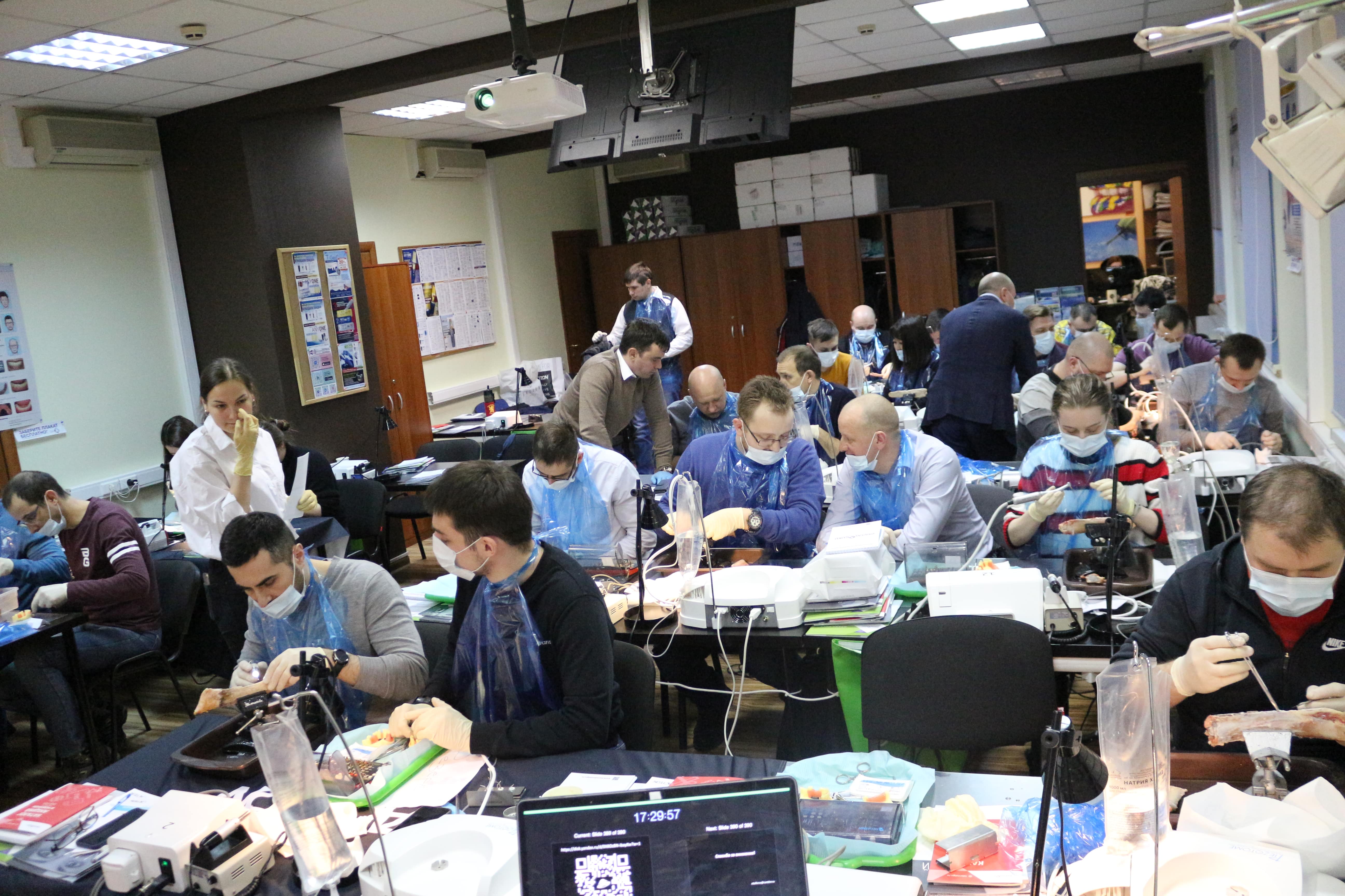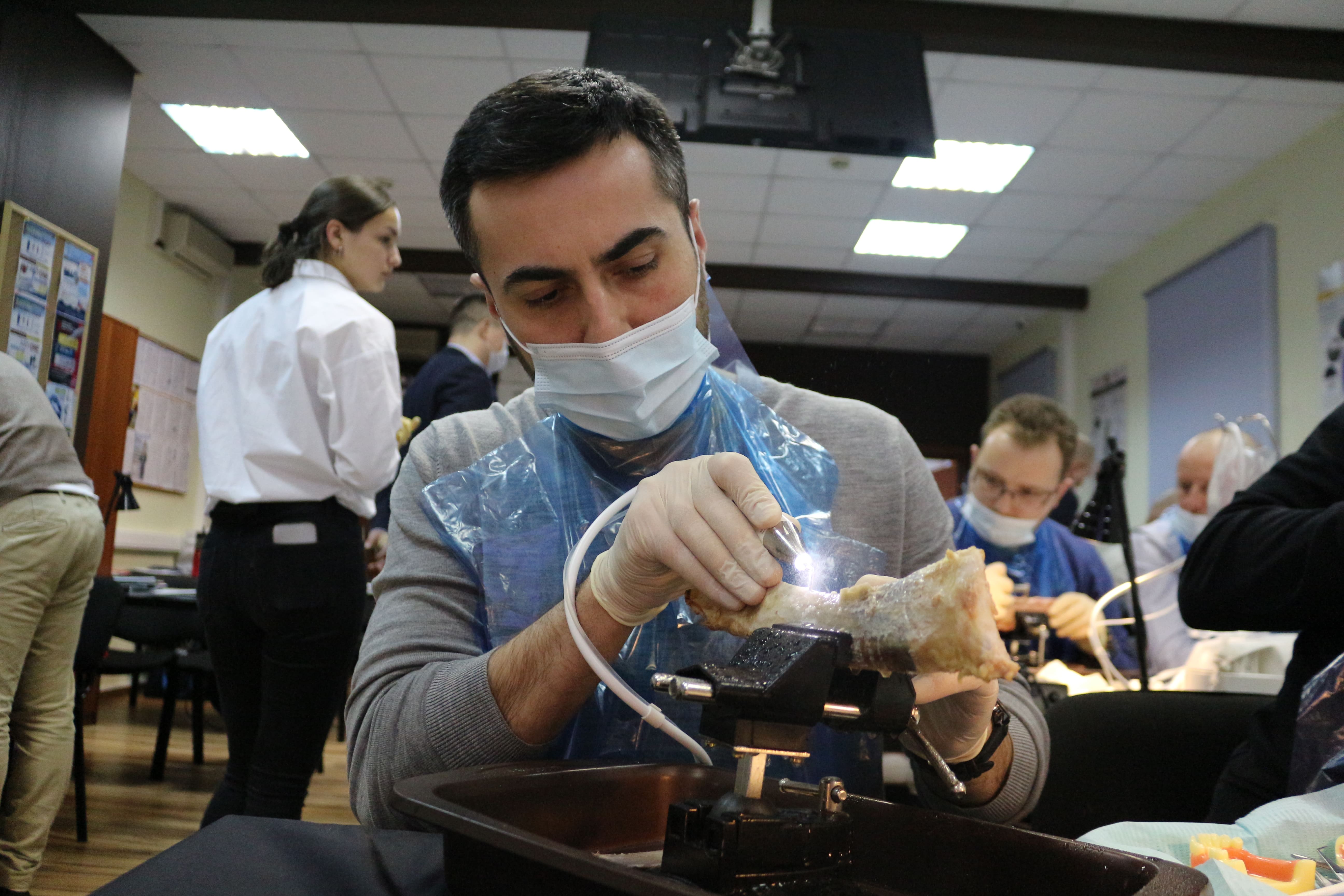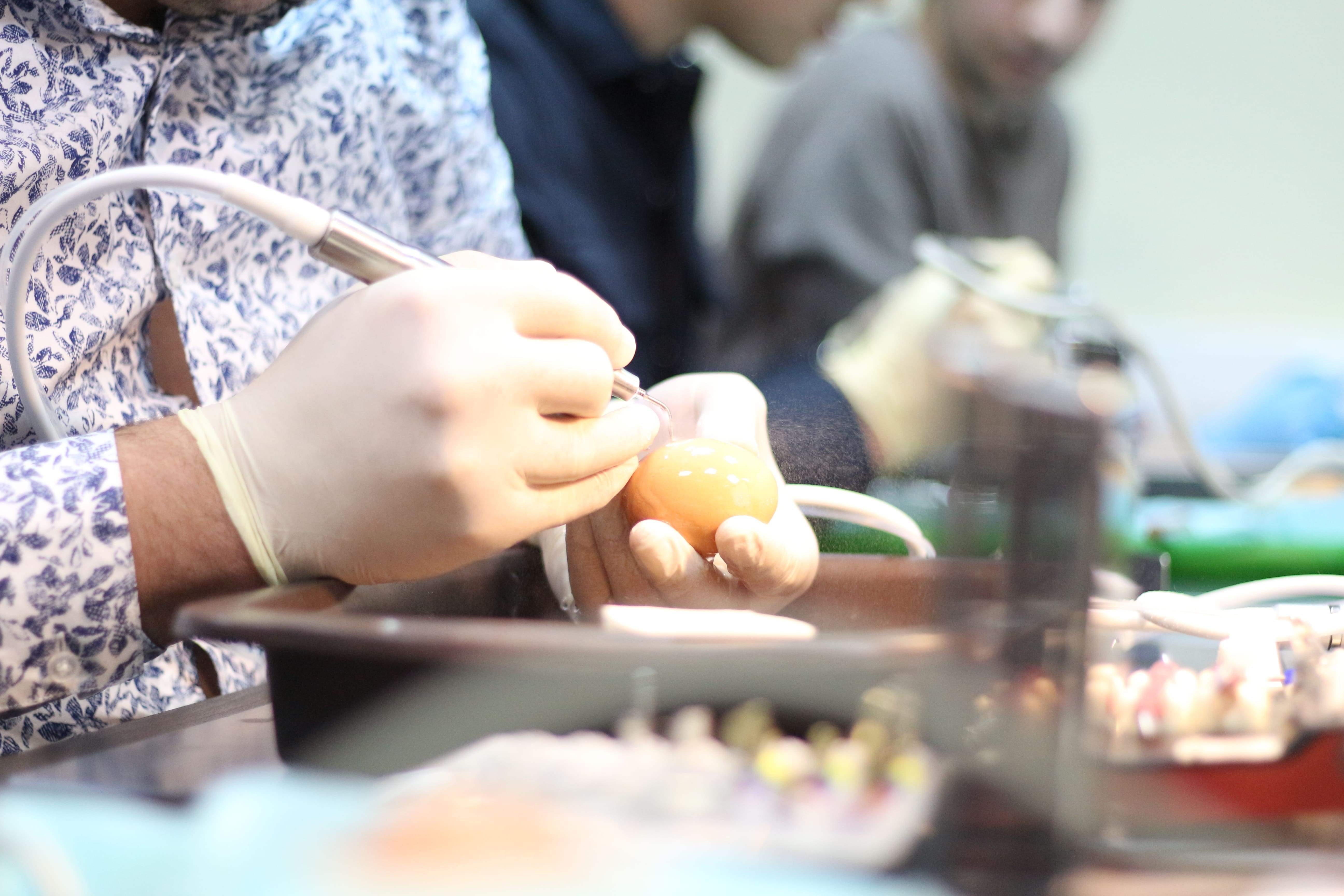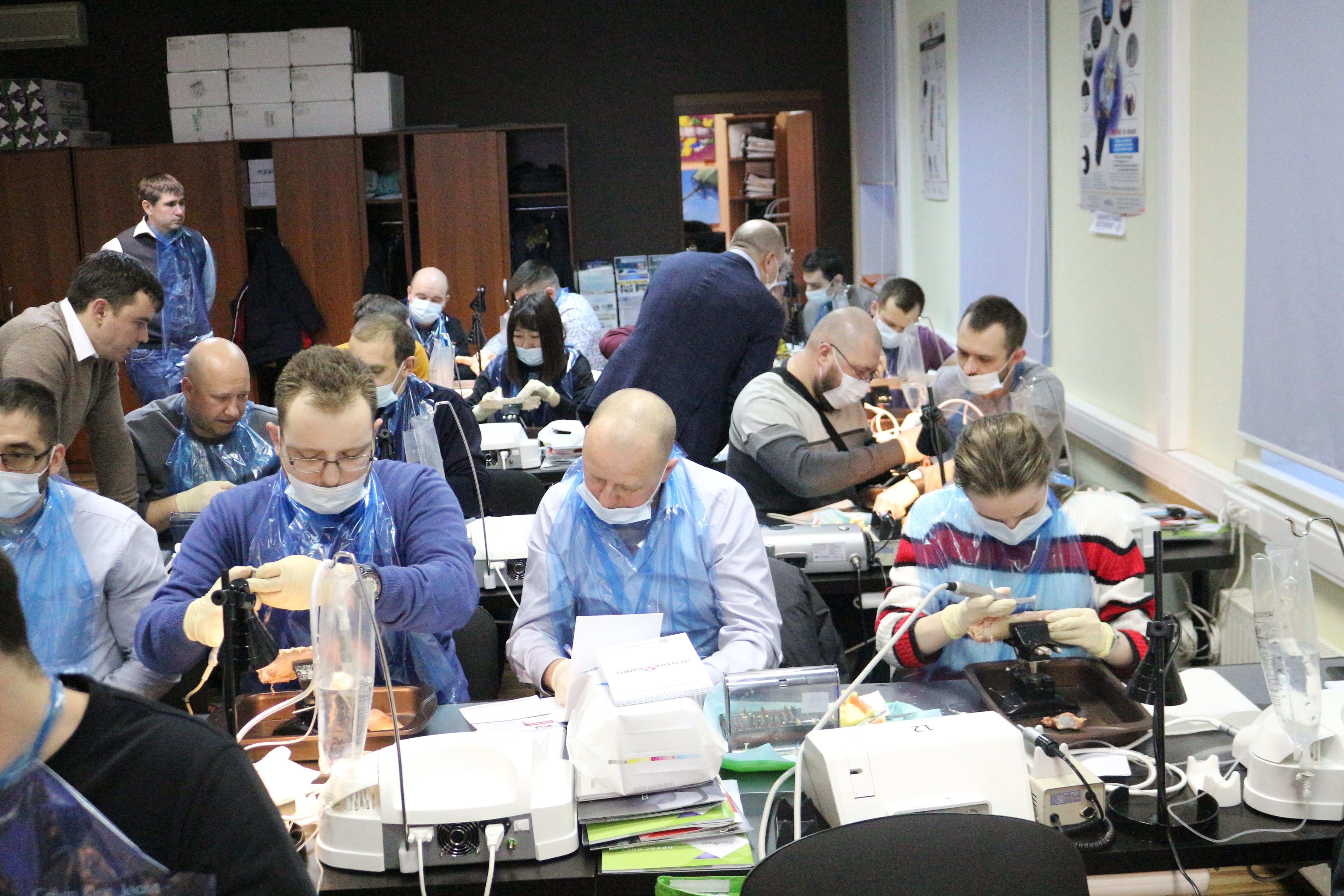 На практическом занятии доктора учились проводить открытый синус-лифтинг с помощью универсального набора Impro и набора Megagen на фантоме верхней челюсти и на говяжьем ребре, отрабатывали трансальвеолярный синус-лифтинг с помощью остеотомов и трепанов, проводили закрытый синус-лифтинг с помощью набора для гребневого синуса MICA на фантоме верхней челюсти, отрабатывали методики формирования латерального окна на куриных яйцах и на уникальных моделях гайморовой пазухи.