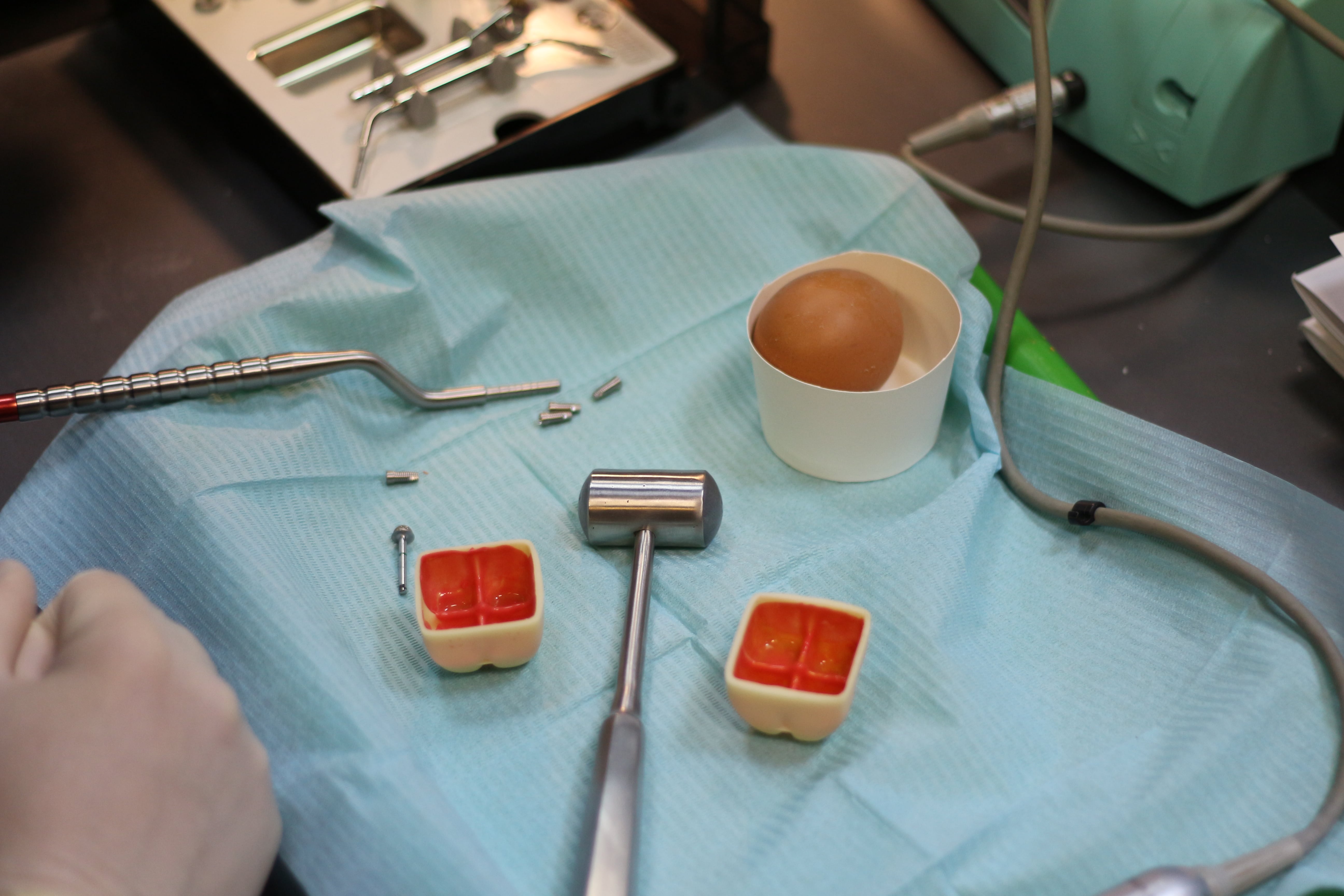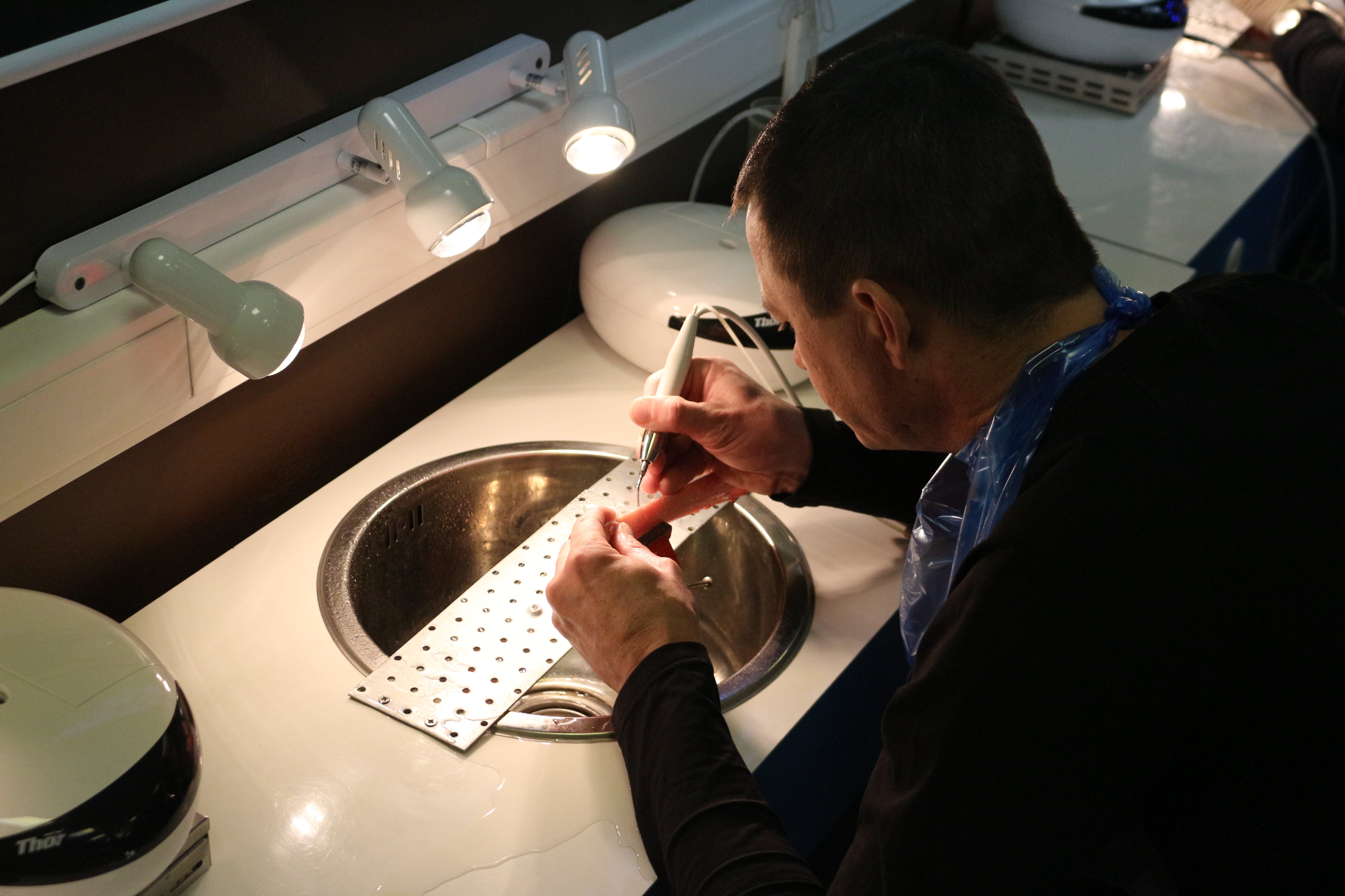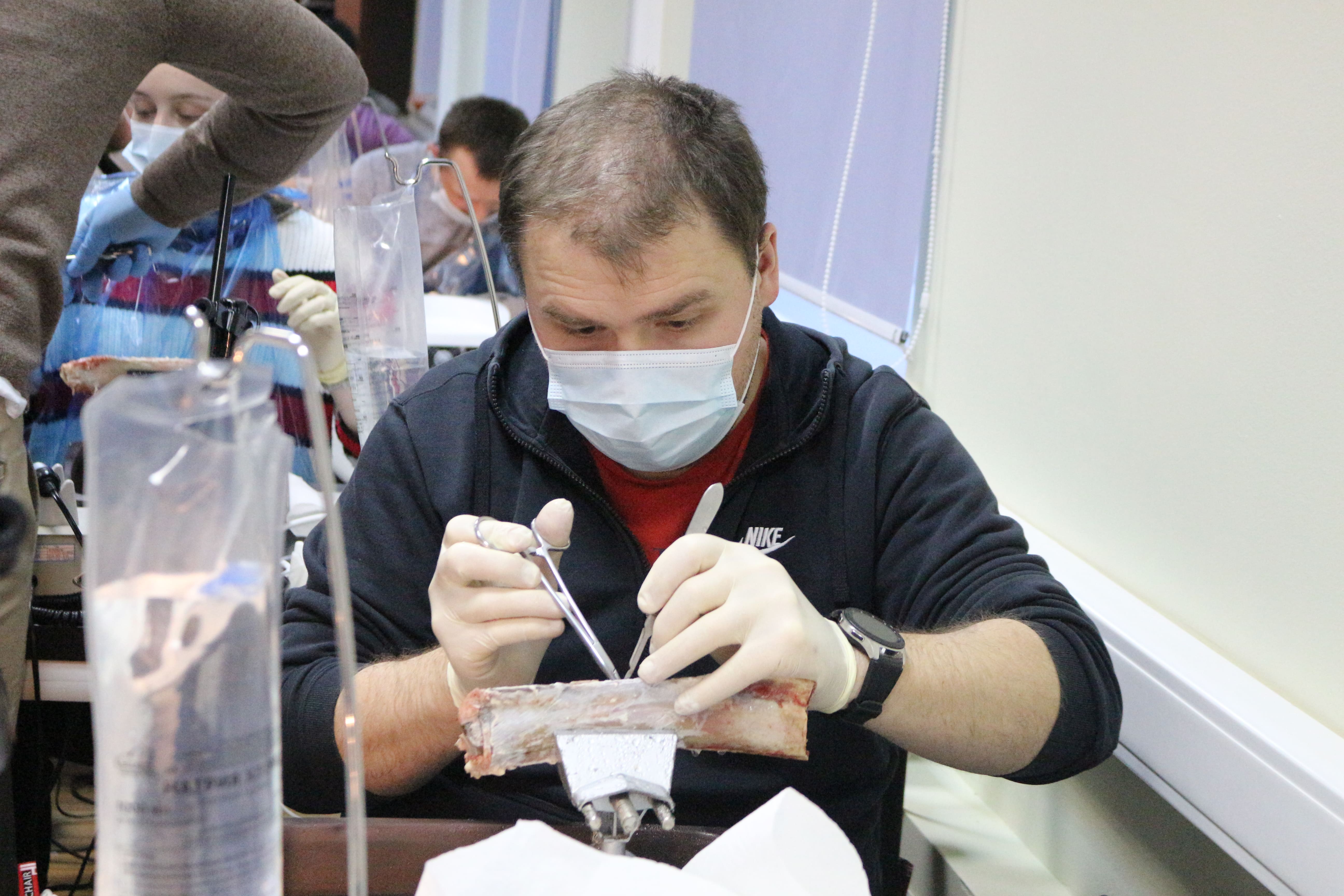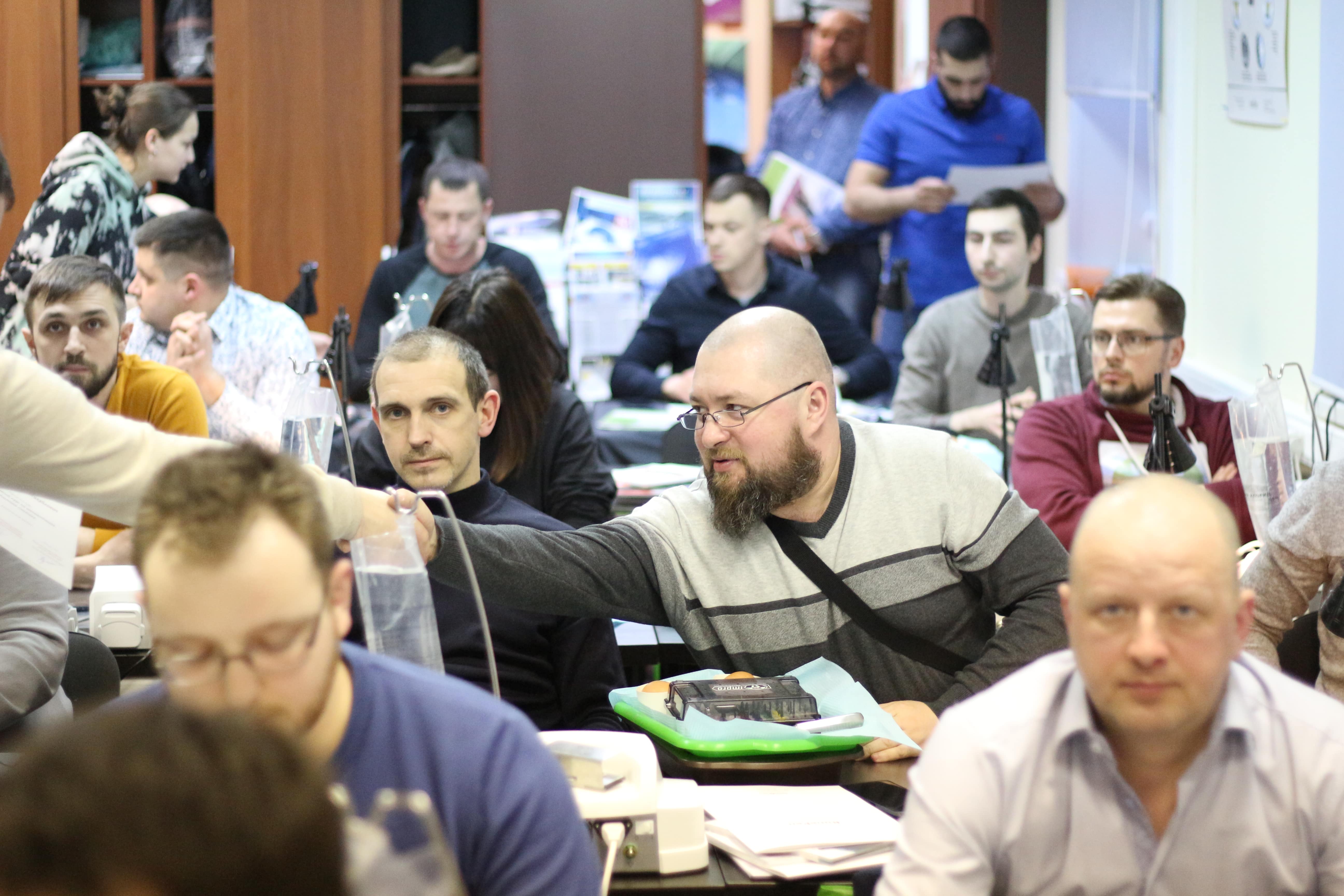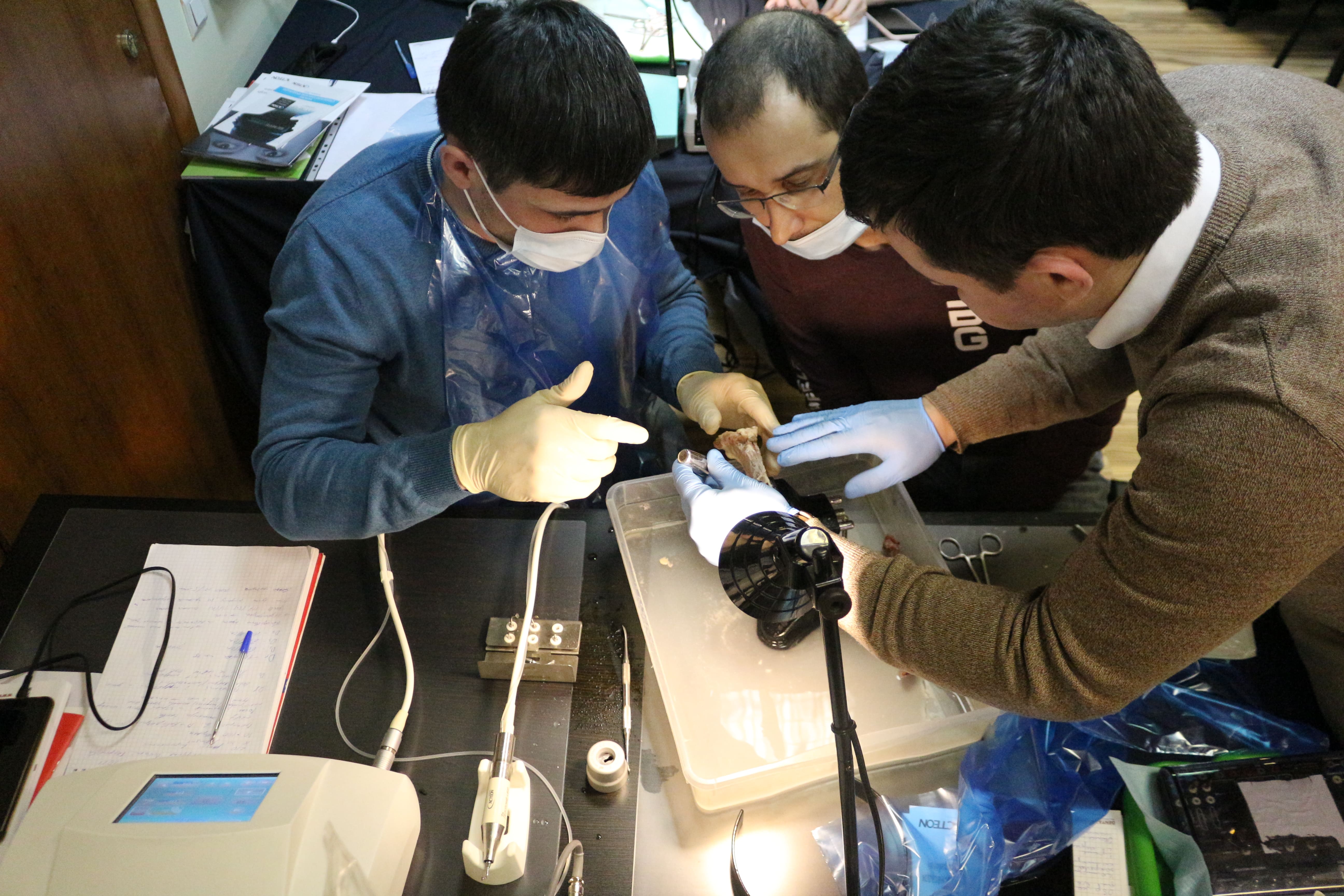 На практическом занятии доктора учились проводить открытый синус-лифтинг с помощью универсального набора Impro и набора Megagen на фантоме верхней челюсти и на говяжьем ребре, отрабатывали трансальвеолярный синус-лифтинг с помощью остеотомов и трепанов, проводили закрытый синус-лифтинг с помощью набора для гребневого синуса MICA на фантоме верхней челюсти, отрабатывали методики формирования латерального окна на куриных яйцах и на уникальных моделях гайморовой пазухи.