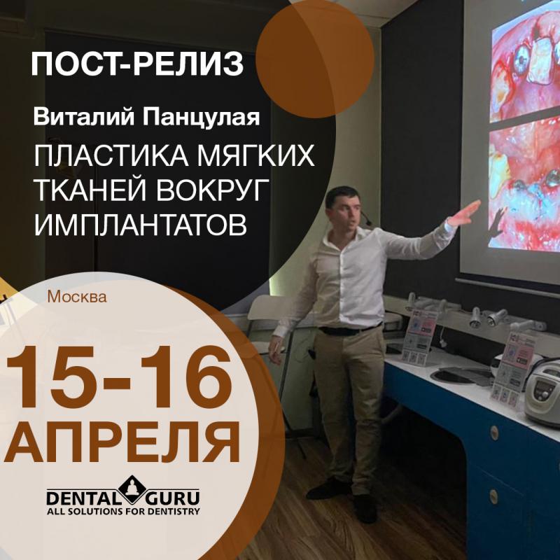 15 и 16 апреля в Международном Учебном Центре Дентал Гуру состоялся экспертный курс «Пластика мягких тканей вокруг имплантатов. Морфологический подход». Курс провел Виталий Георгиевич Панцулая - челюстно-лицевой хирург, имплантолог, специалист по костной пластике, стоматолог-ортопед, специалист по скуловой имплантации, эксперт MINEC, опиньон-лидер Impro и Megagen, CAD-CAM ортопед. Член EAO, ITI, ICOI.