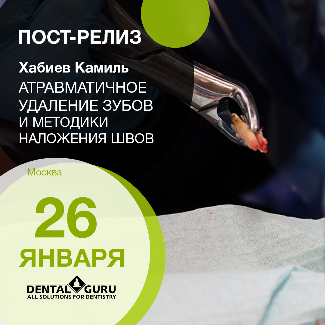 26 января в Международном Учебном Центре Дентал Гуру состоялся уникальный авторский курс Хабиева Камиля Наильевича «Атравматичное удаление зубов и методики наложения швов».