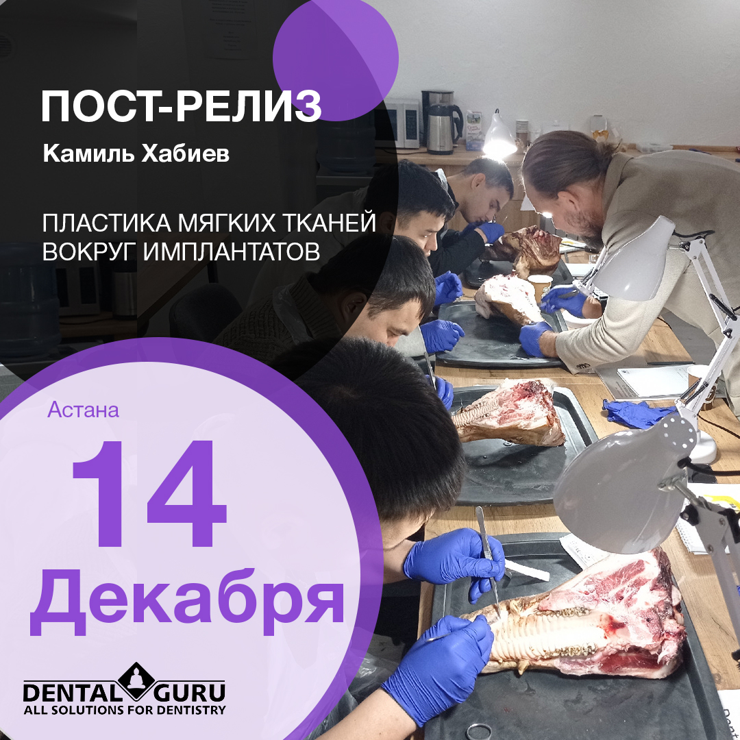 14 декабря в Астане состоялась практическая программа Камиля Наильевича Хабиева «Пластика мягких тканей вокруг имплантатов».