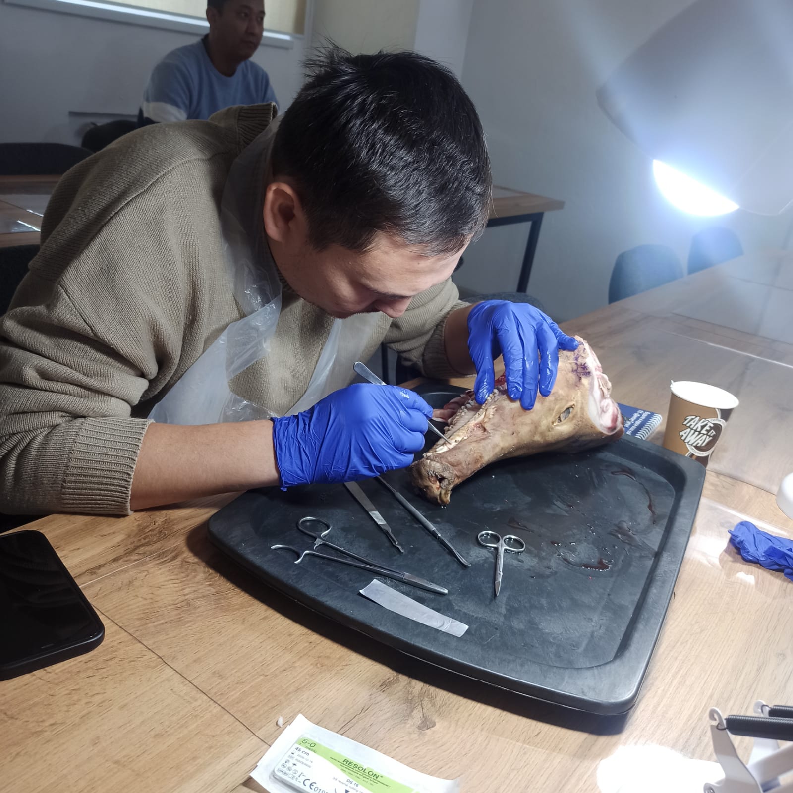 На практической части курса доктора на биологических моделях научились получать десневой трансплантат, СТТ с неба и бугра, штрипсы и ротационный лоскут с неба. Учились выполнять вестибулопластику по Казанджану и по Кларку, изучили на практике методику Палаччи и технику апикально-смещенного лоскута.