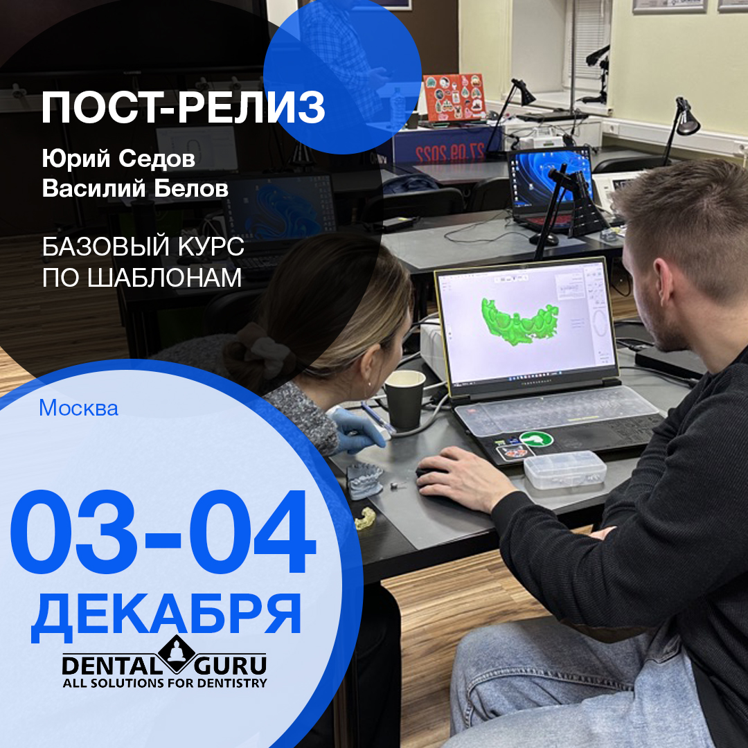 3 и 4 декабря в Учебном Центре Дентал Гуру Юрий Седов и Василий Белов провели двухдневный базовый курс по шаблонам. Курс посетили хирурги, ортопеды и зубные техники, которые хотят улучшить свои знания в навигационной хирургии.