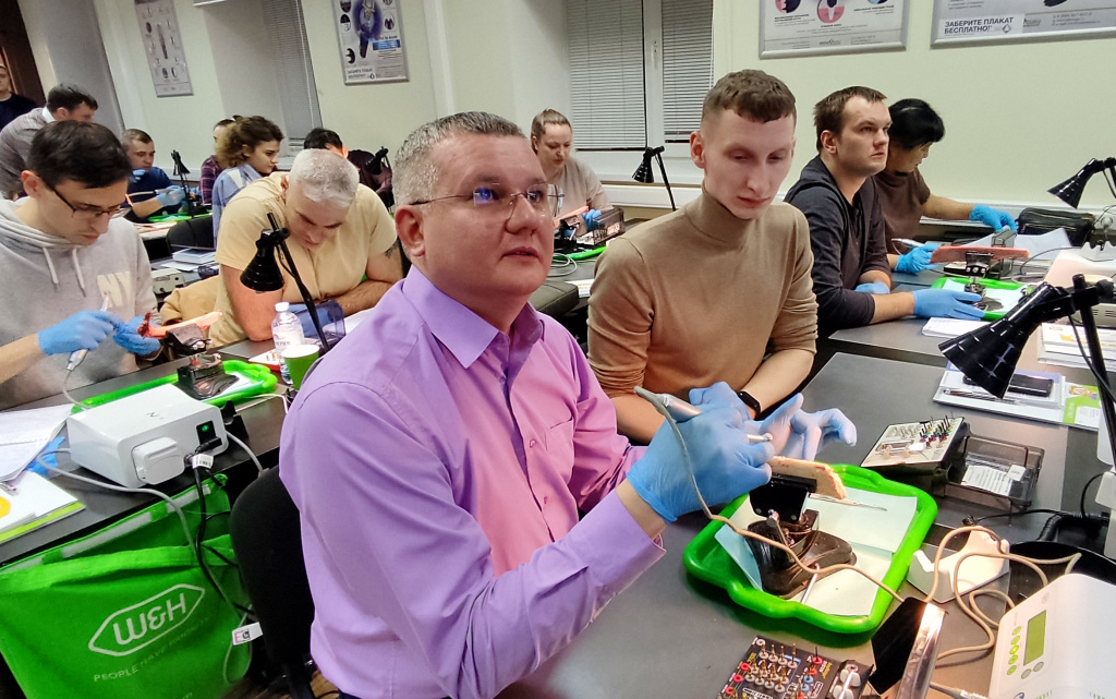 Доктора приехали на обучение с разных городов России и стран СНГ, чтобы перенять опыт ведущих специалистов в РФ в области имплантации и ортопедии. Курс ориентирован не только на начинающих докторов, но и на уже практикующих стоматологов, желающих восполнить свои знания и узнать новые, современные фишки в имплантологическом лечении.