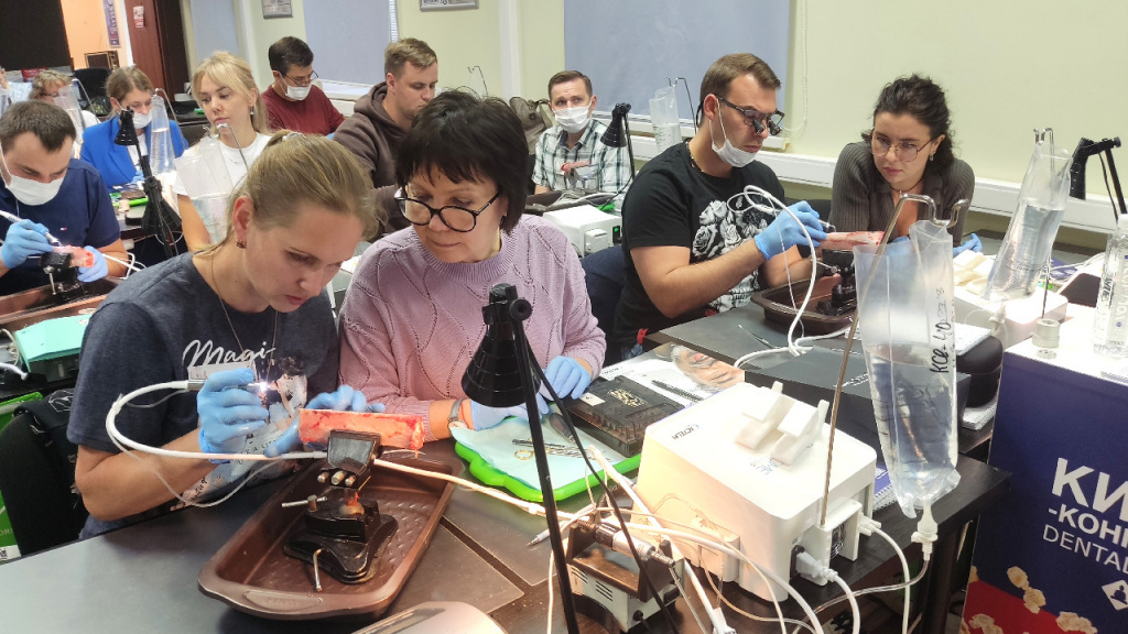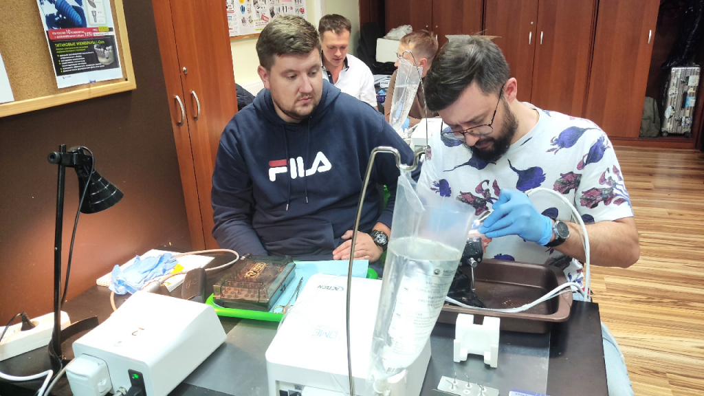 Курс включает в себя не только лекционную часть, но и практические занятия, на котором участники отработали полученные знания под руководством ведущего специалиста по работе с мягкими тканями. Доктора имели возможность изучить основные методы и многие приемы, используемые при имплантации, такие как консервация лунки методикой Bio-Col-Protect с модификациями, методика выдвижения вестибялурной стенки, транспозиция костно-надкостничных лоскутов, реверсивный костный блок, вертикальная пьезохирургическая сендвич-пластика, необходимый инструментарий, хирургические приемы и техники для оптимального результата.
