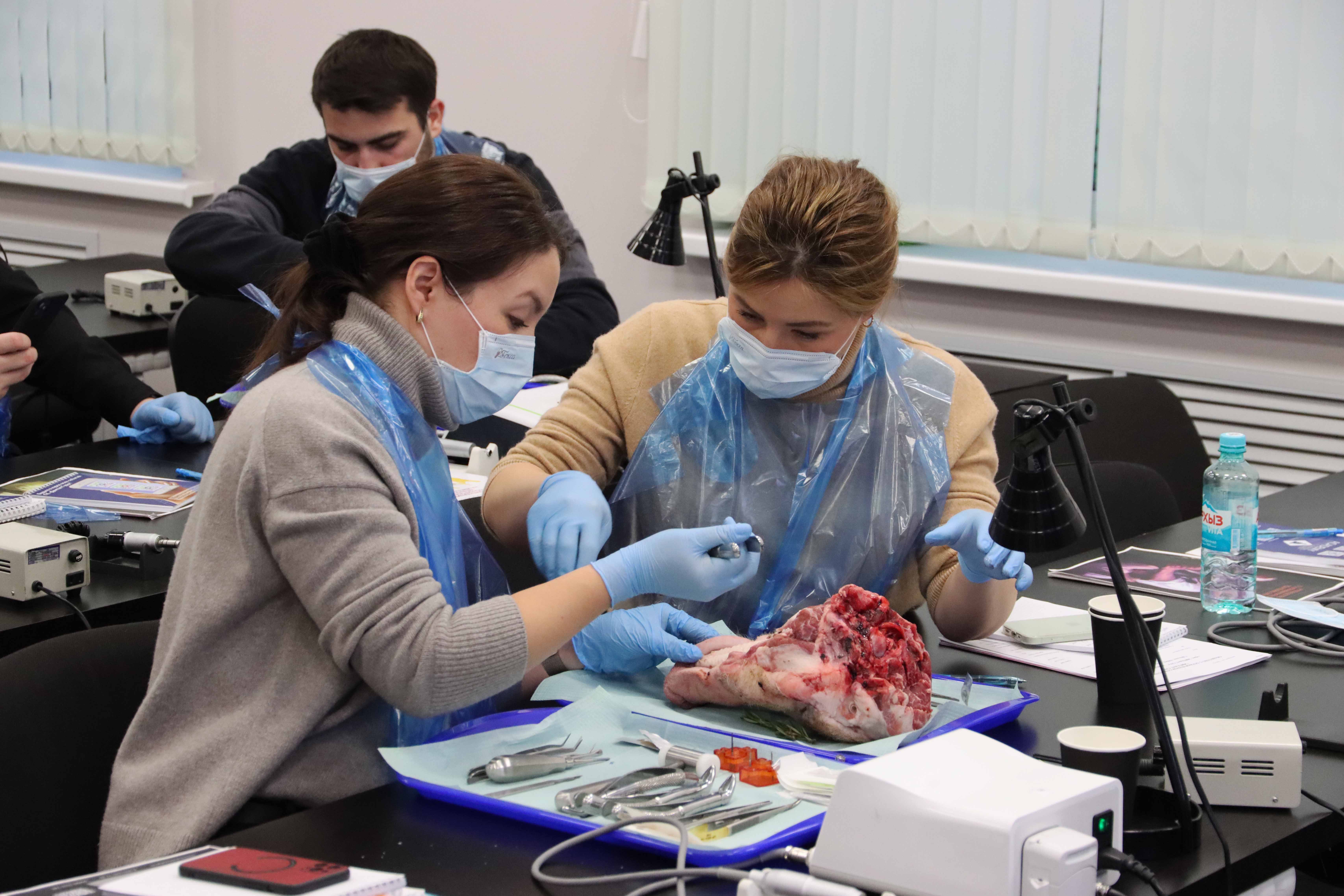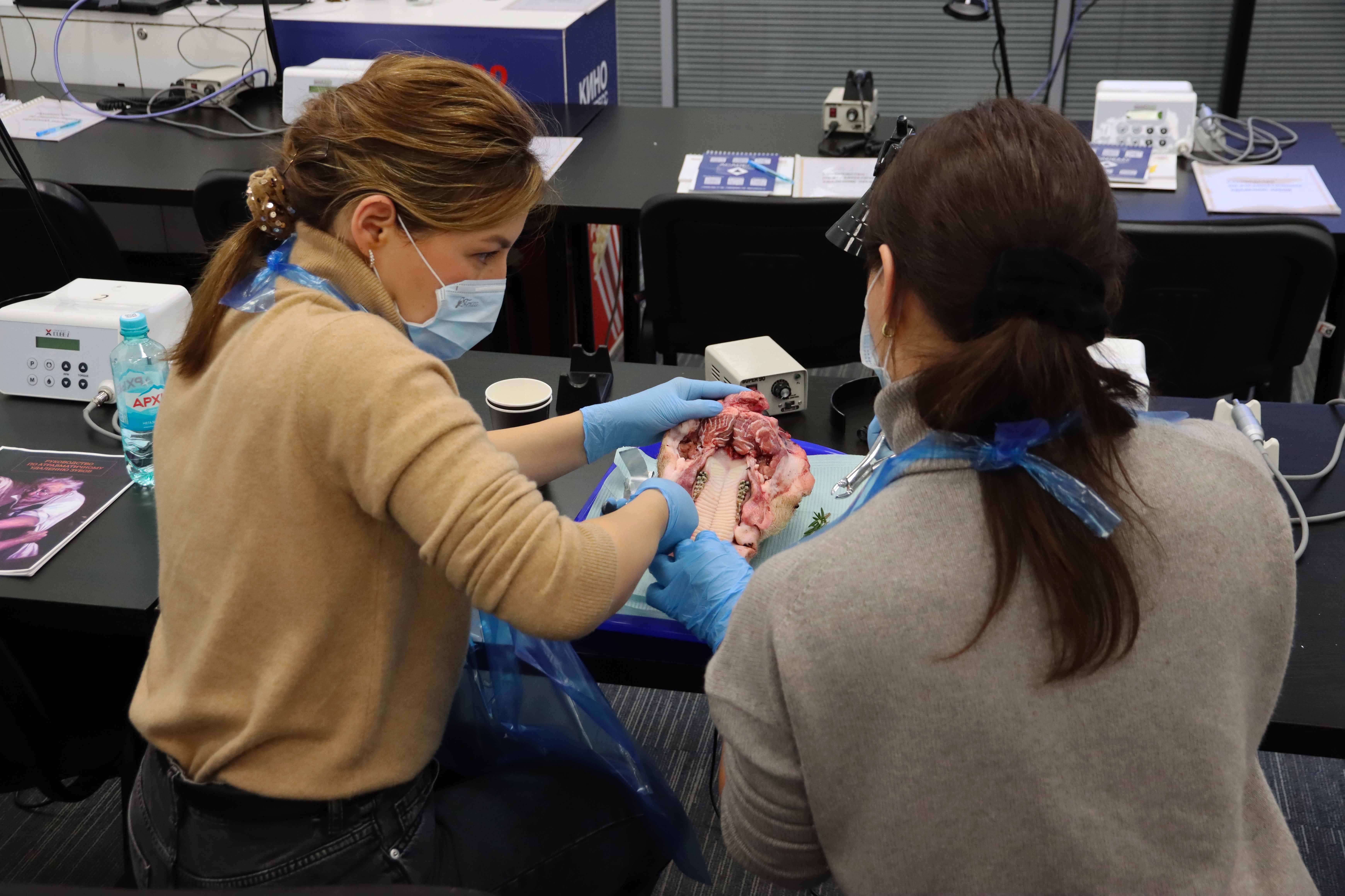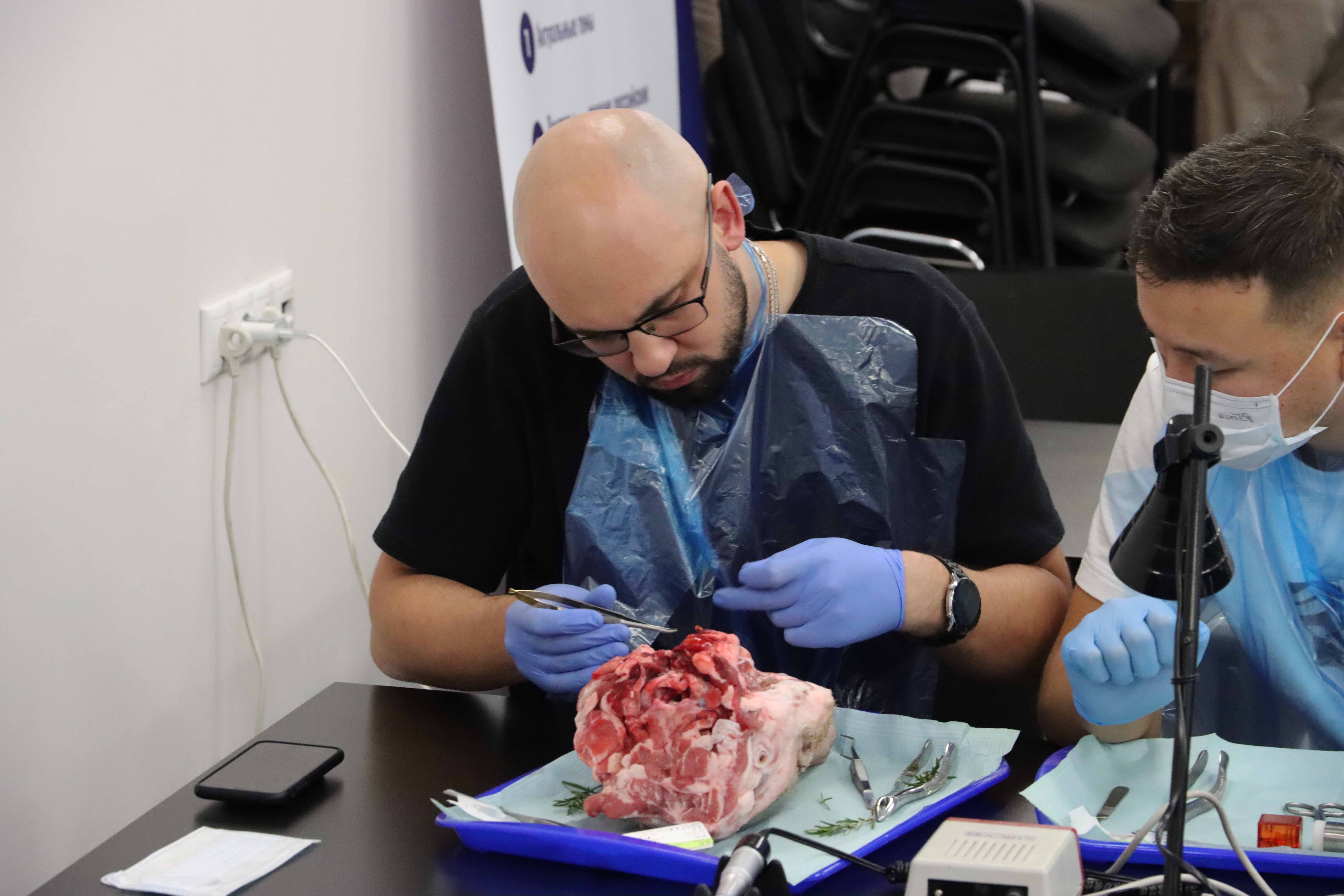 Участники погрузились в мир современных стоматологических техник, узнав все детали эффективного и безболезненного удаления зубов. Изучали анатомические особенности и этапы удаления зубов разных групп, включая сложные случаи, такие как резорцин-формалиновые зубы и третьи моляры. А отрабатывали навыки атравматичного удаления и наложения швов на свиных челюстях позволили на практическом занятии.