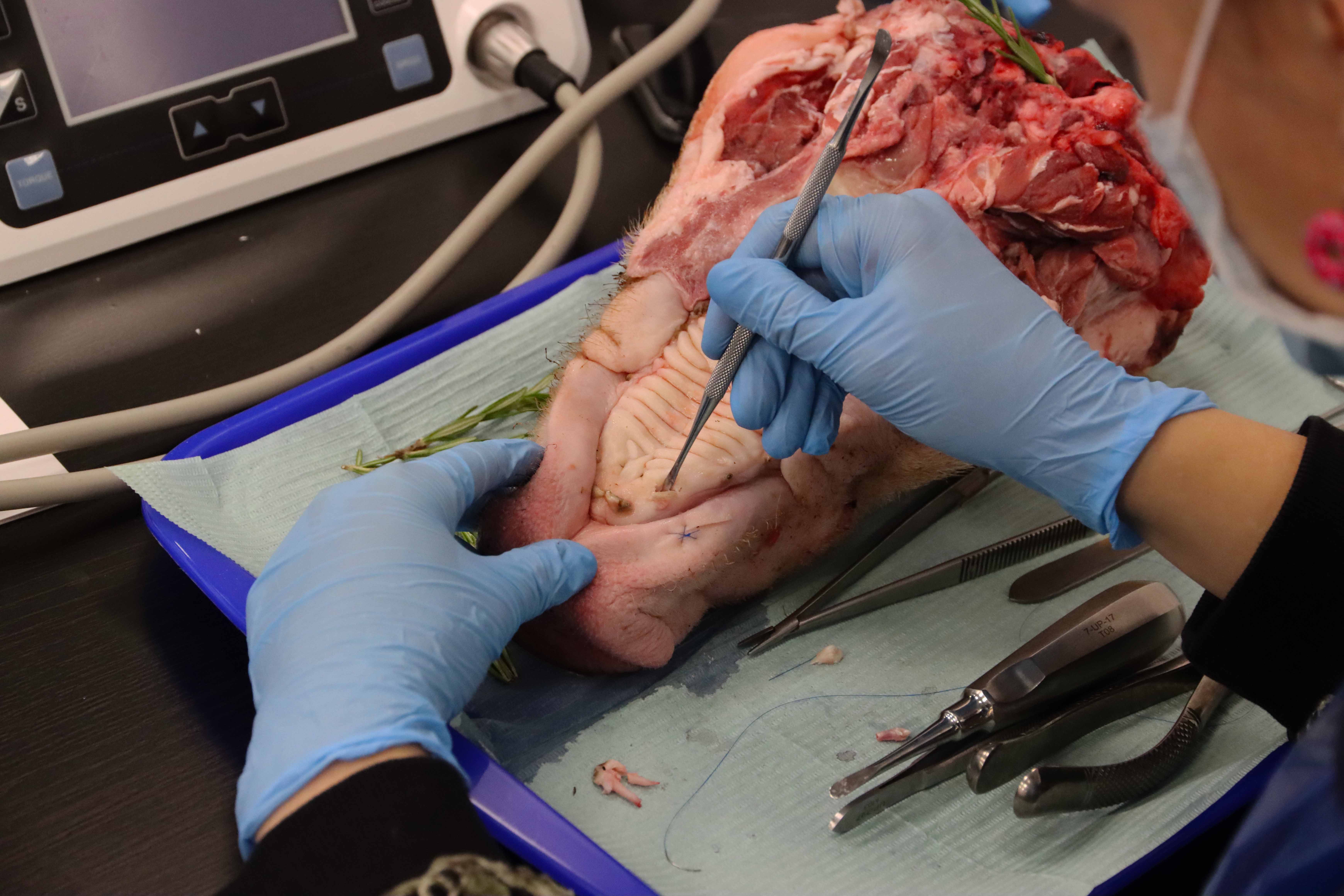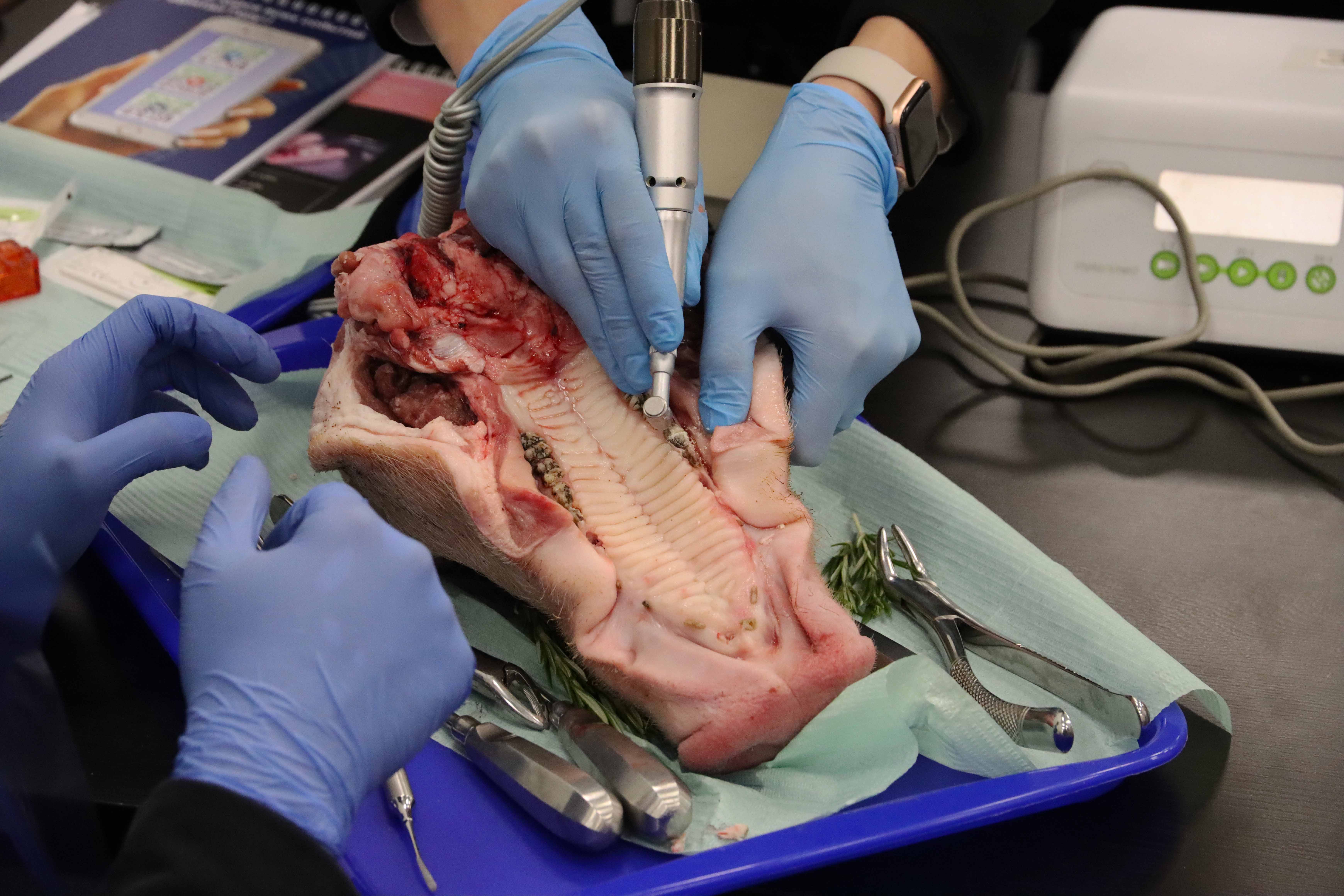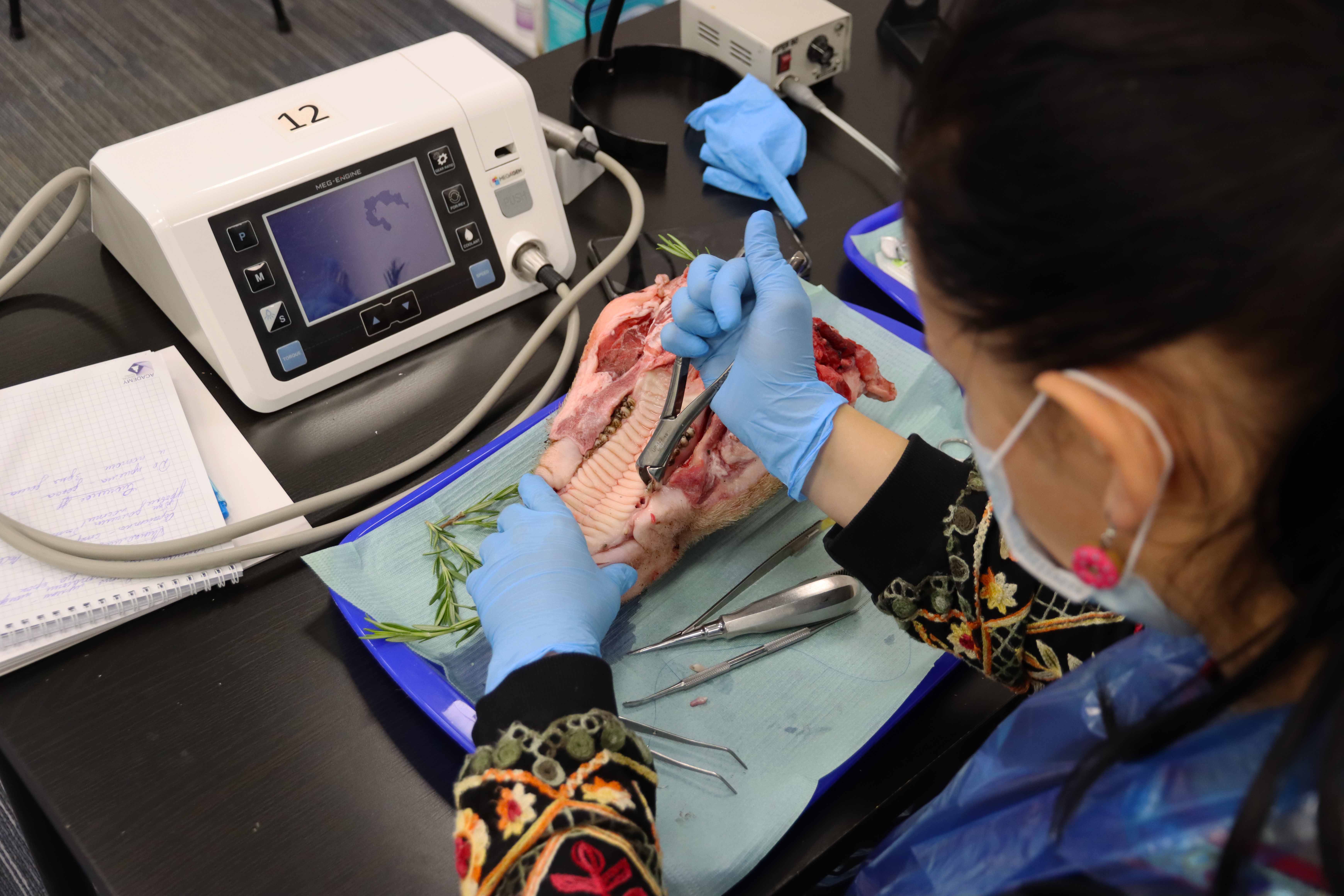 Участники погрузились в мир современных стоматологических техник, узнав все детали эффективного и безболезненного удаления зубов. Изучали анатомические особенности и этапы удаления зубов разных групп, включая сложные случаи, такие как резорцин-формалиновые зубы и третьи моляры. А отрабатывали навыки атравматичного удаления и наложения швов на свиных челюстях позволили на практическом занятии.
