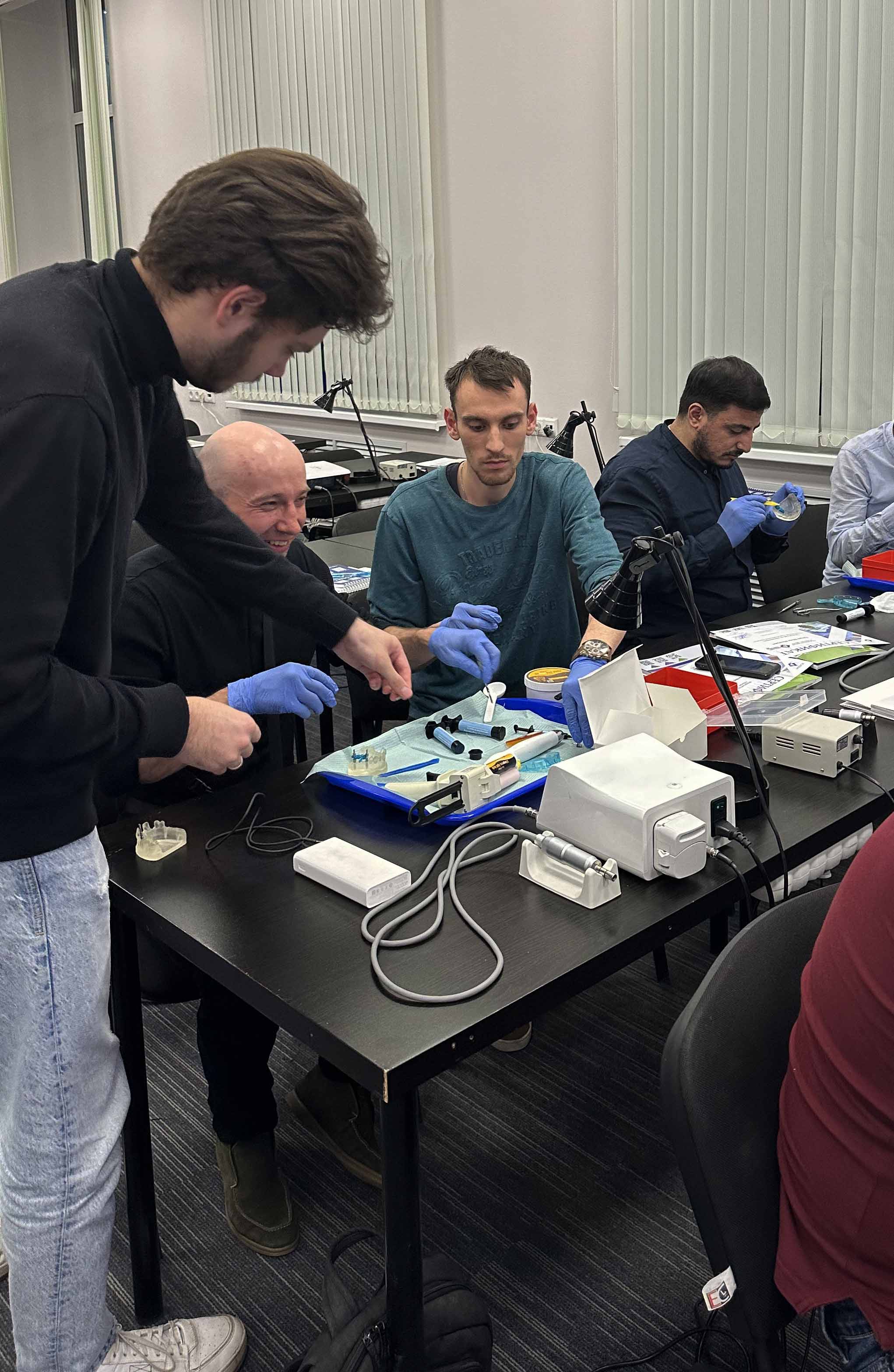 В первый день проводили лекции по критериям выбора имплантационной системы, показаниям и противопоказаниям, диагностике и планировании лечения (стоматологического в целом и хирургического в частности), подготовку к операции, эргономику, хирургический протокол и постоперационную реабилитацию, а также разбирали клинические случаи и практиковались в установке имплантата на биофантоме.